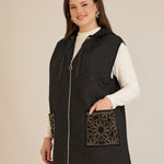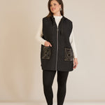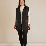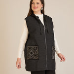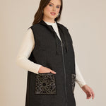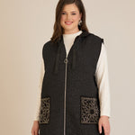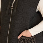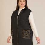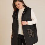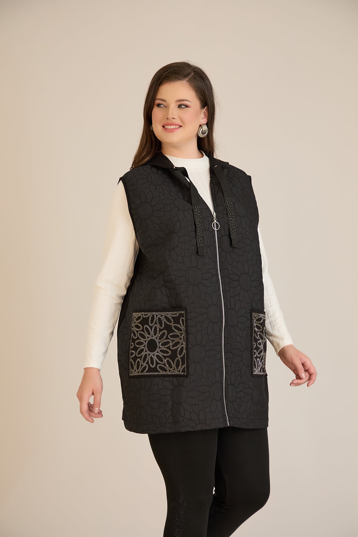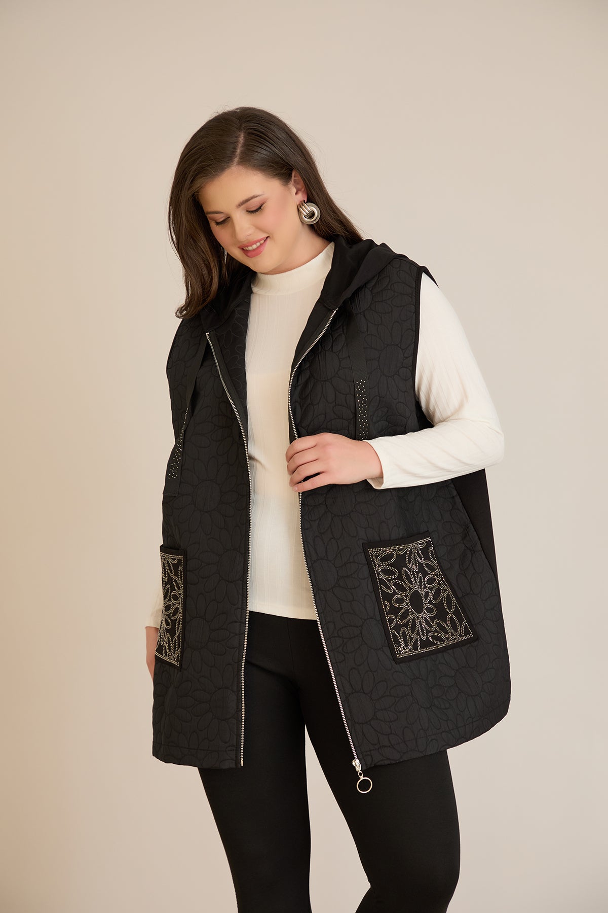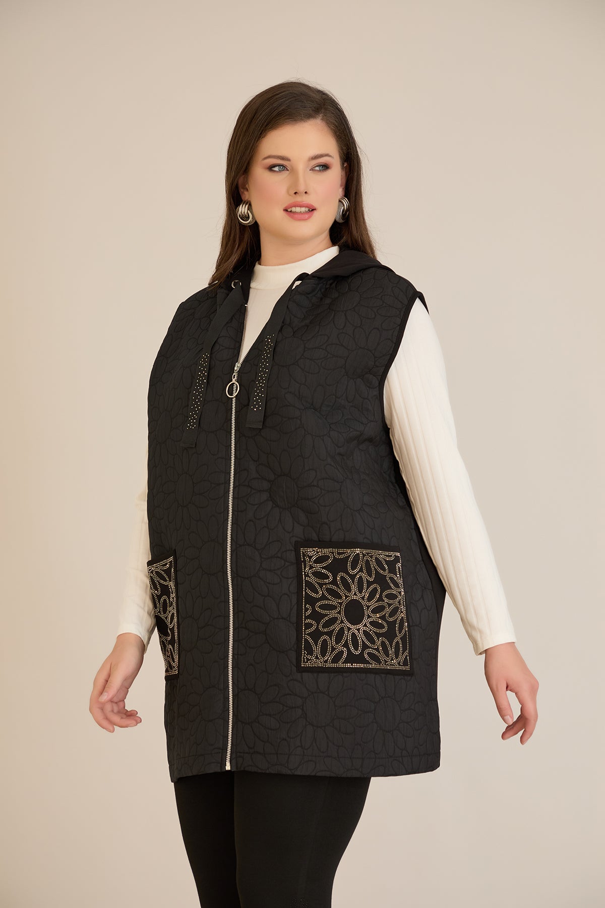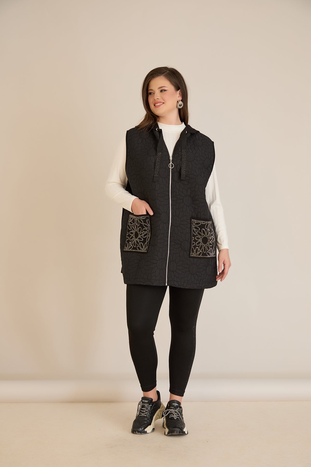 Γιλέκο με κουκούλα και στρας από ανάγλυφο ύφασμα- Μαύρο