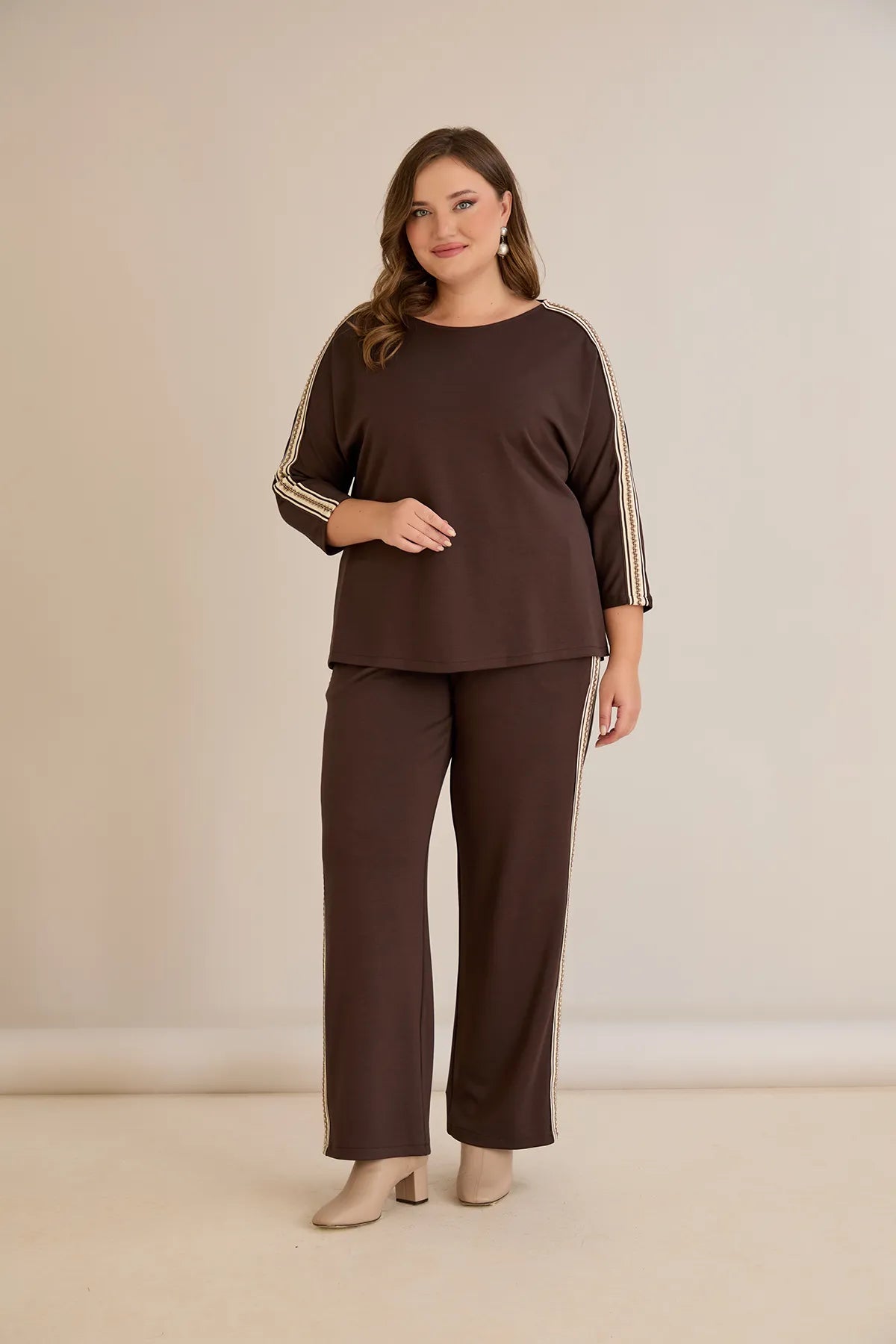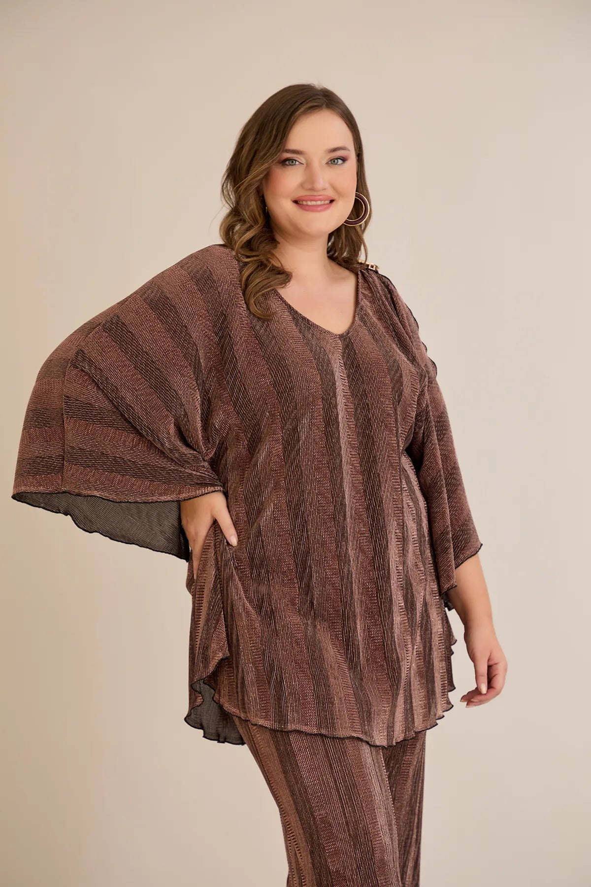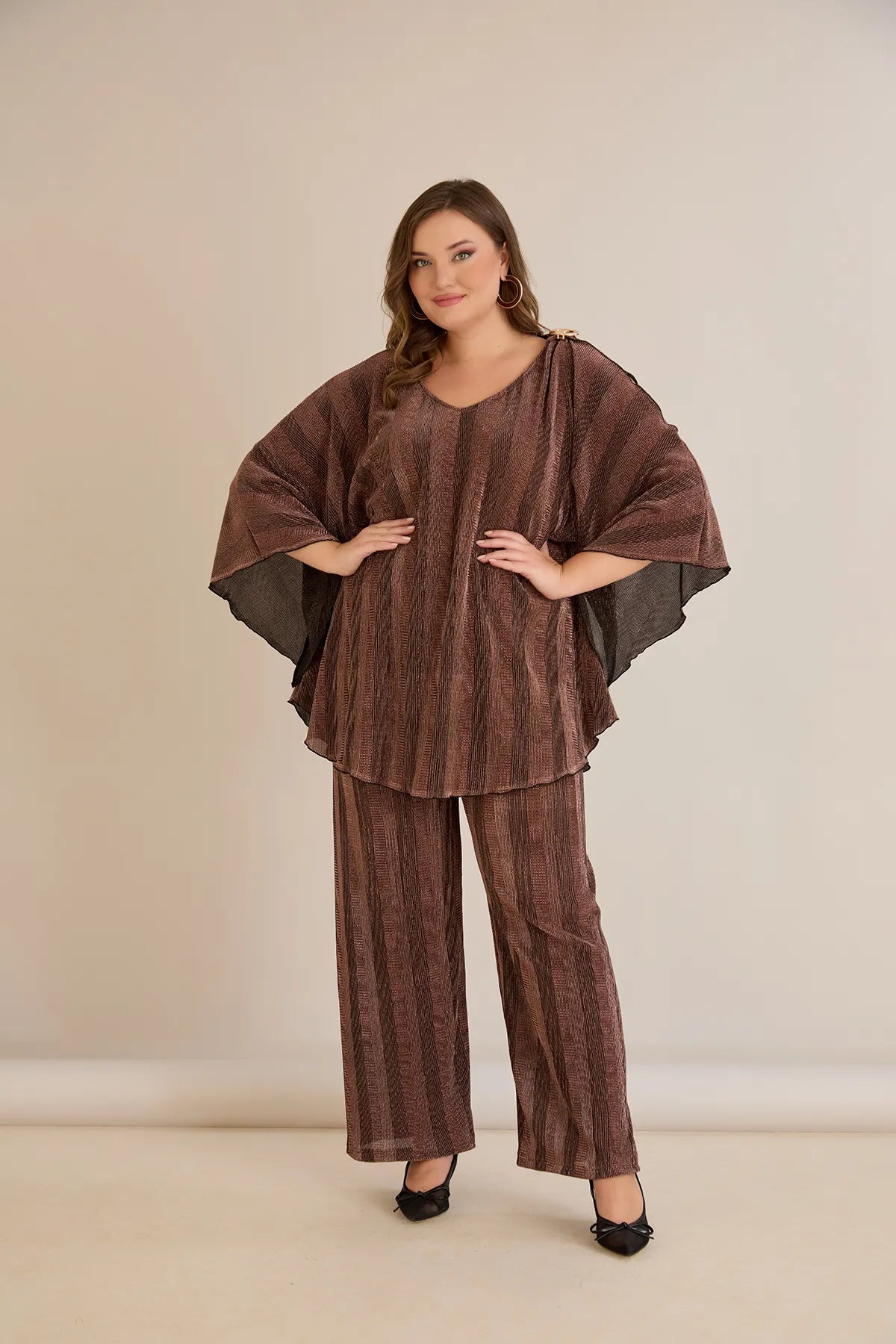 Lurex ριγέ σετ με κομψή καρφίτσα- Καφέ
