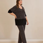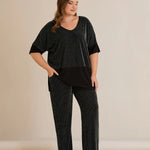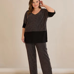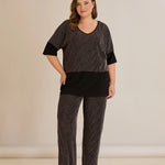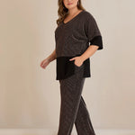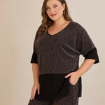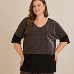 • Κομψό σετ από ελαστικό ριπ lurex ύφασμα, που προσφέρει στυλ και άνεση