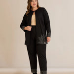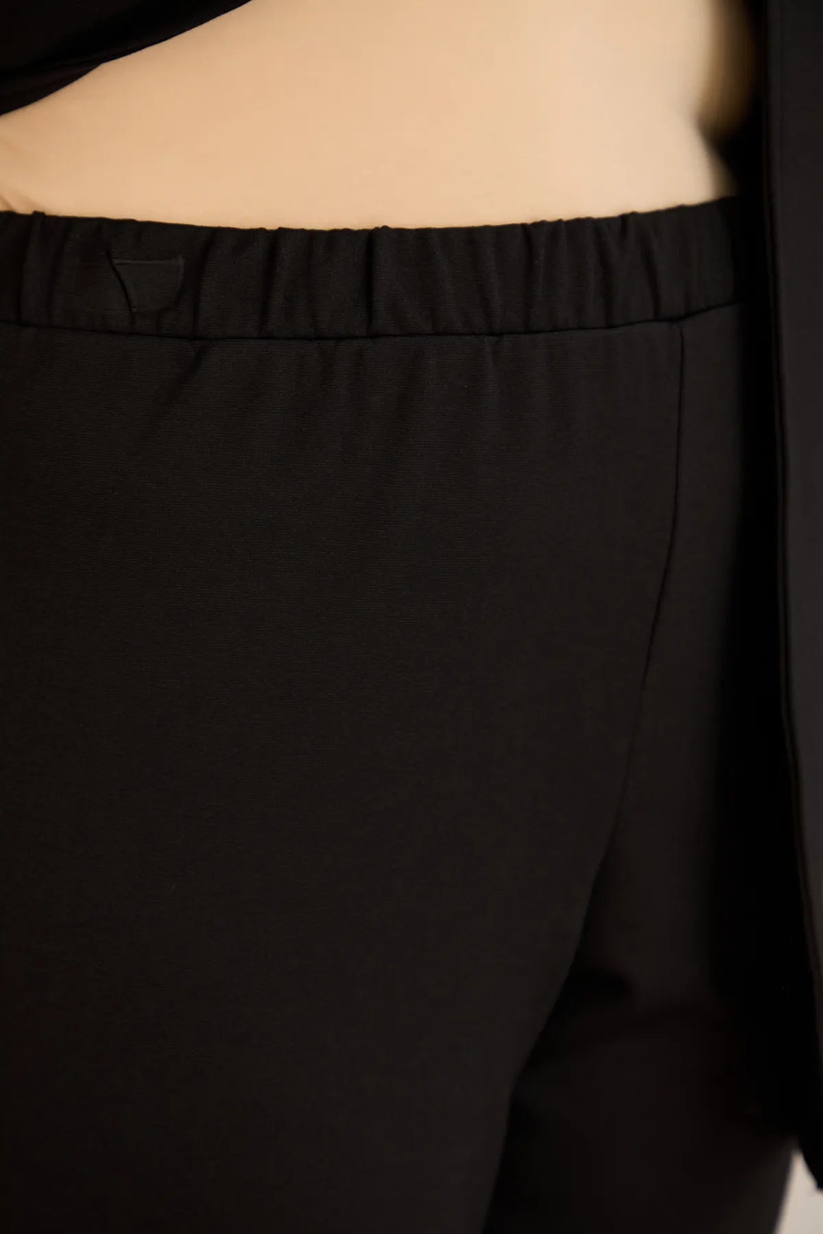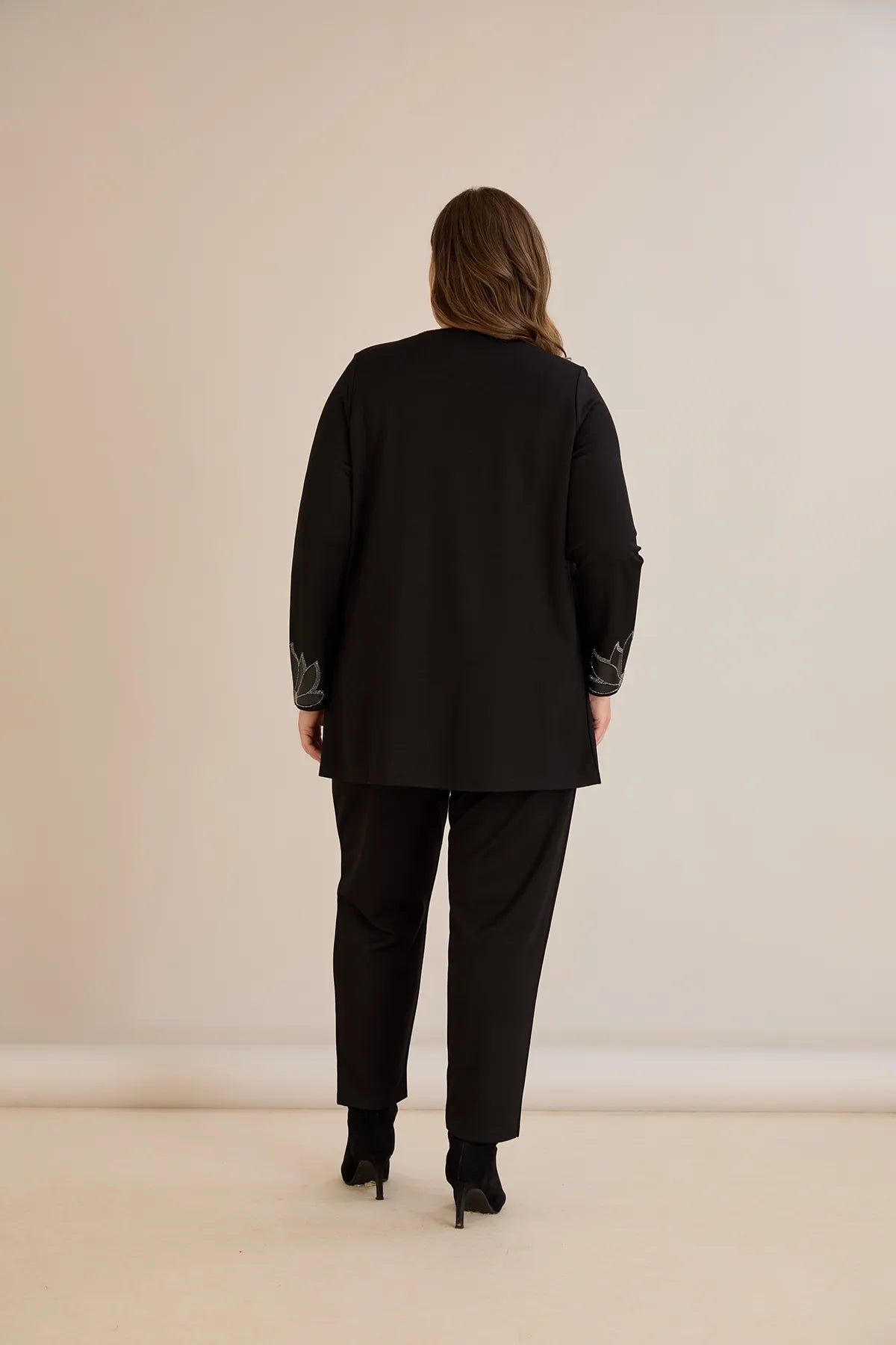 Παντελόνι με δερμάτινες floral λεπτομέρειες σε μαύρο χρώμα σε μεγάλα μεγέθη