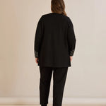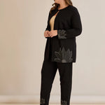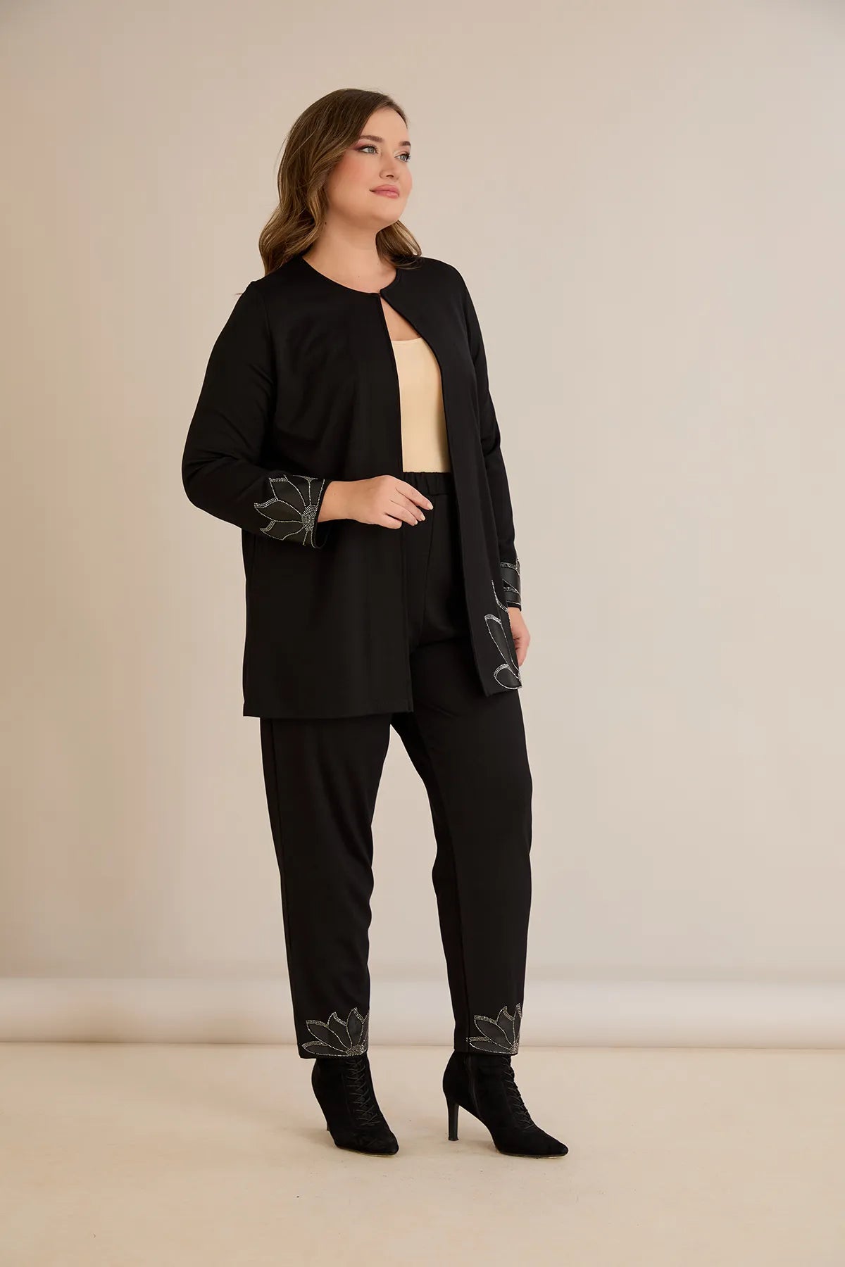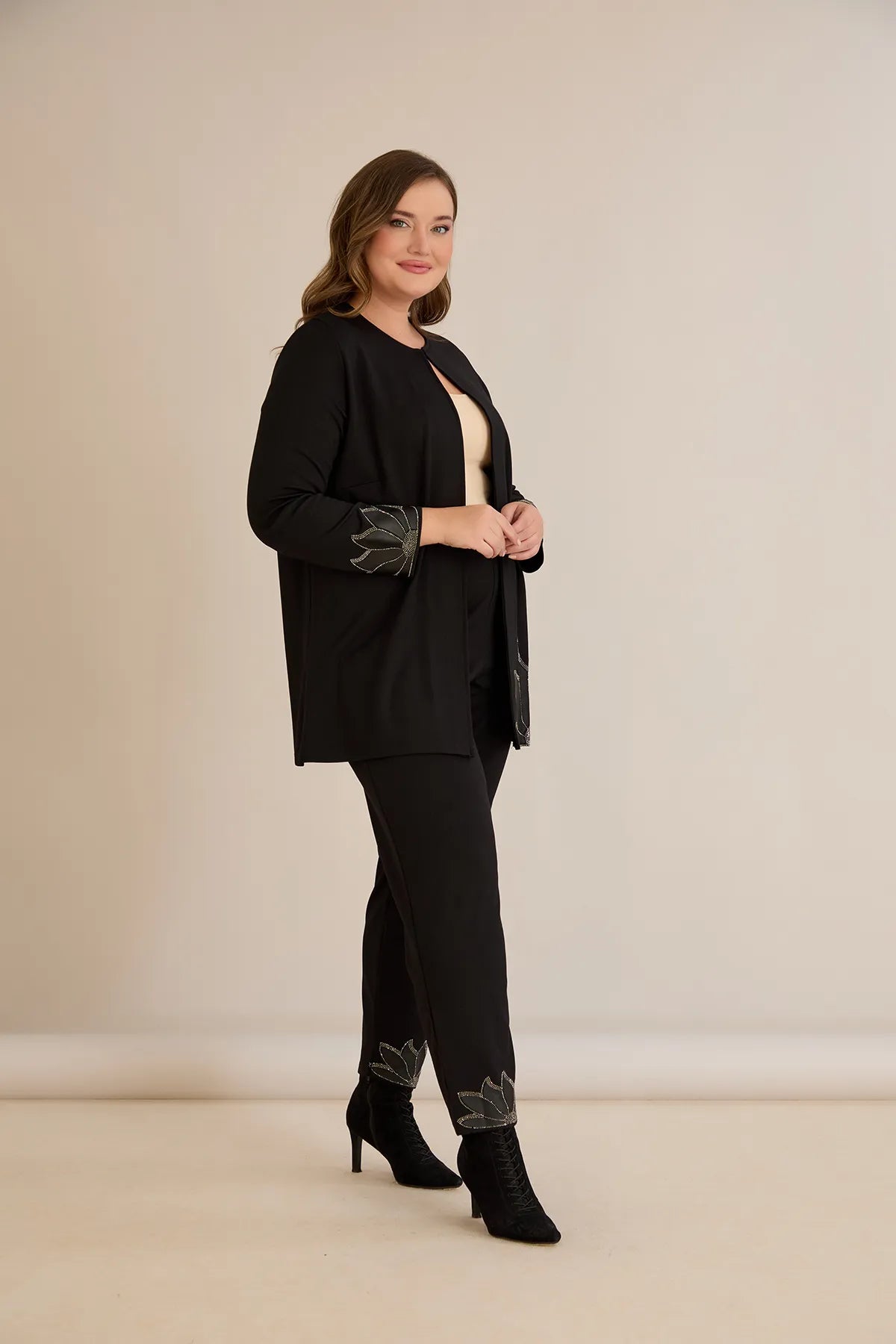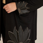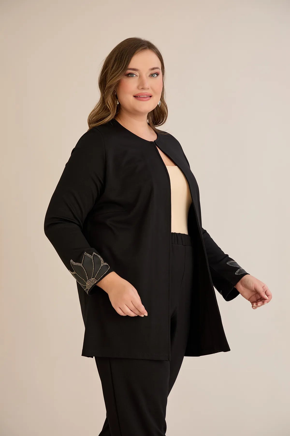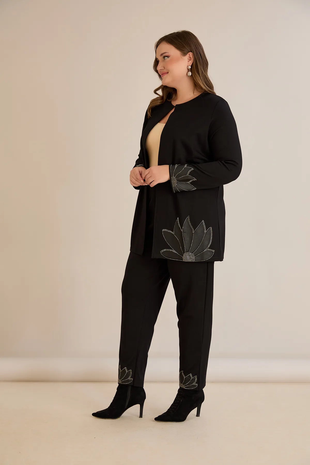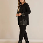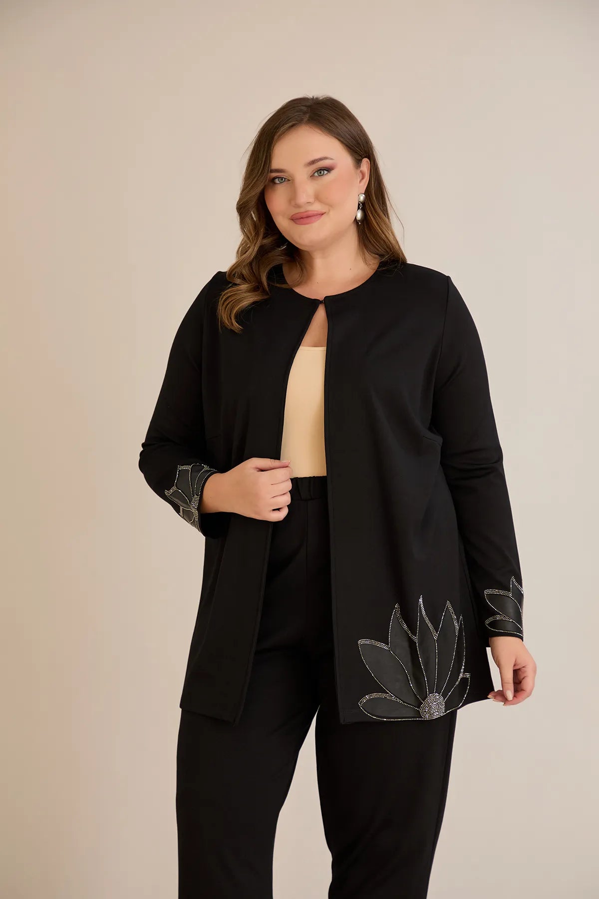 Ζακέτα με φλοράλ δερμάτινες λεπτομέρειες σε μαύρο χρώμα σε μεγάλα μεγέθη