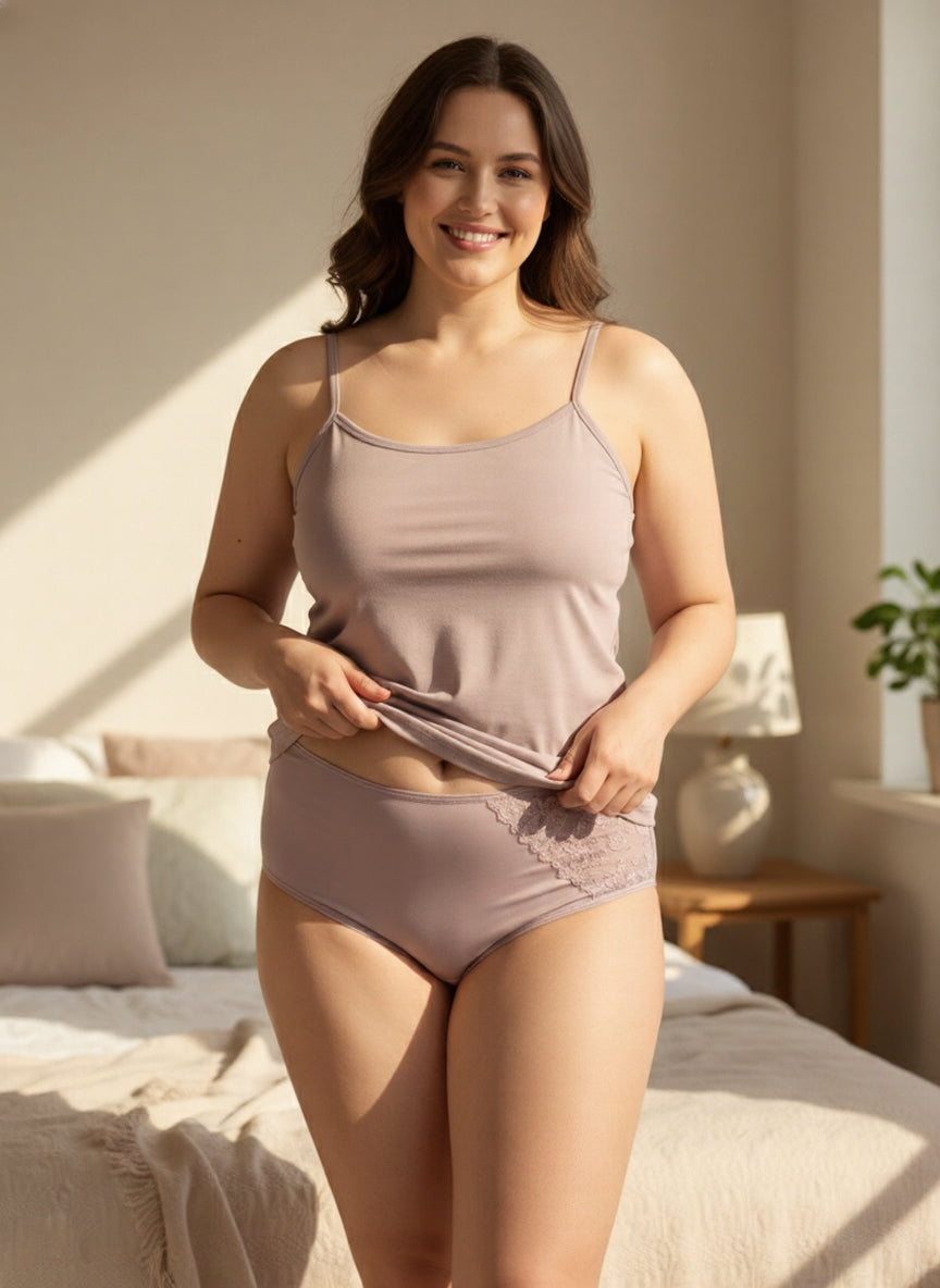 Βαμβακερό τιραντάκι με λεπτές τιράντες σε χρώμα Πούδρα σε μεγάλα μεγέθη