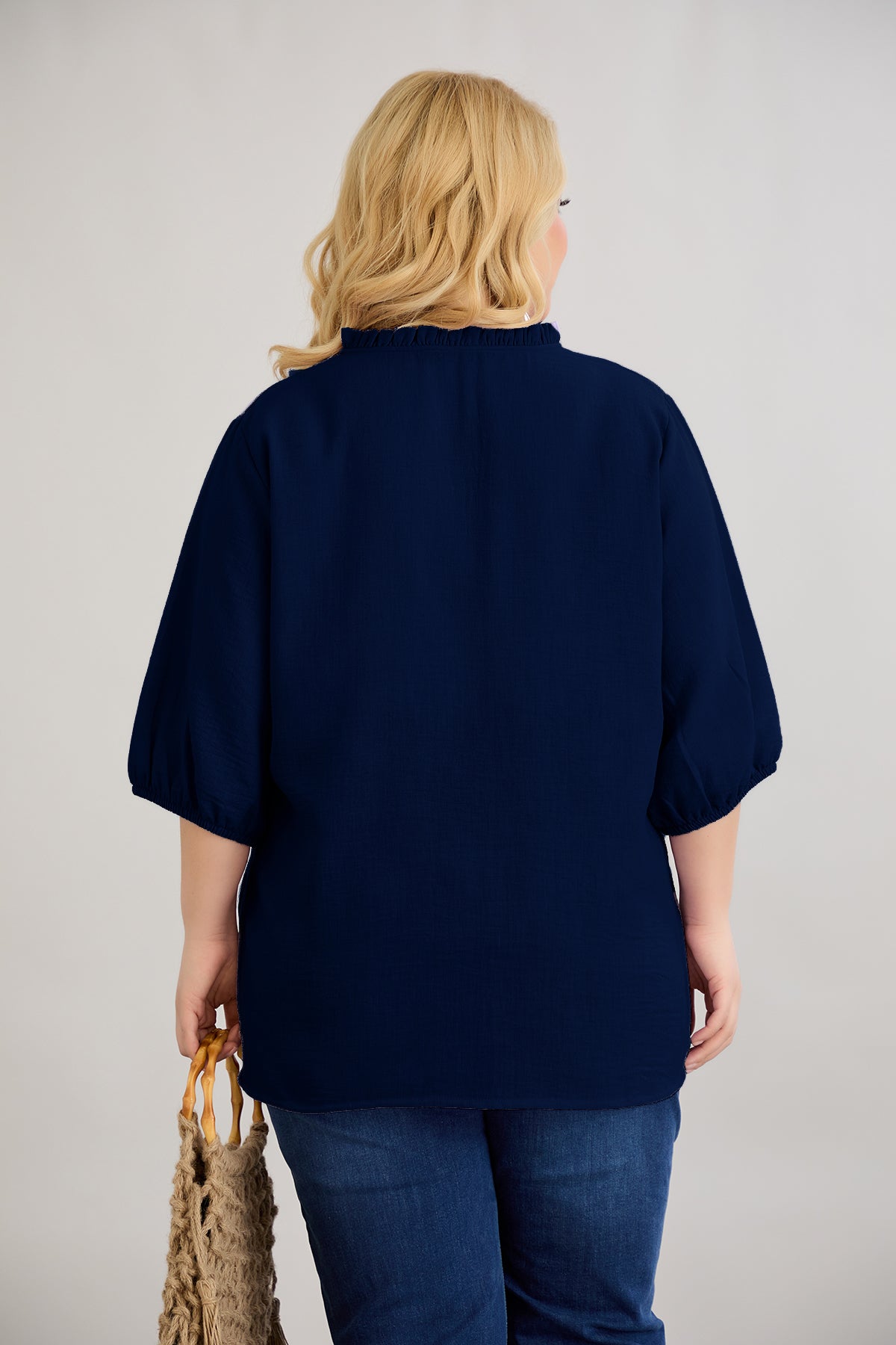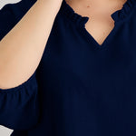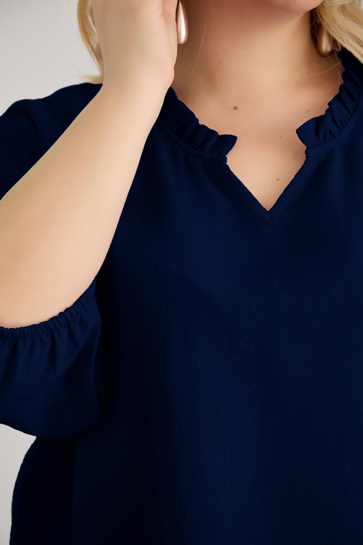 Μπλούζα με V λαιμόκοψη και βολάν - Σκούρο μπλε