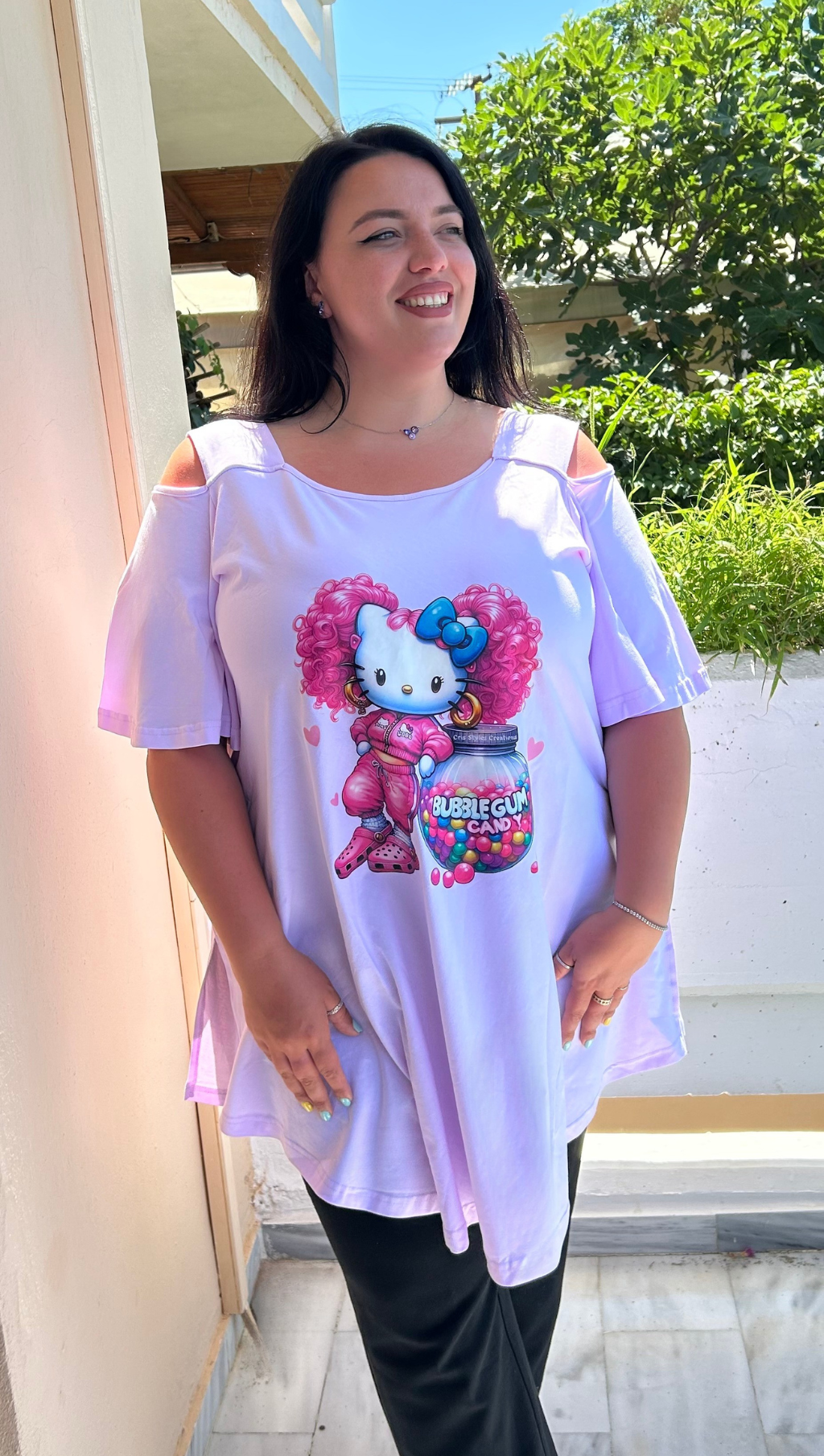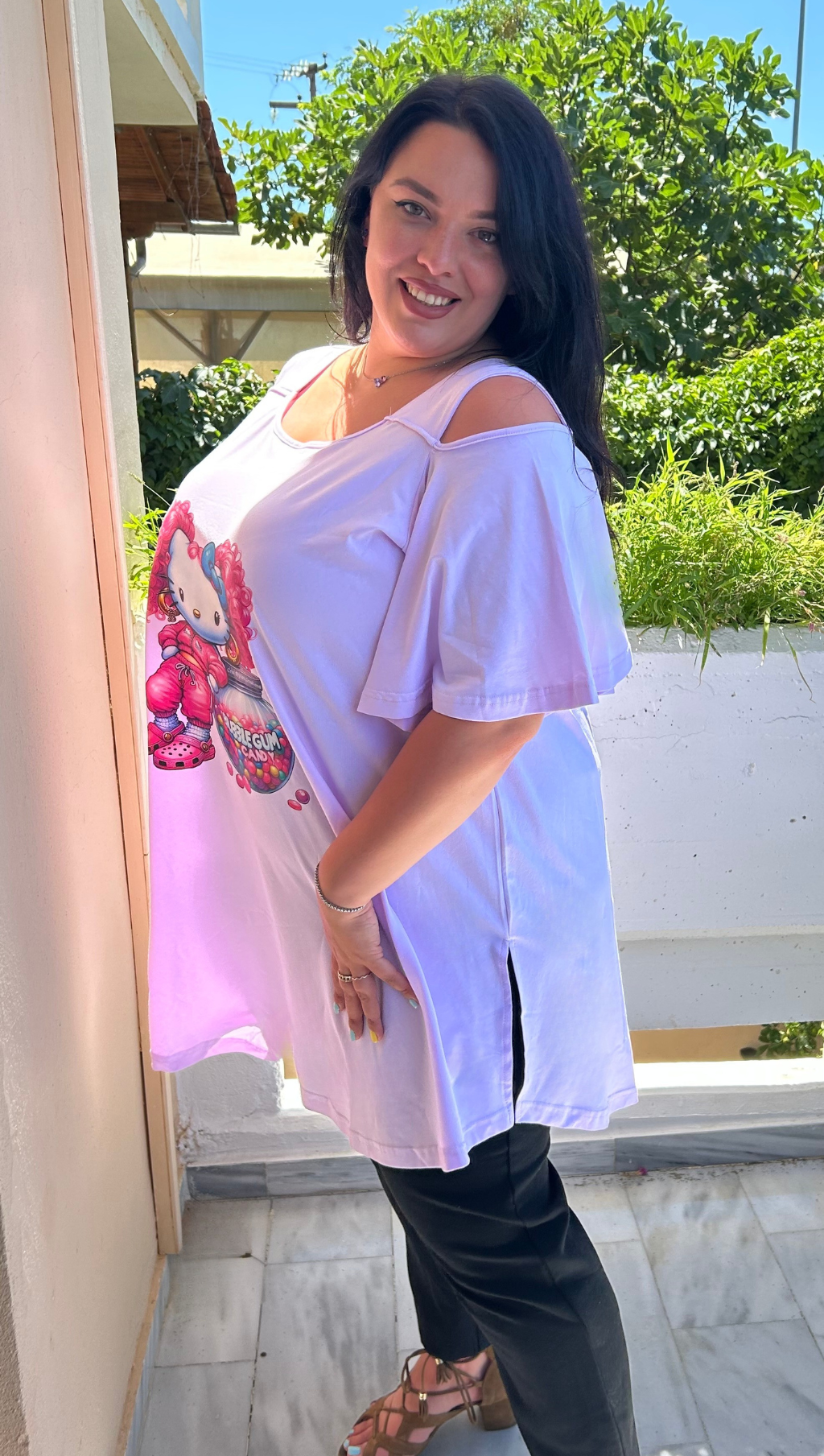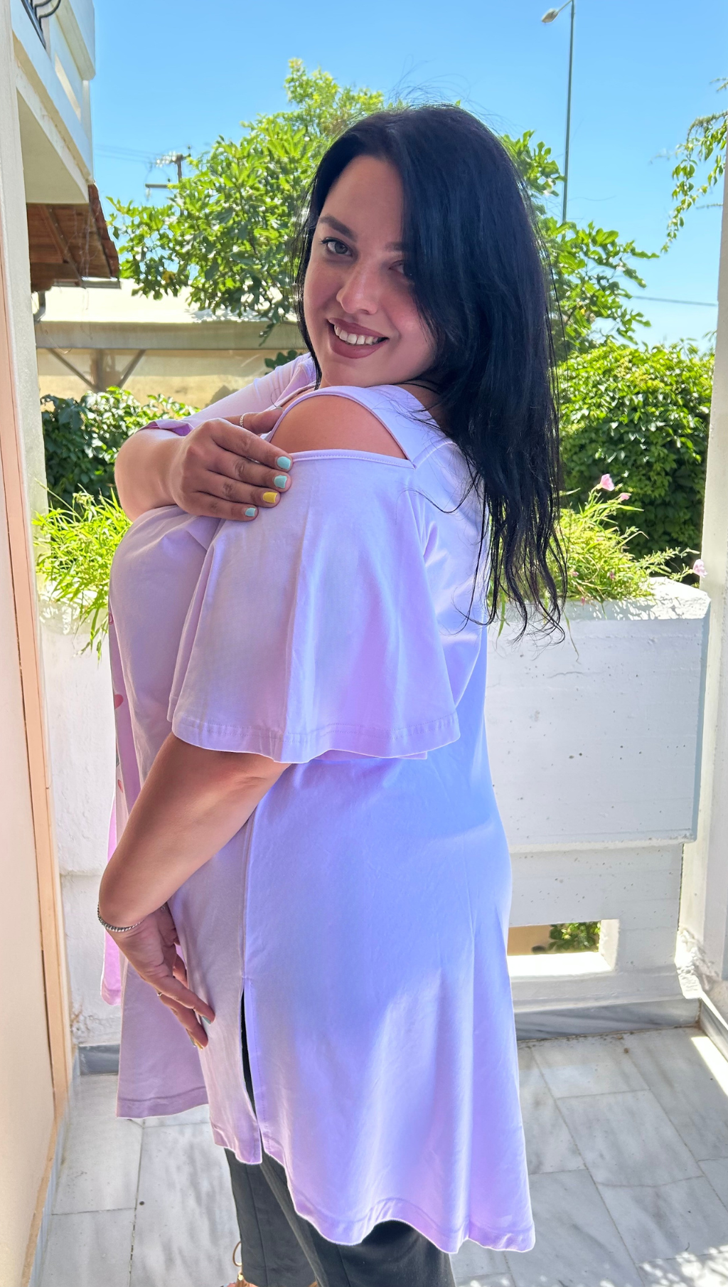Καλοκαιρινή βαμβακερή τουνίκ με στάμπα – Λιλά