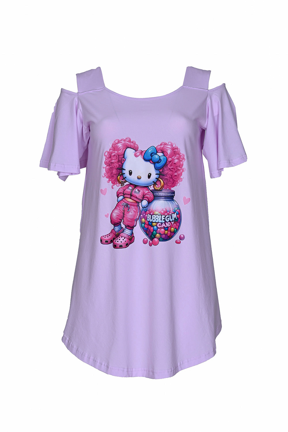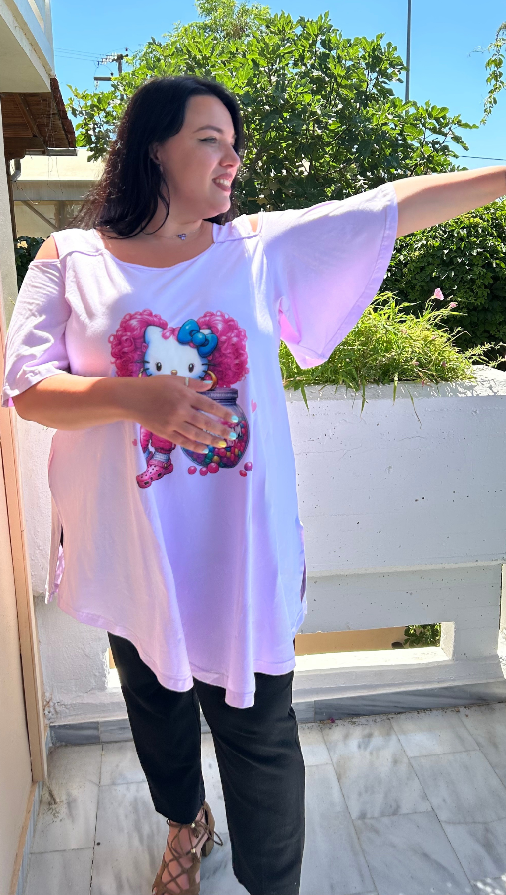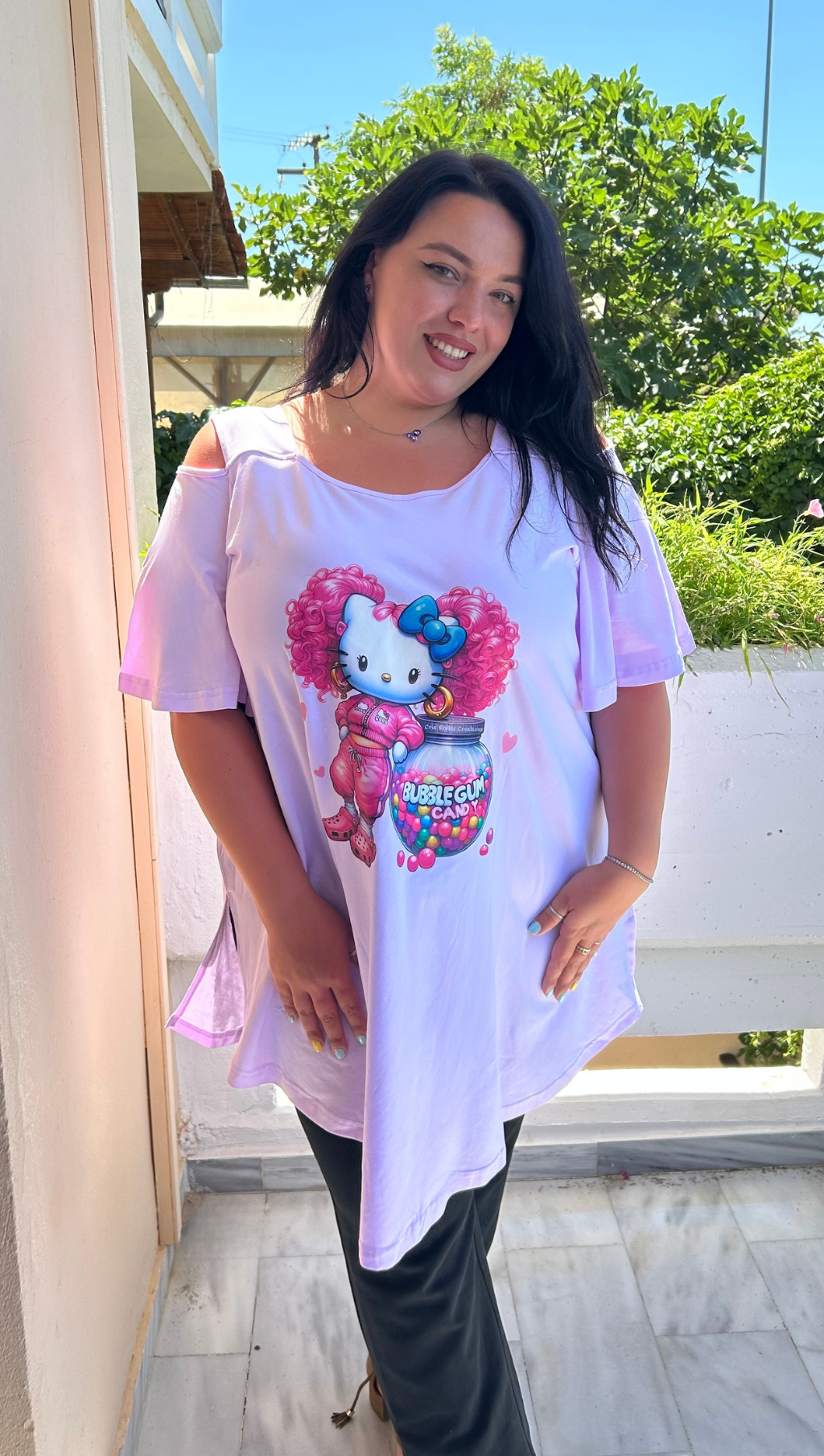 Καλοκαιρινή βαμβακερή τουνίκ με στάμπα – Λιλά