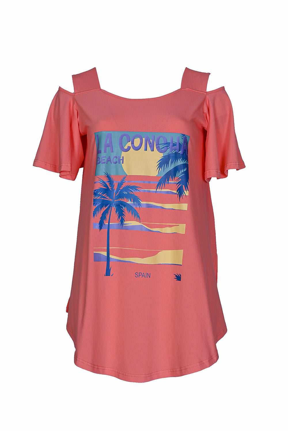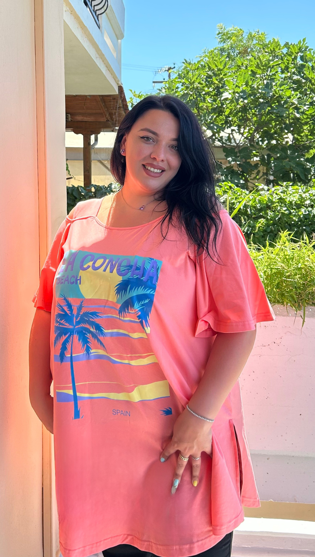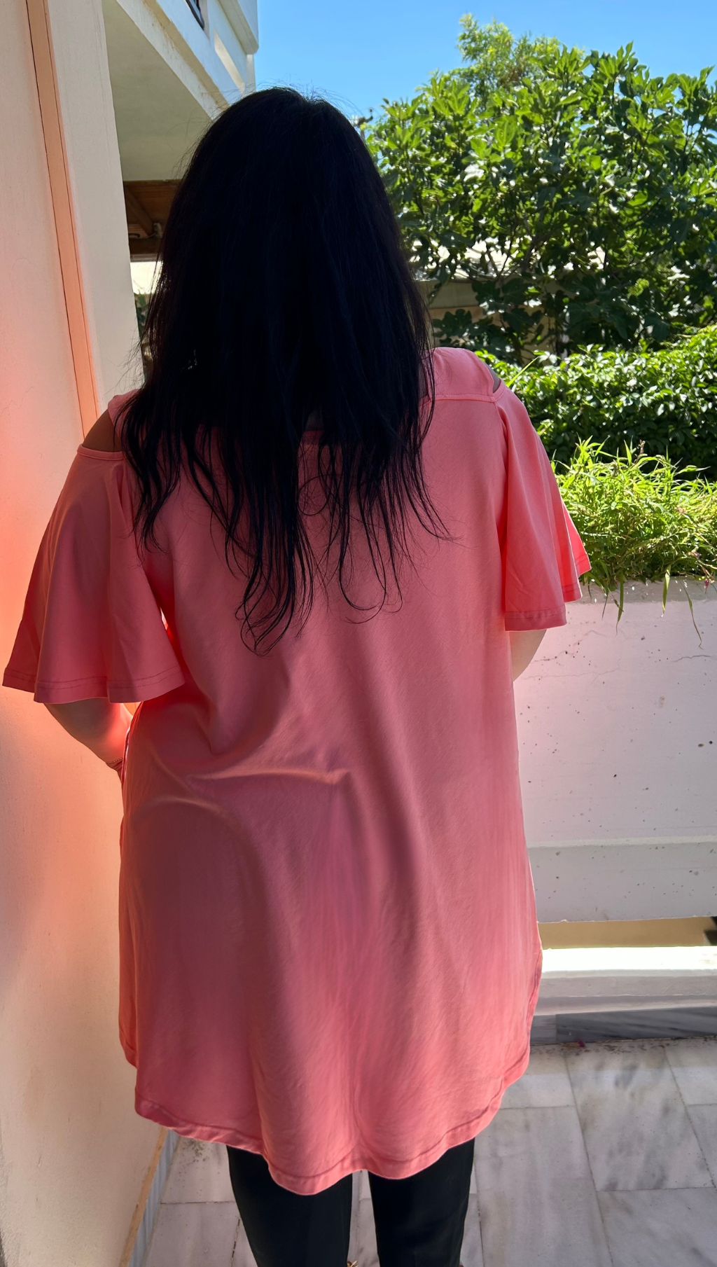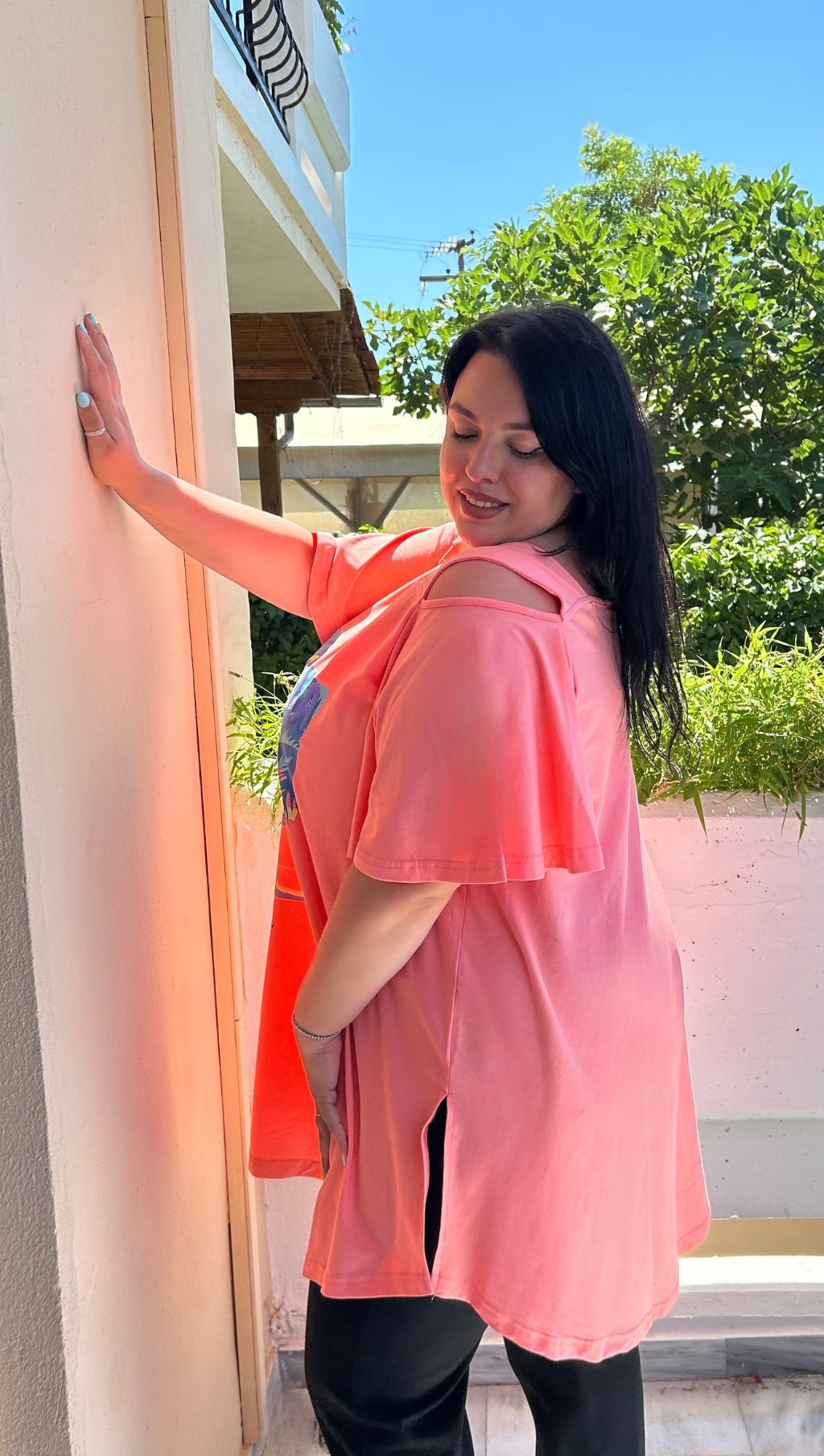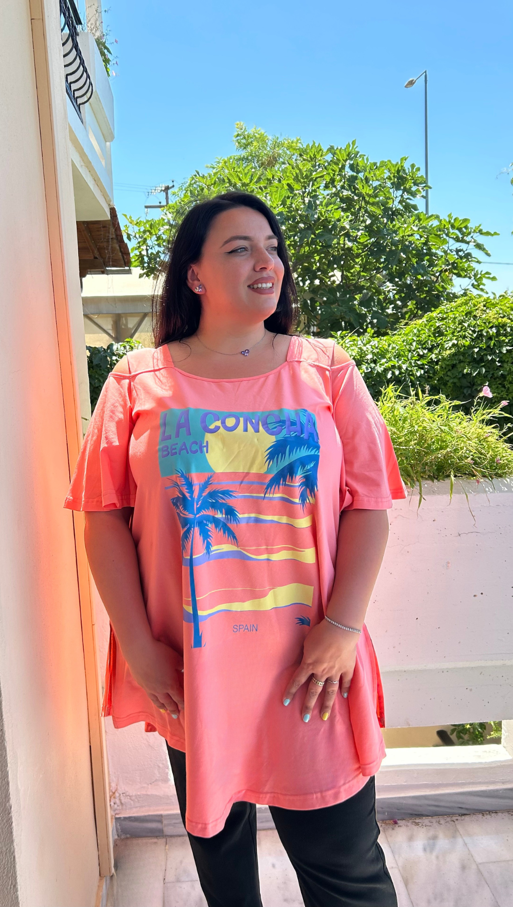Καλοκαιρινή βαμβακερή τουνίκ με στάμπα – Ροδακινί