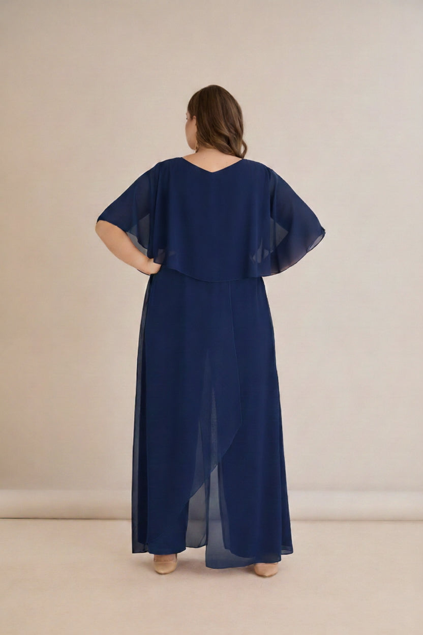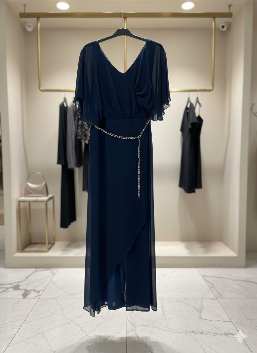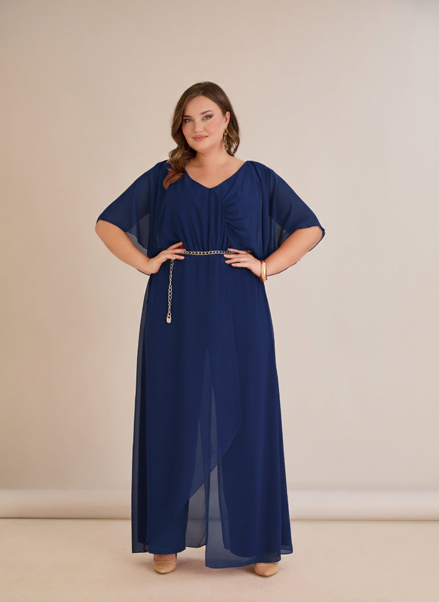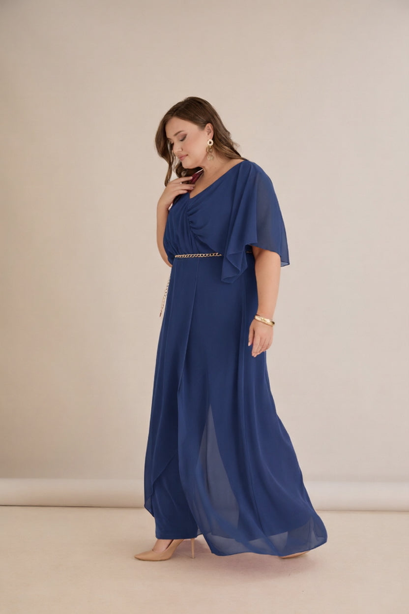 Κομψή ολόσωμη φόρμα από μουσελίνα με αλυσίδα - Σκούρο Μπλε