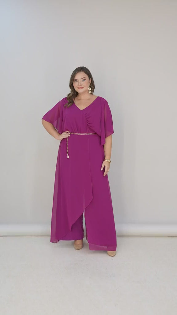 Κομψή ολόσωμη φόρμα από μουσελίνα με αλυσίδα - Λιλά