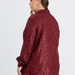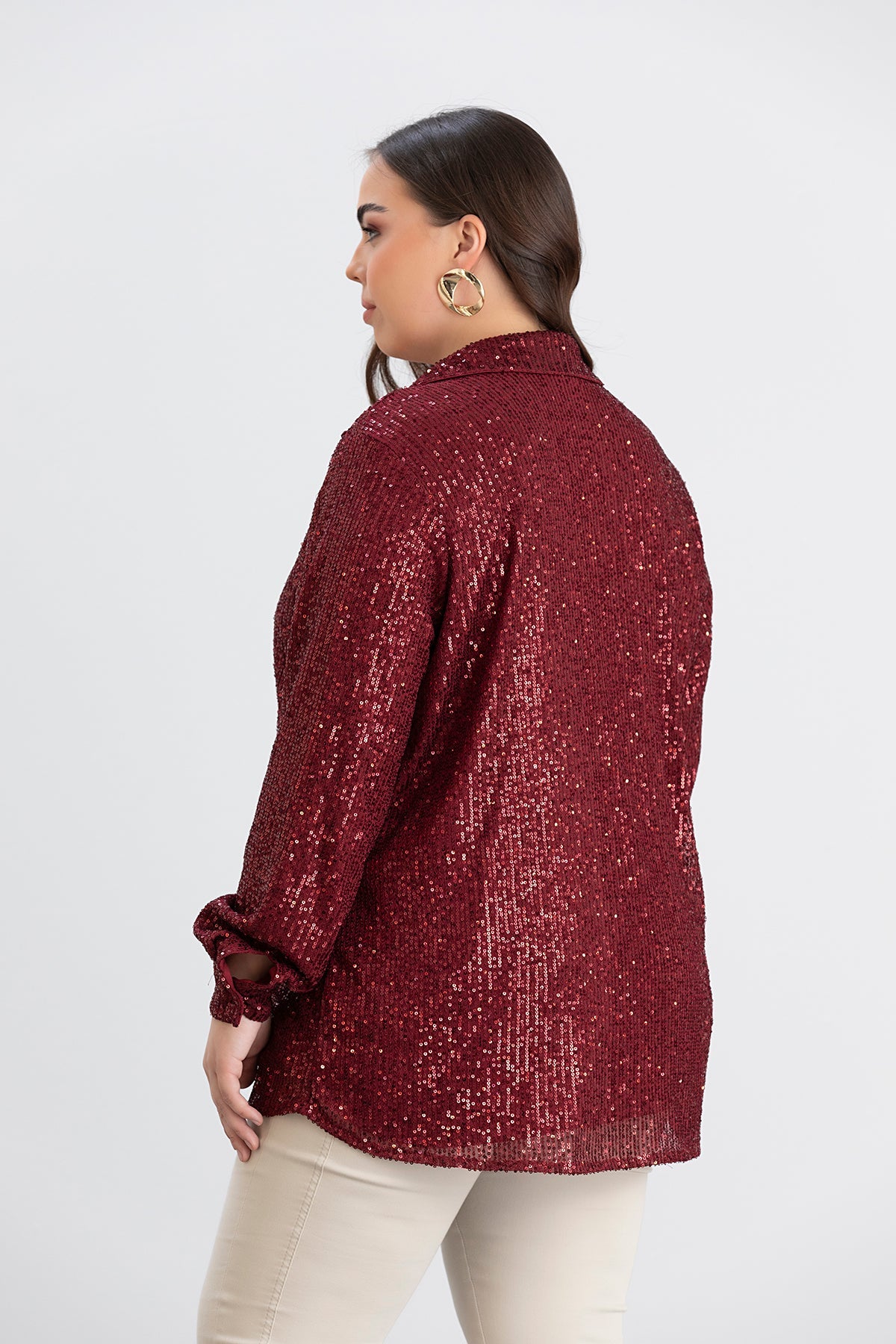 Κομψό γυναικείο πουκάμισο με παγιέτες σε μεγάλα μεγέθη - Μπορντό