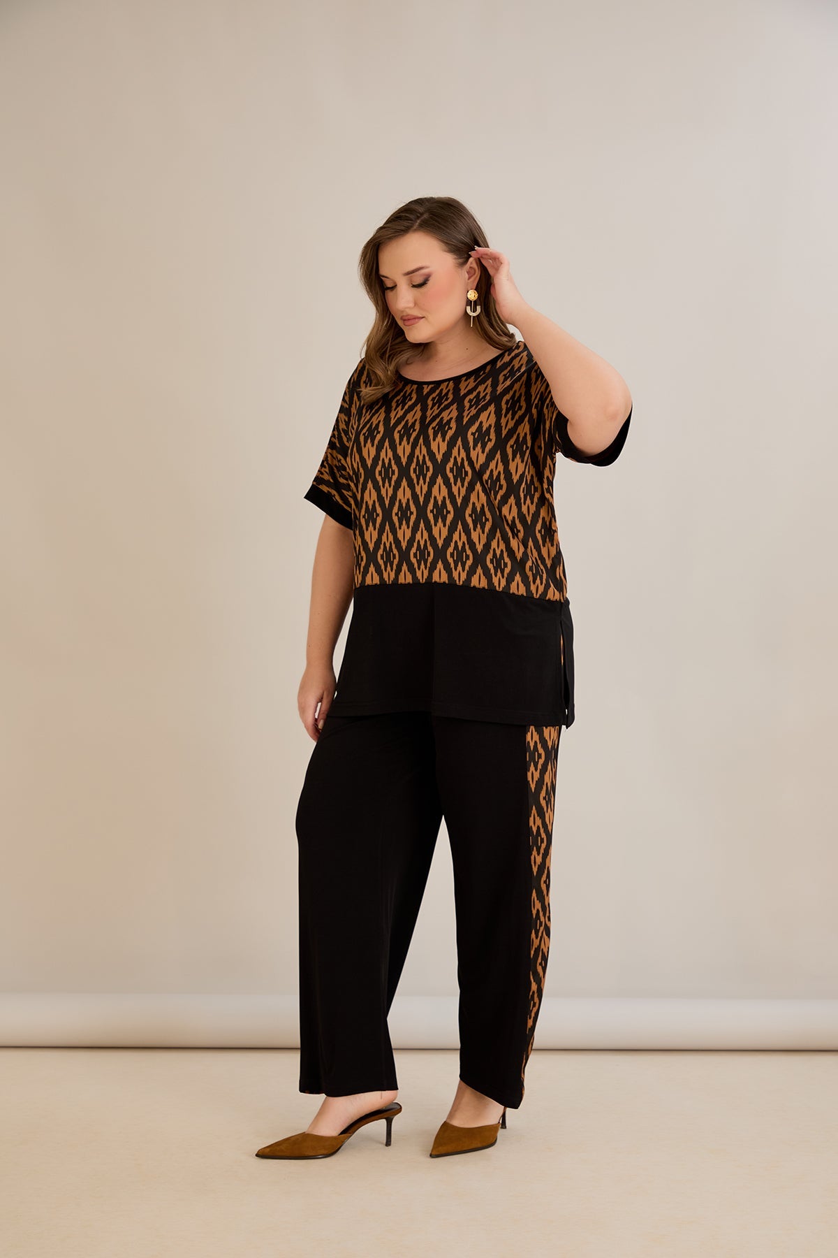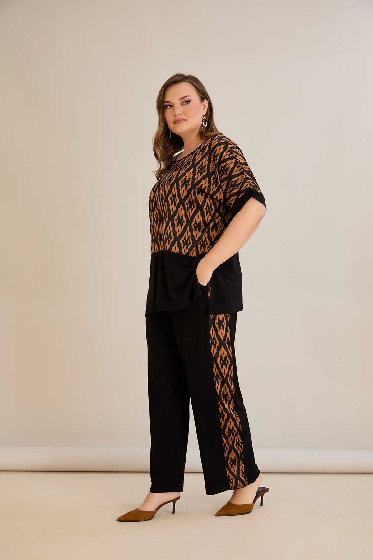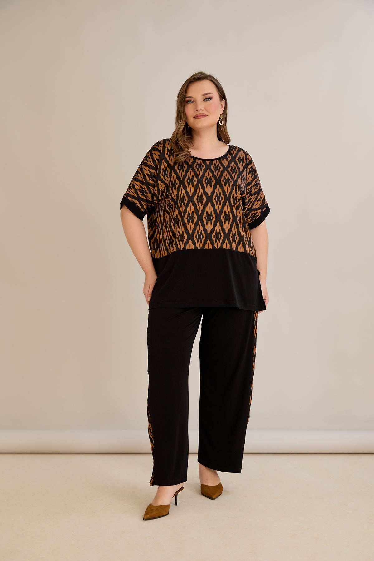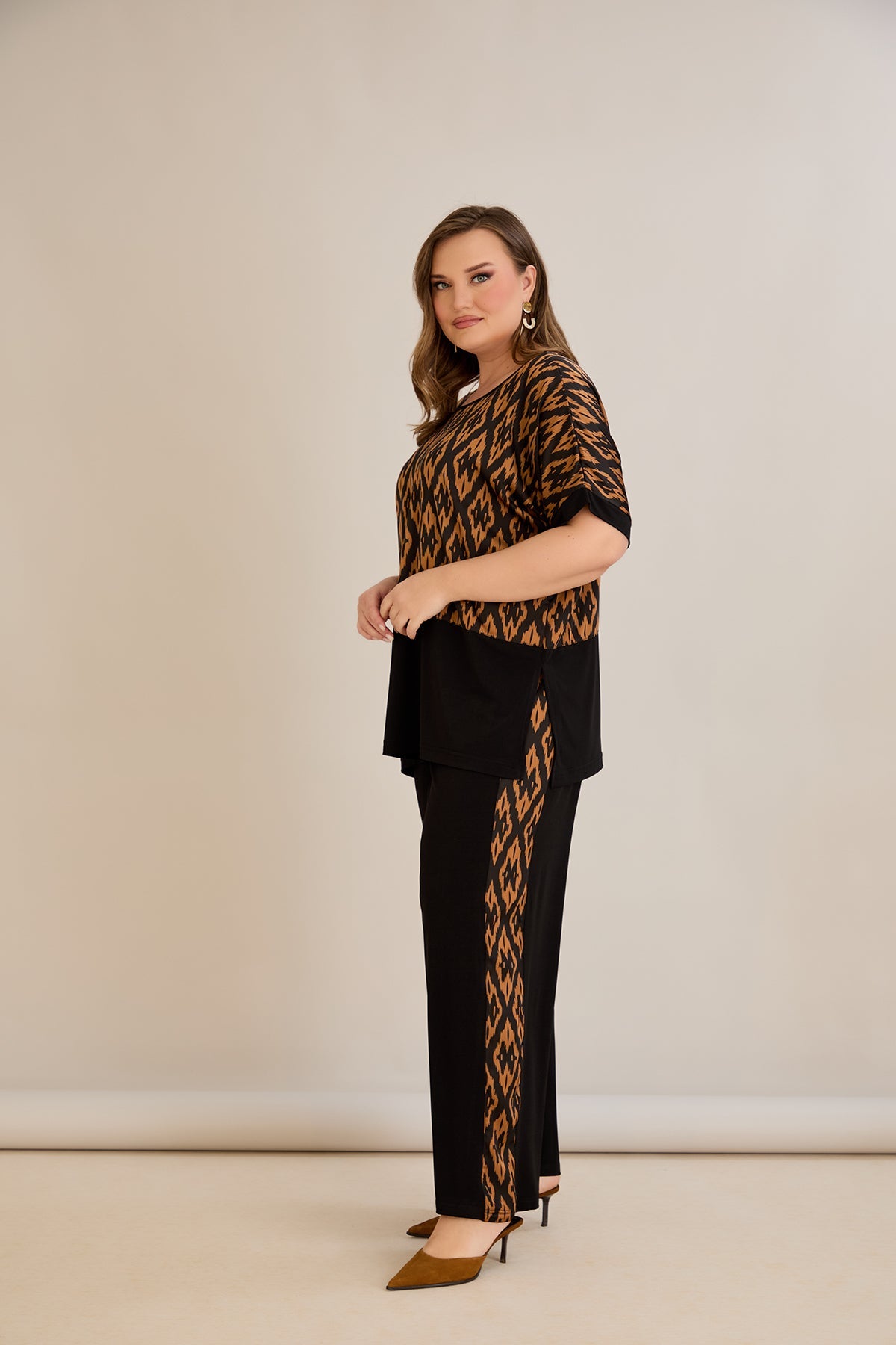 • Φαρδύ μοντέλο παντελόνι με φαρδύ πλαϊνή ρήγα  /ίδια με τη τουνίκ/ και τσέπες