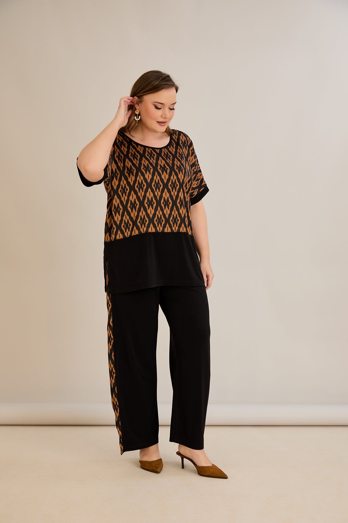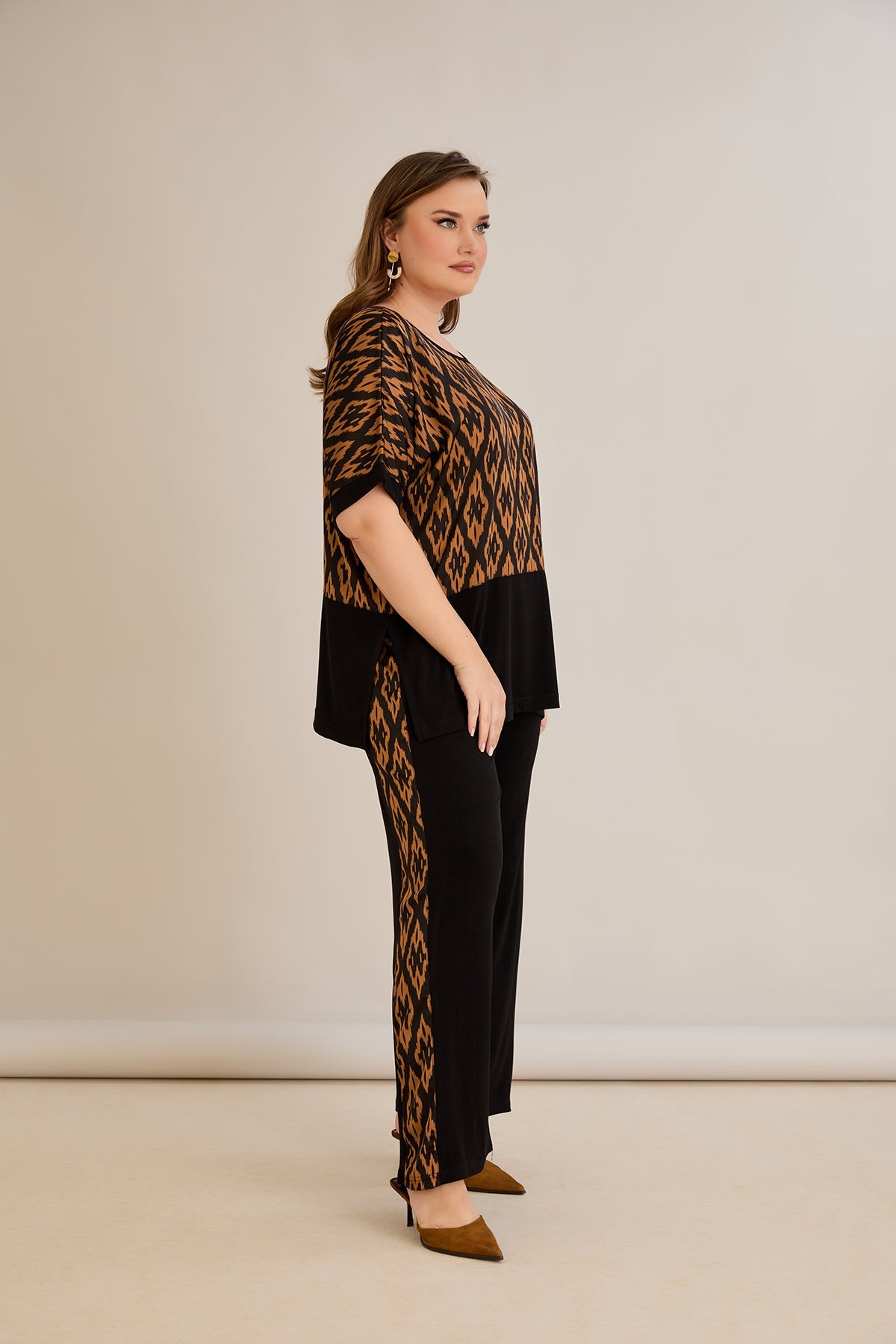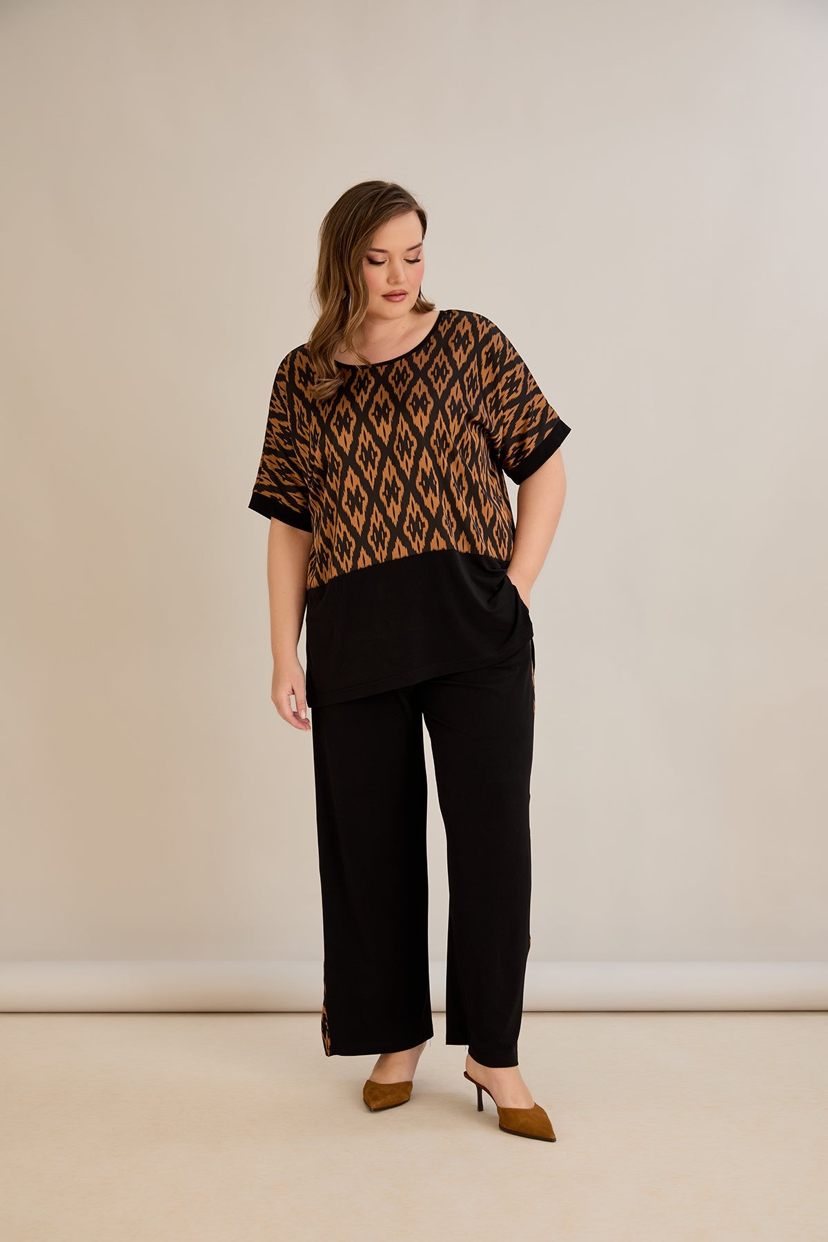 • Φαρδύ μοντέλο παντελόνι με φαρδύ πλαϊνή ρήγα  /ίδια με τη τουνίκ/ και τσέπες