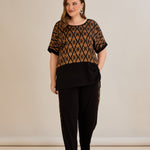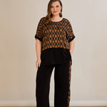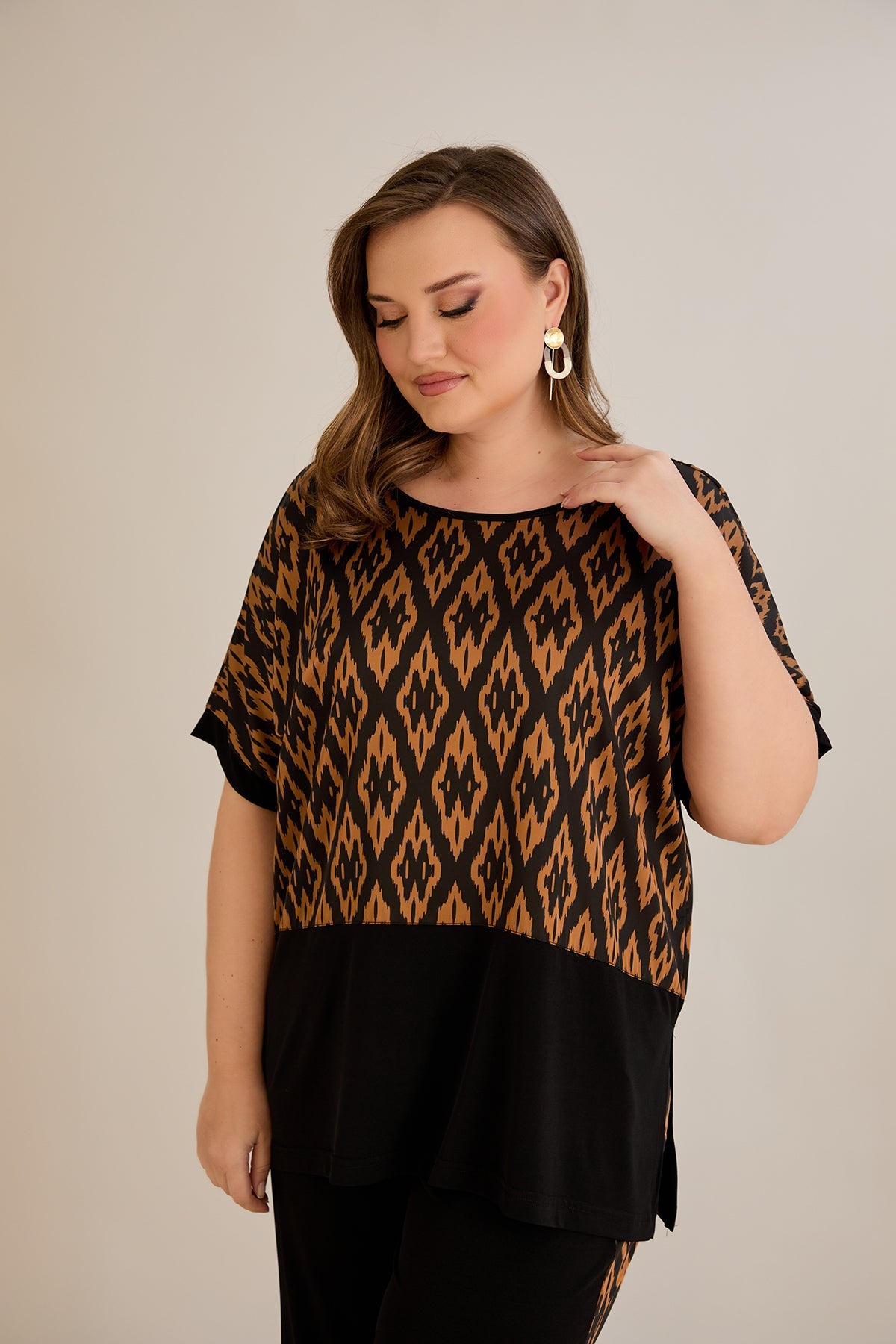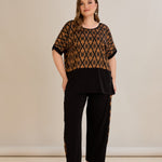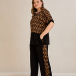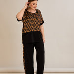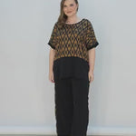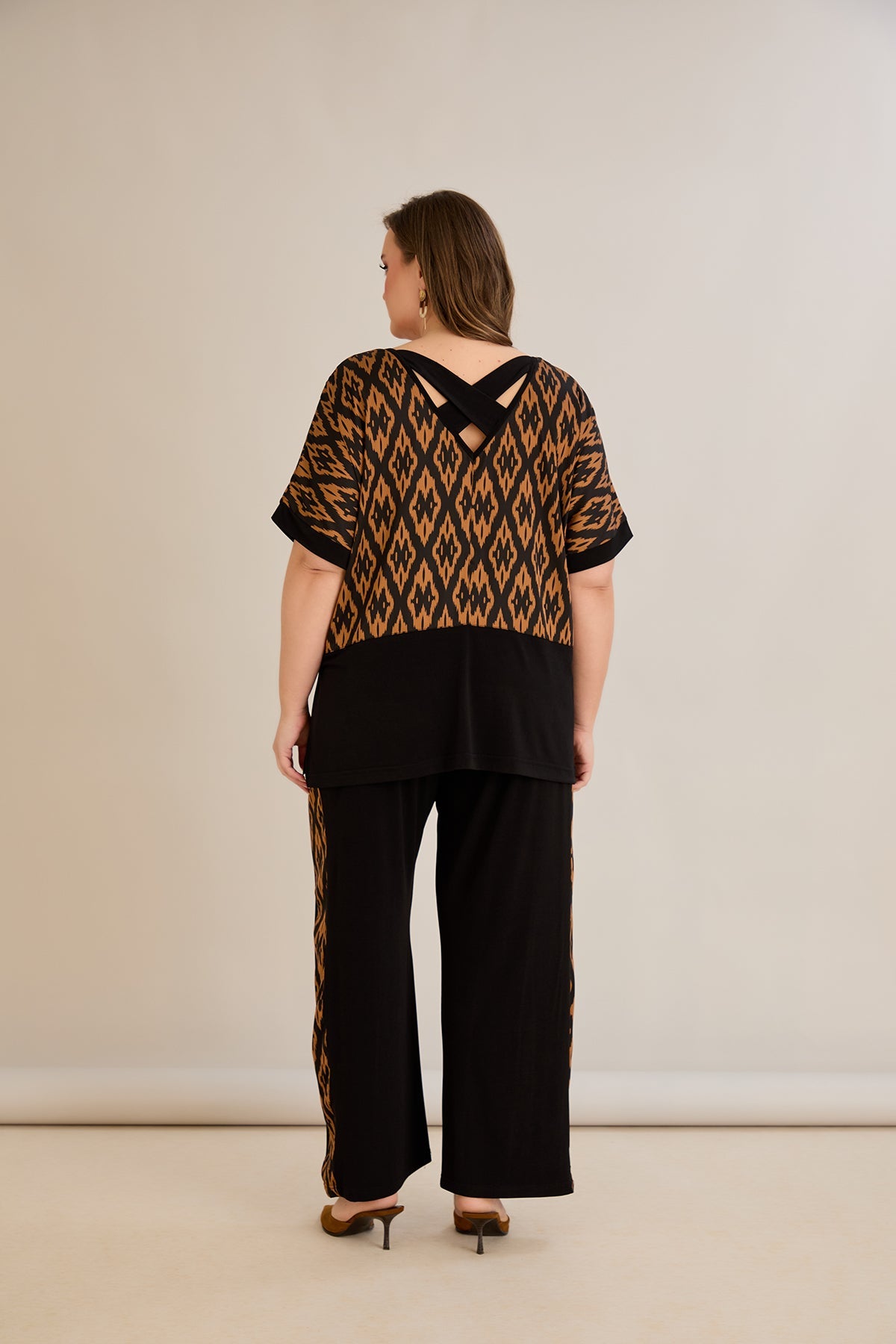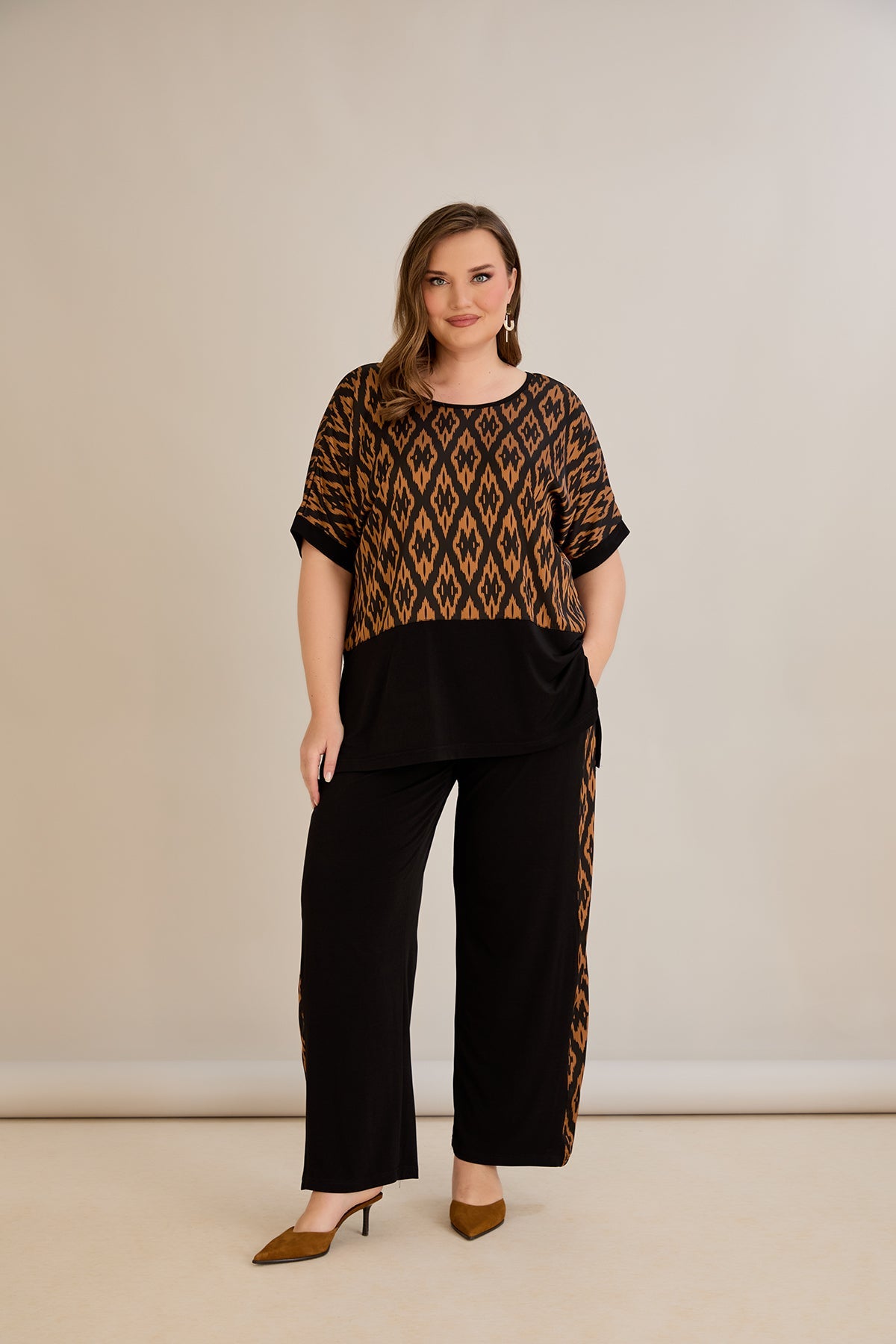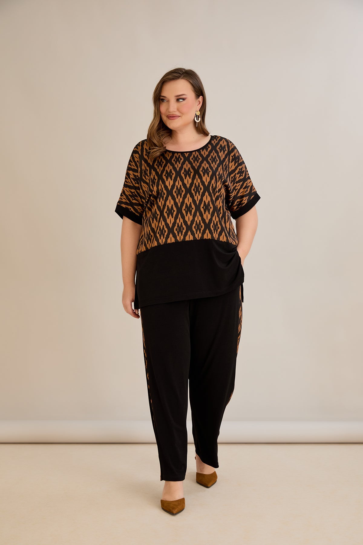 • Φαρδύ μοντέλο παντελόνι με φαρδύ πλαϊνή ρήγα  /ίδια με τη τουνίκ/ και τσέπες