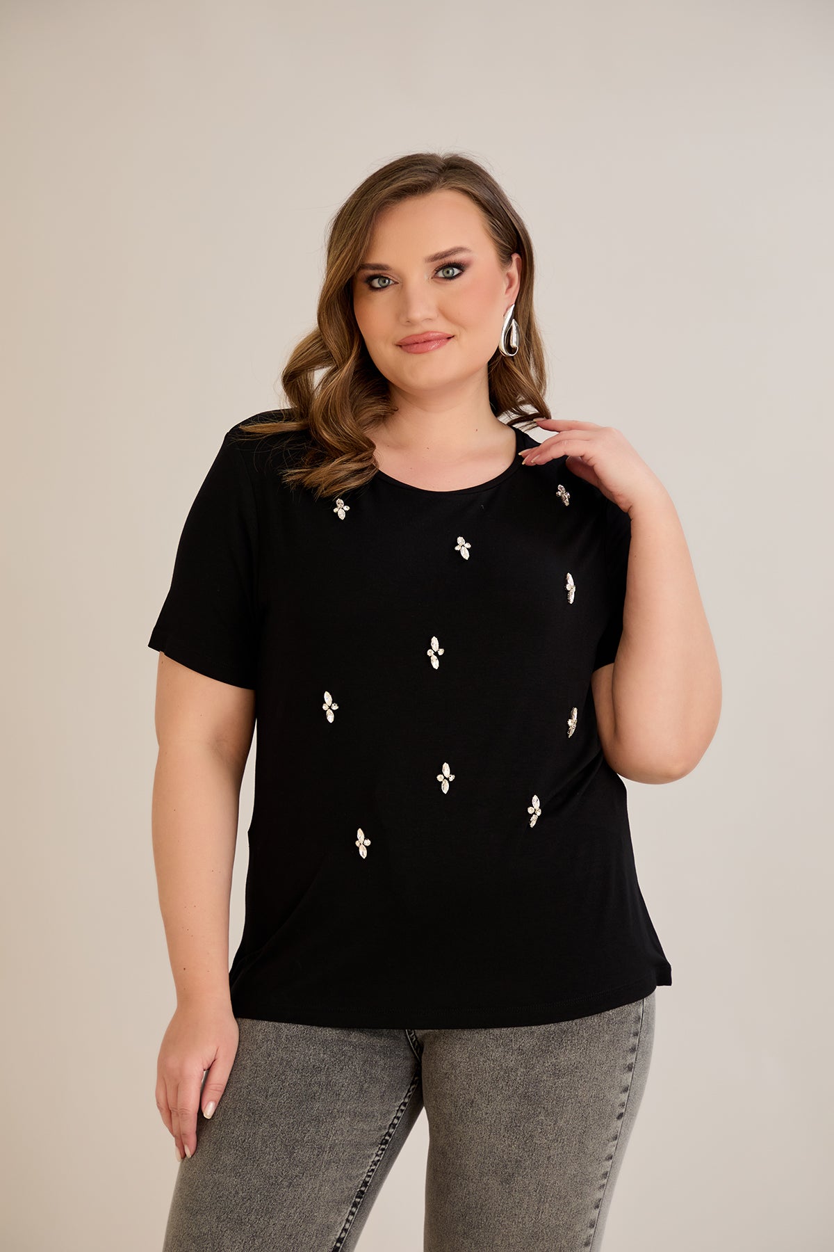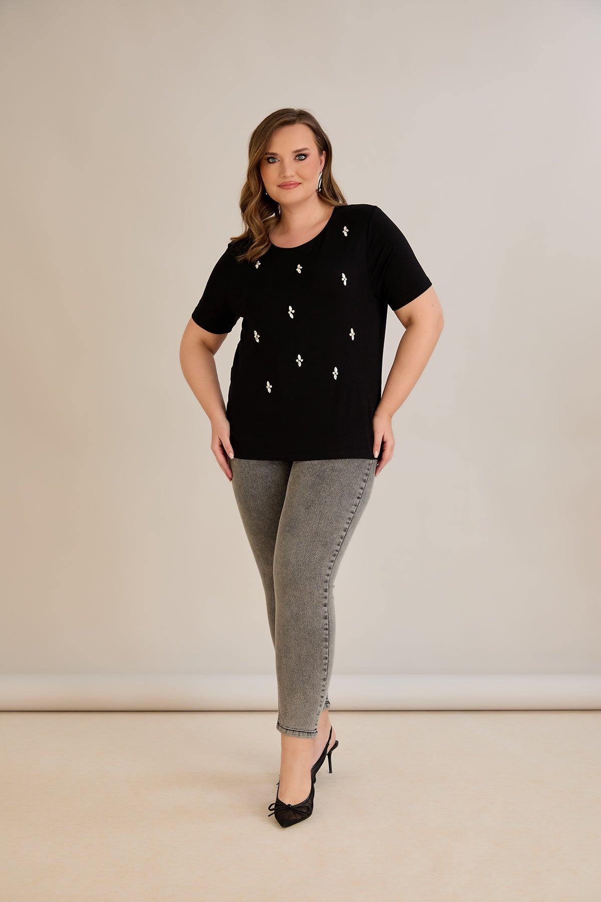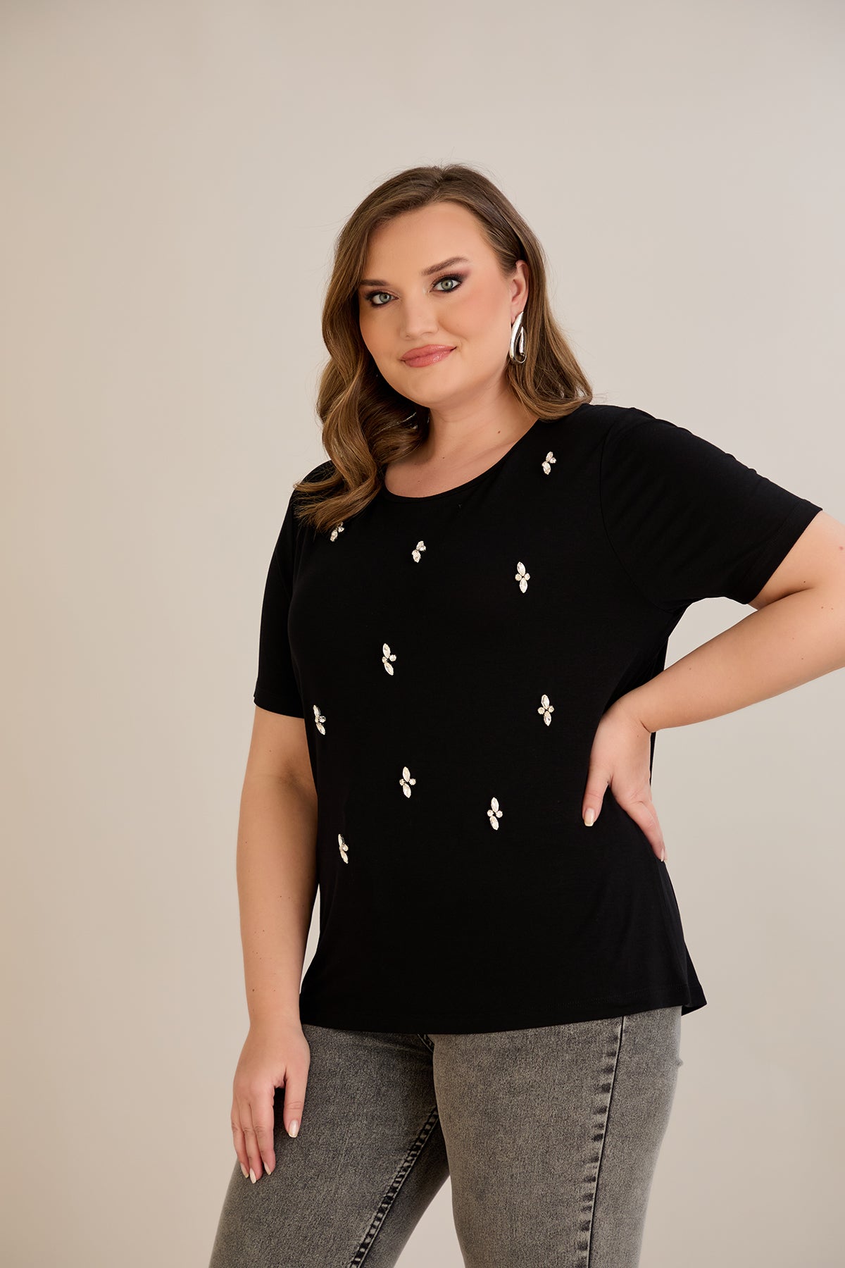 • Μπλούζα βισκόζης με λεπτή διακόσμηση με πετρούλες