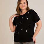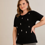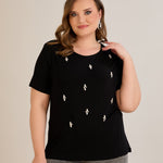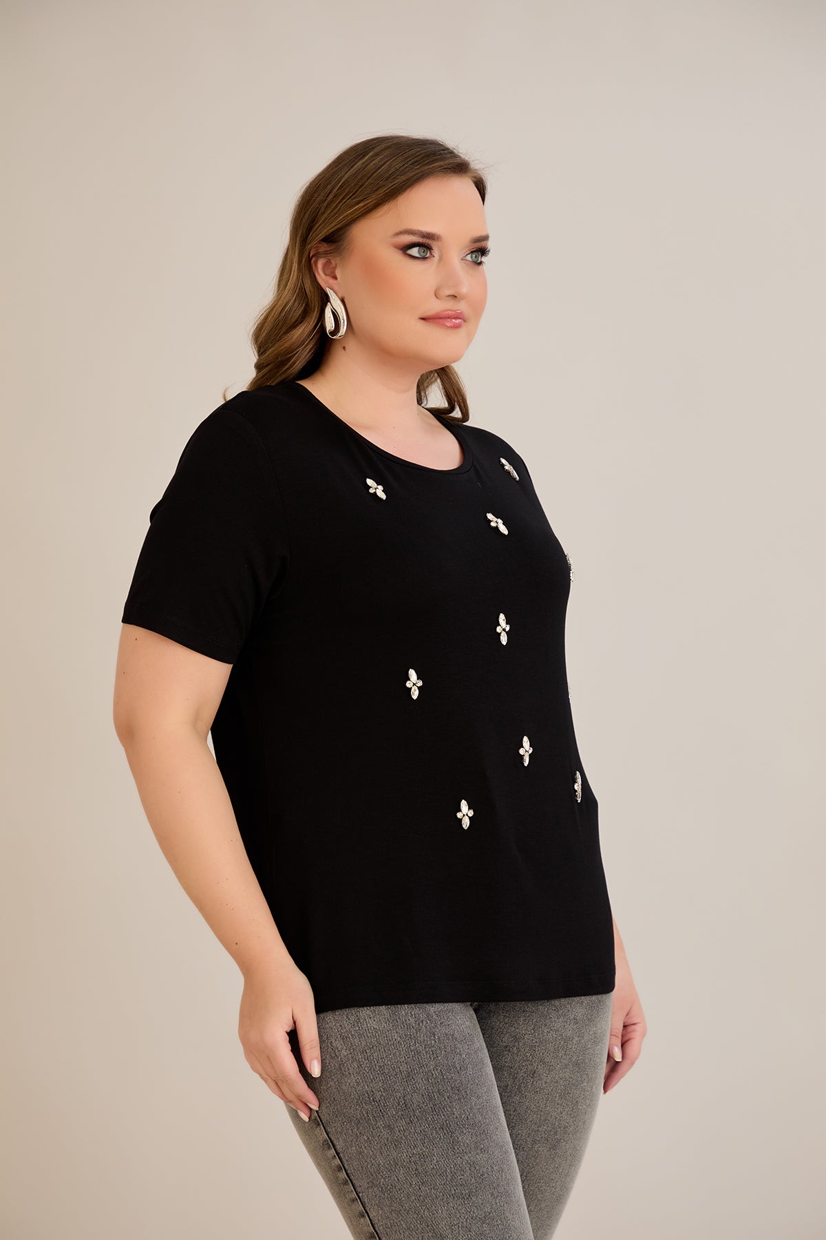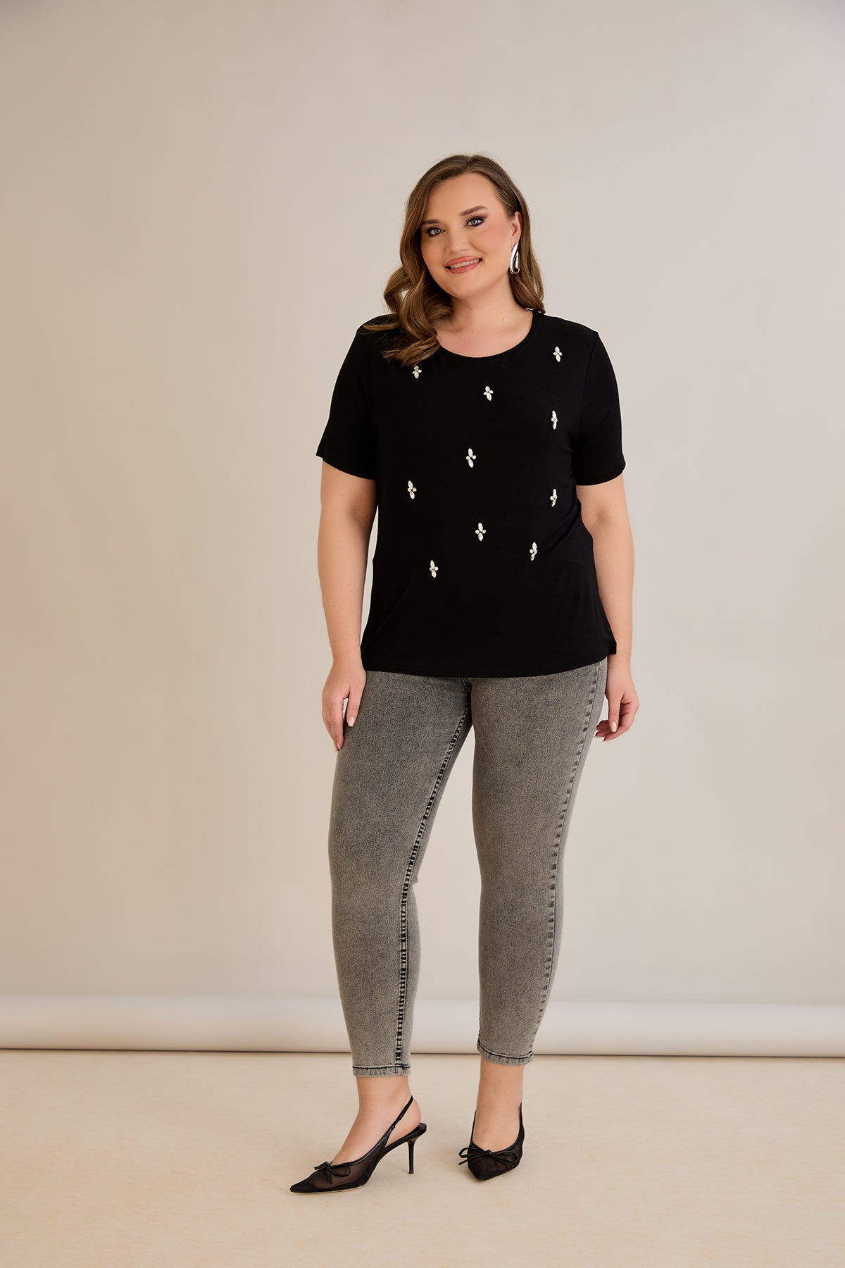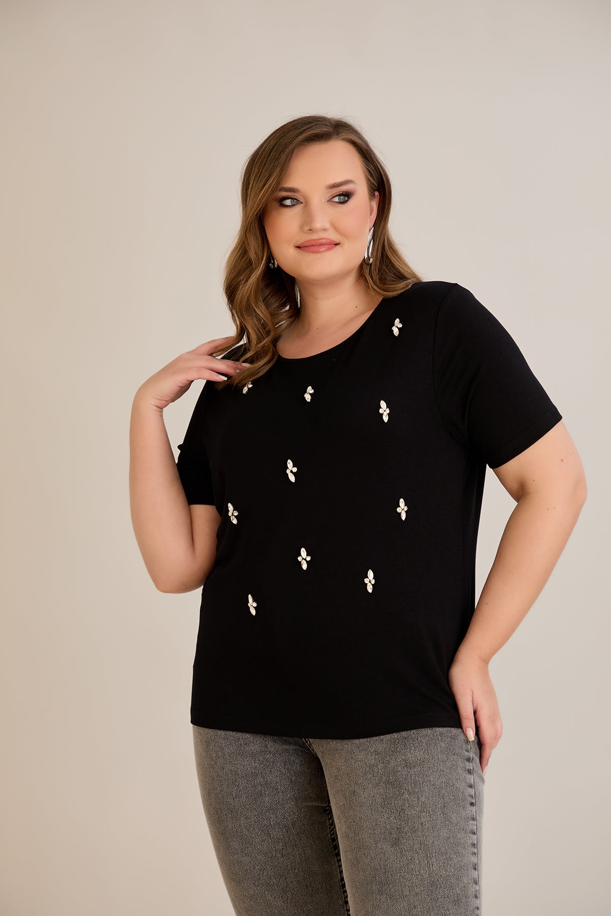 • Μπλούζα βισκόζης με λεπτή διακόσμηση με πετρούλες