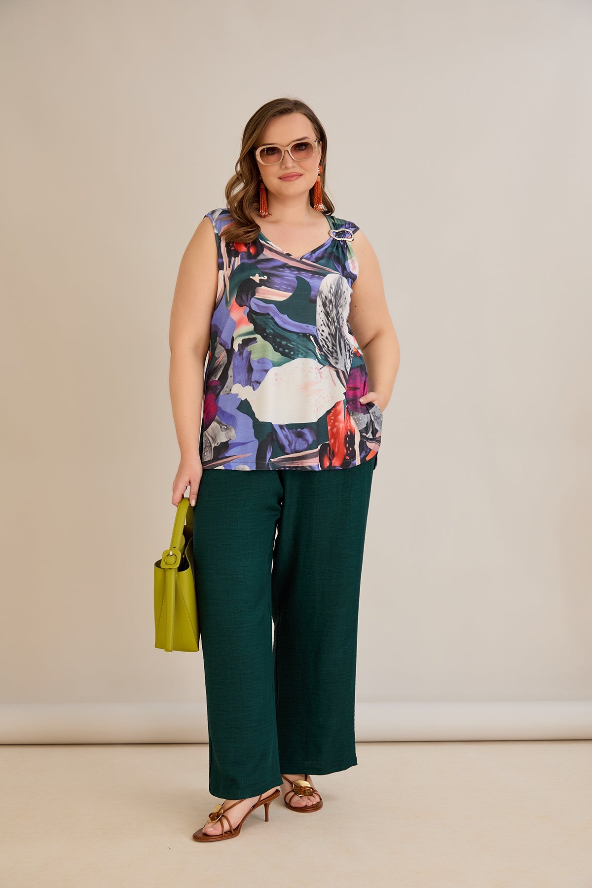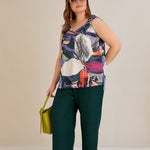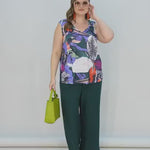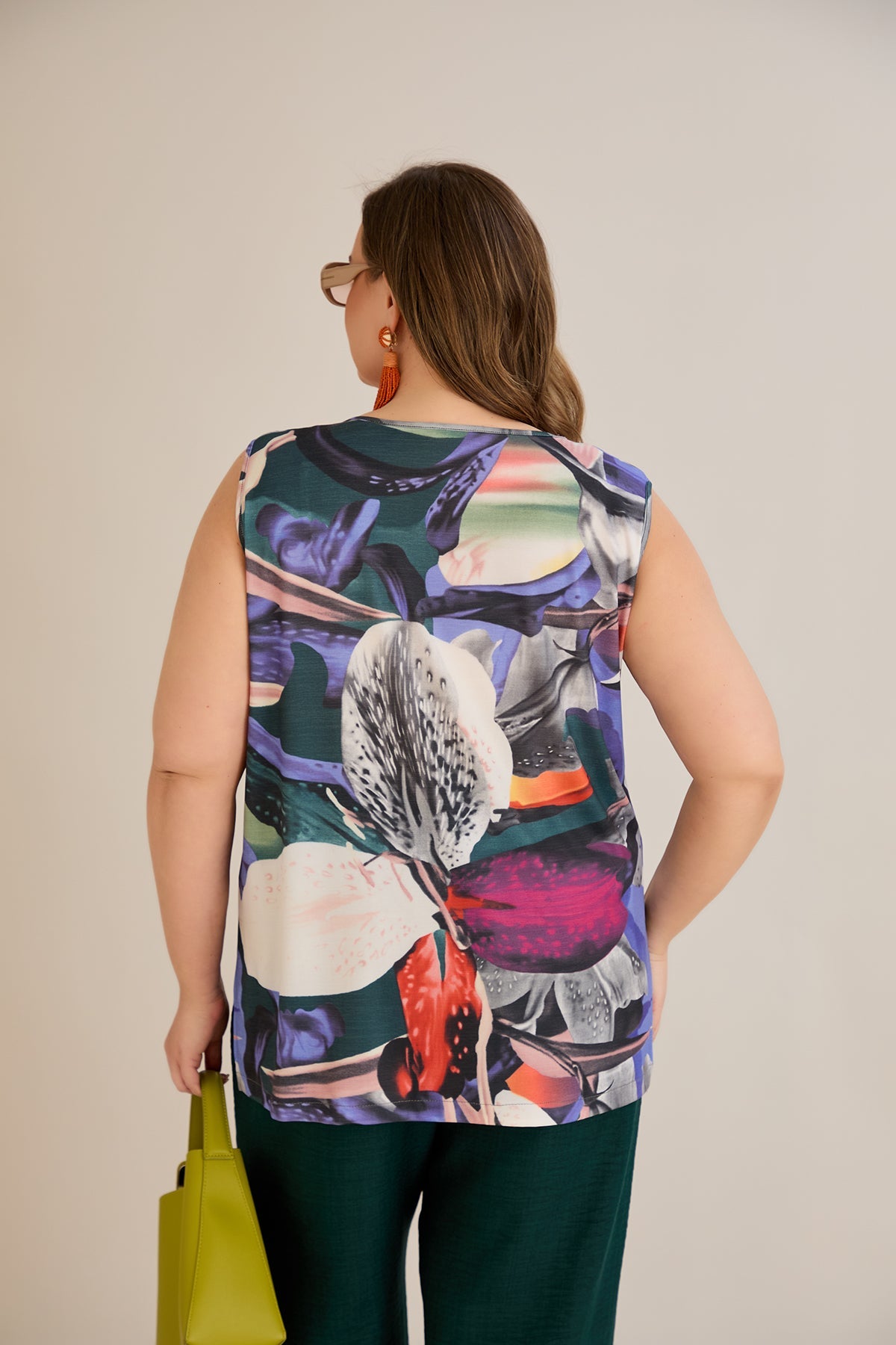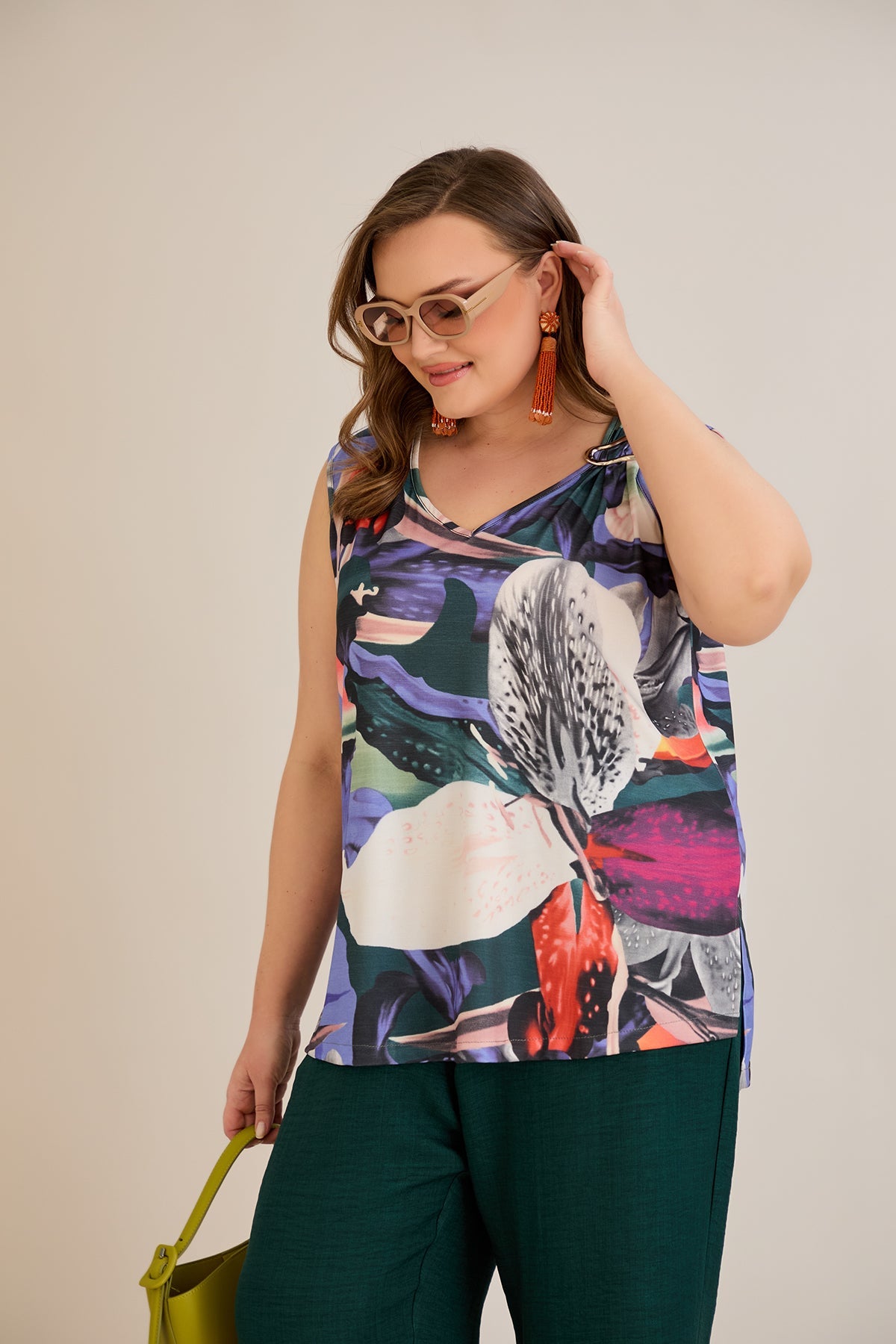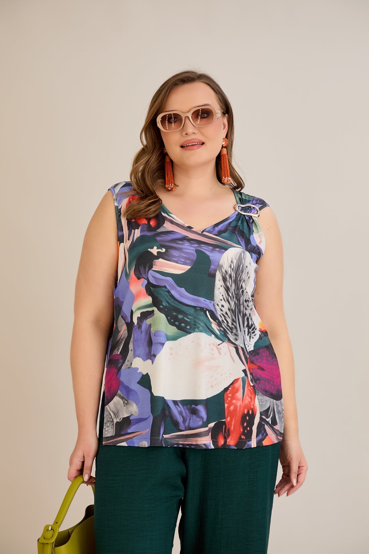 Ανανεώστε το καλοκαιρινό σας στυλ με αυτό το εντυπωσιακό τοπ σε ζωηρό φλοράλ μοτίβο. Η απαλή, ελαστική και ατσαλάκωτη ύφανση προσφέρει άνεση και ευκολία στην καθημερινότητα, ενώ στεγνώνει γρήγορα – ιδανική επιλογή για ζεστές μέρες και ταξίδια.