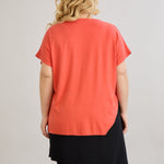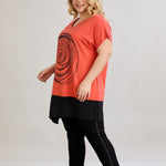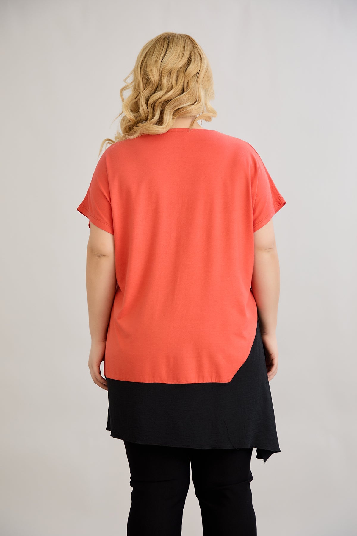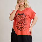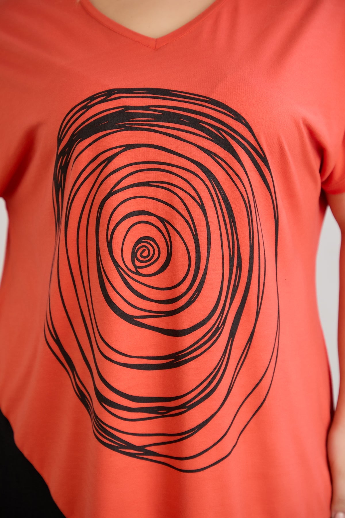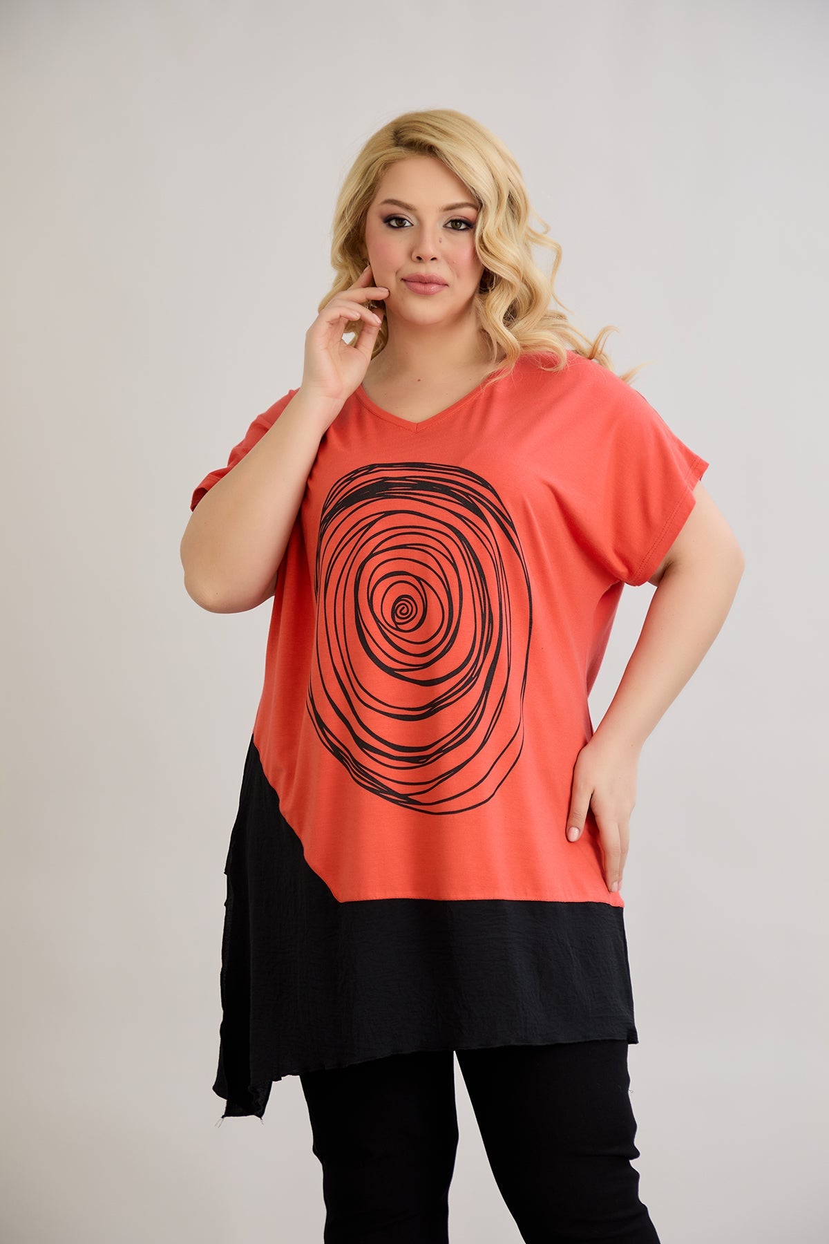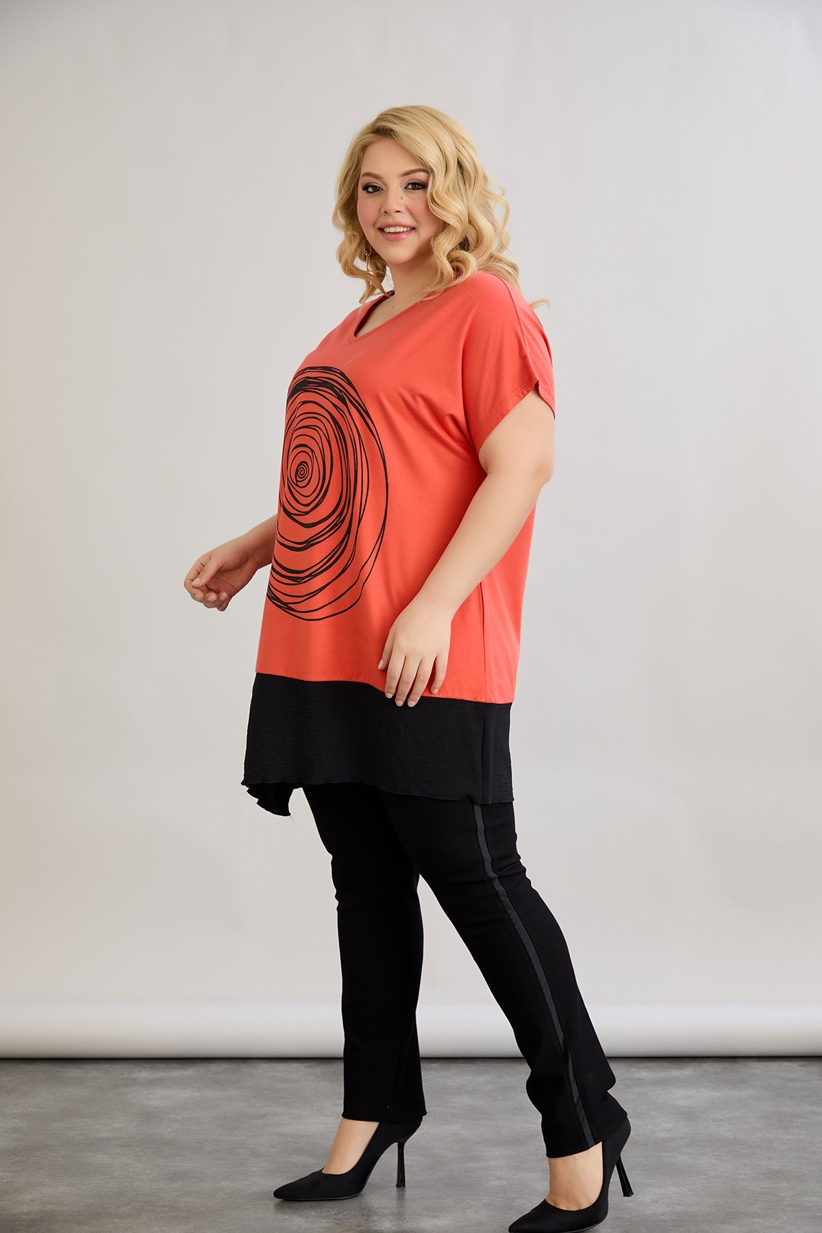 Τουνίκ βισκόζης με στάμπα και V λαιμόκοψη - Κοραλί