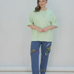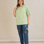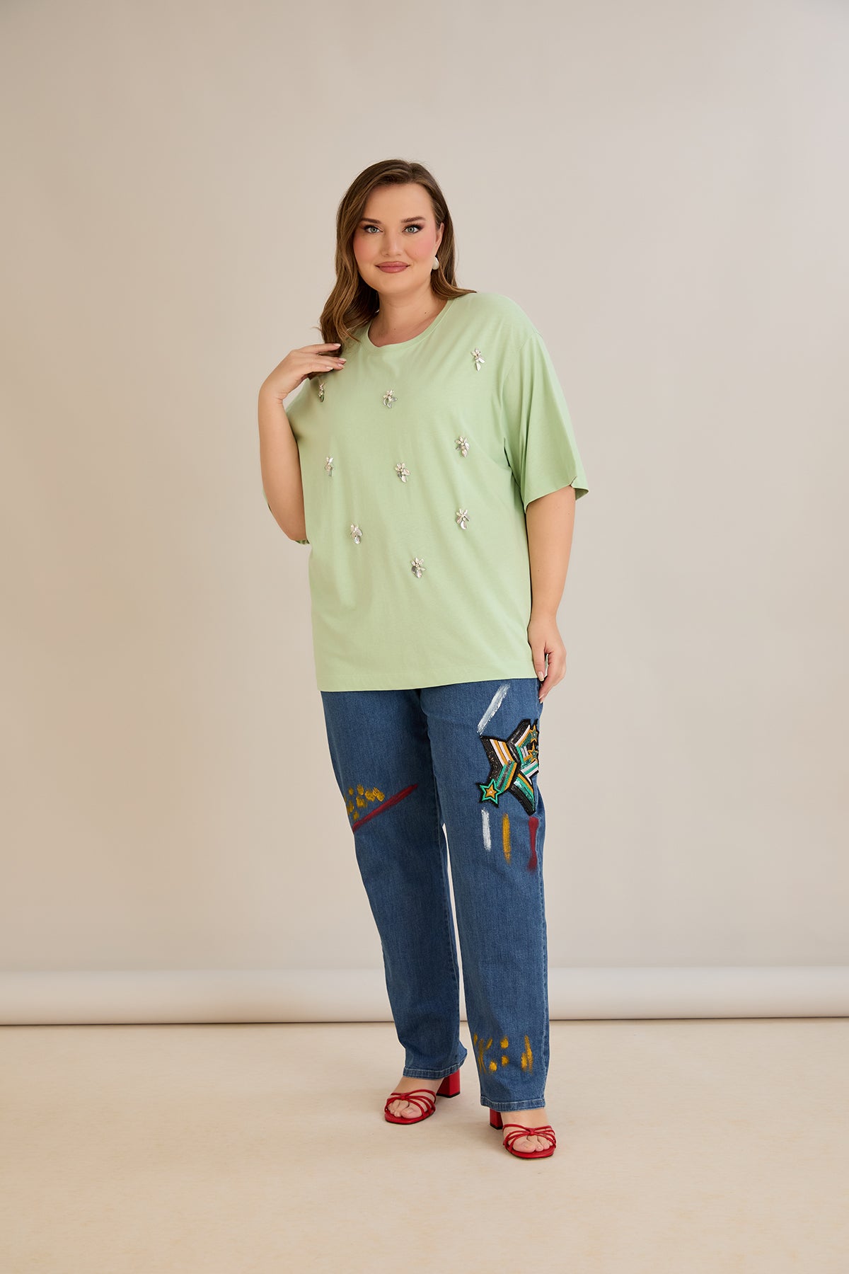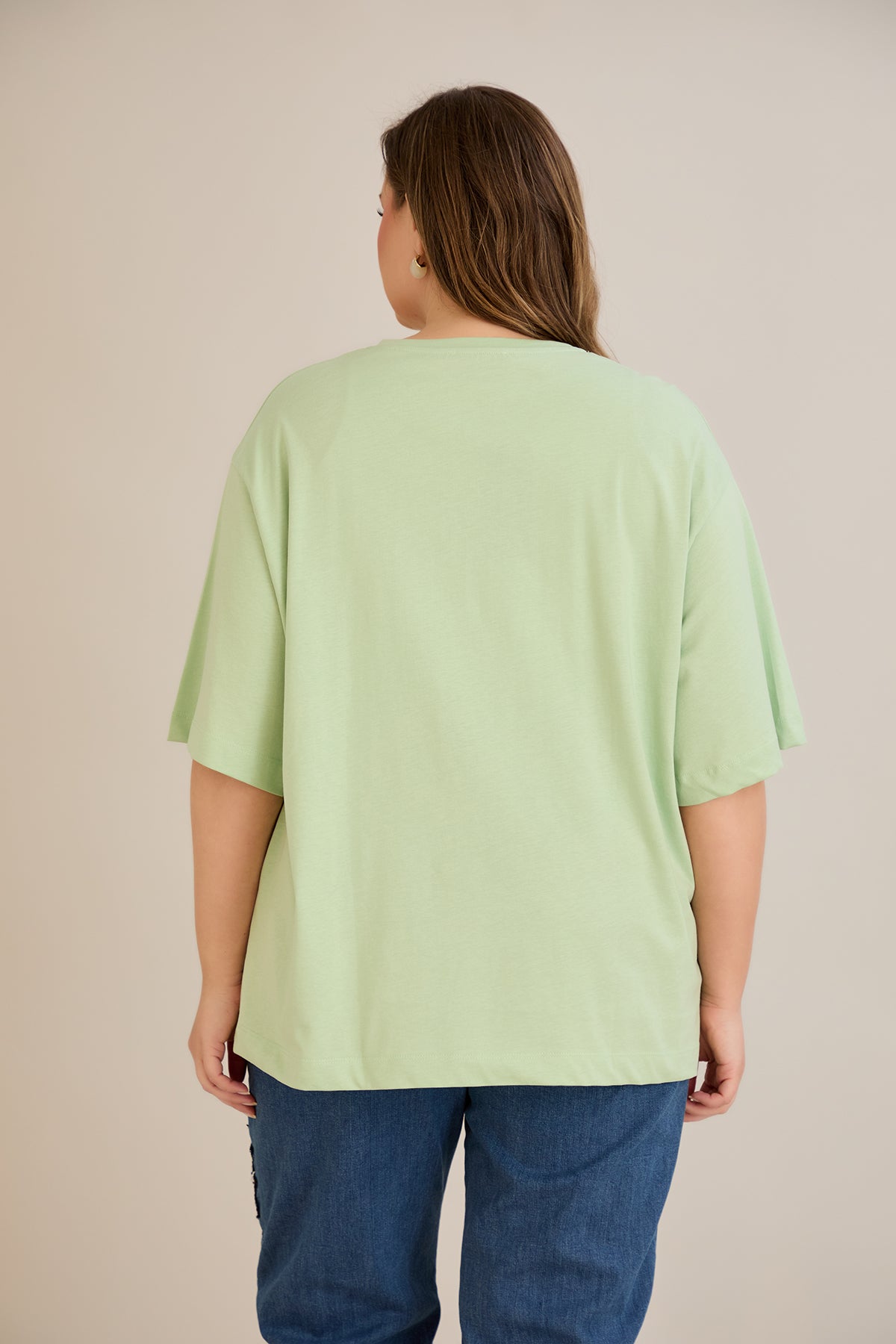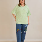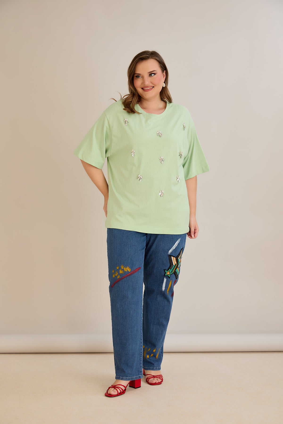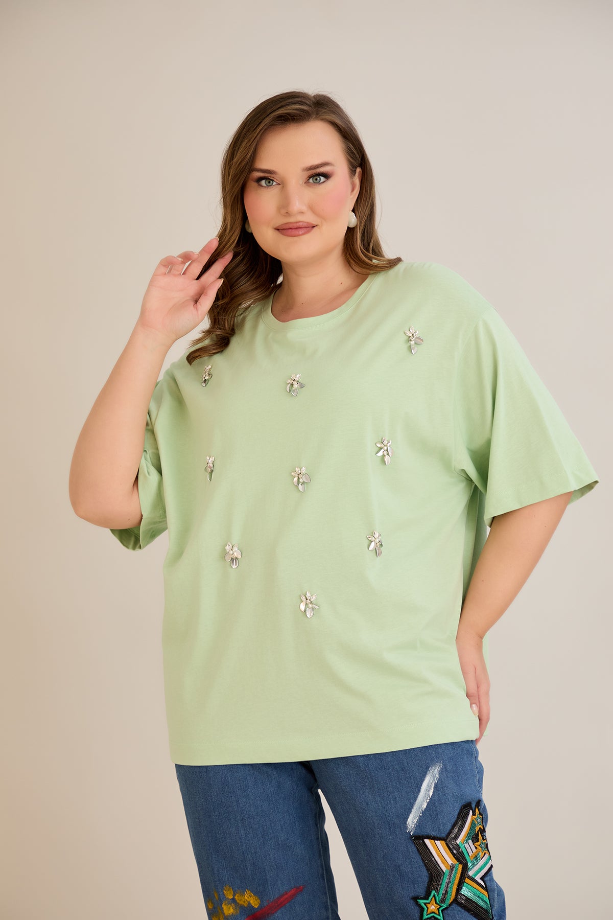 Βαμβακερή μπλούζα oversize 10967 με πετρούλες σε χρώμα μέντα σε μεγάλα μεγέθη