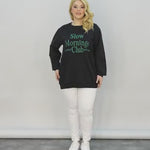 Βαμβακερή μπλούζα με επιγραφή  Slow morning σε μεγάλα μεγέθη- Πράσινο