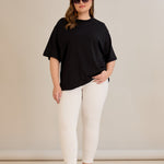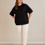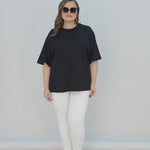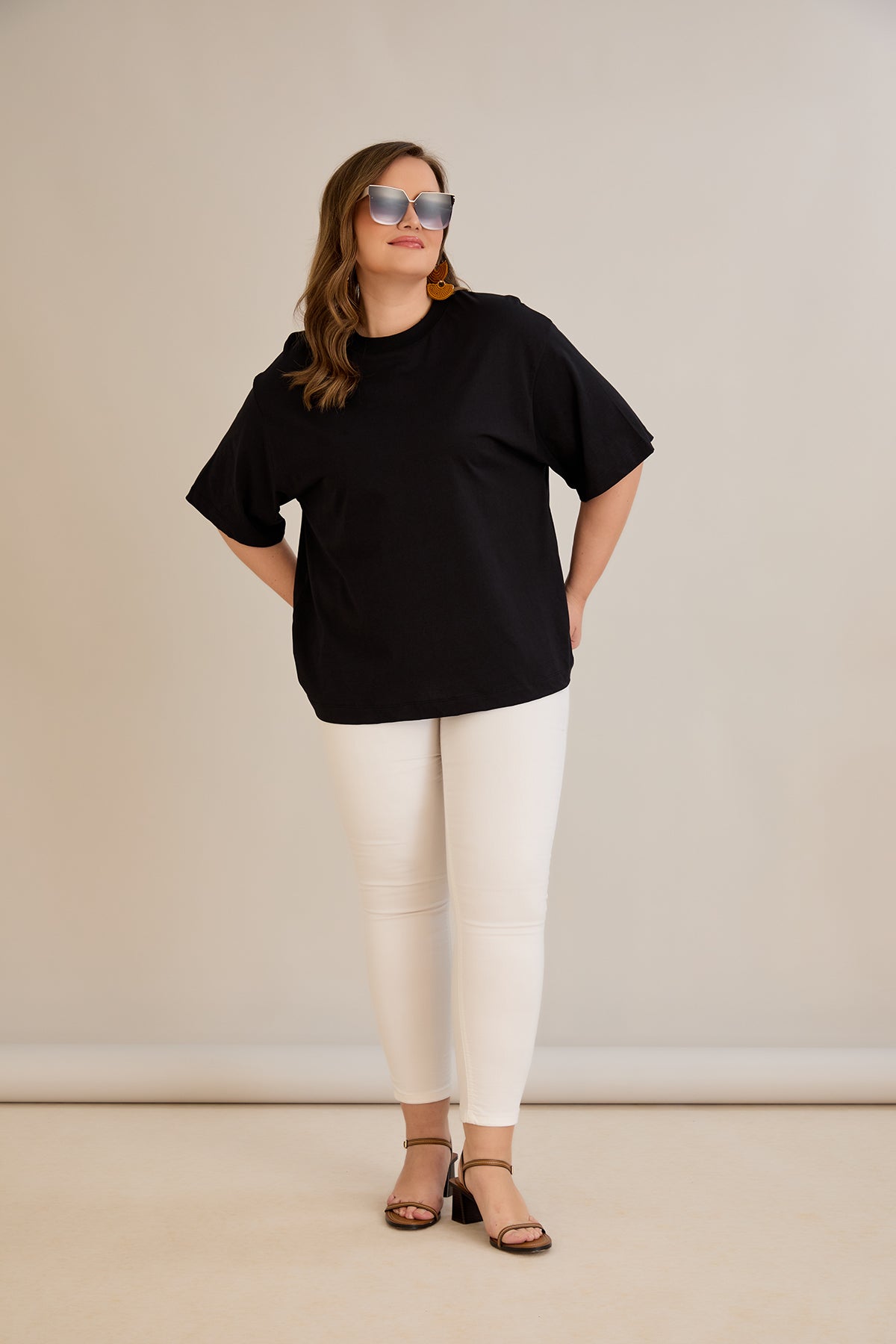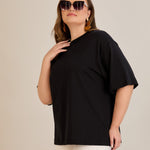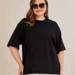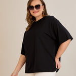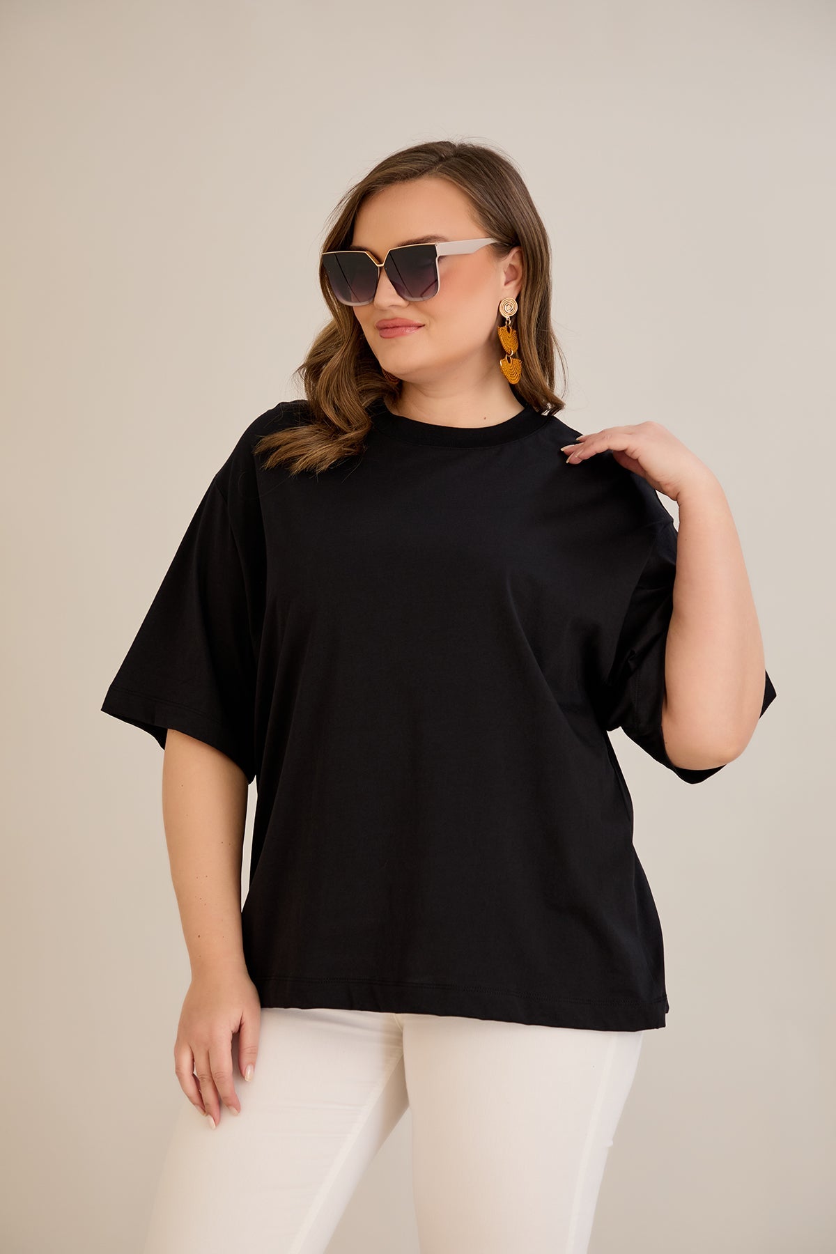 Βαμβακερή μπλούζα oversize 10355 σε μαύρο χρώμα σε μεγάλα μεγέθη