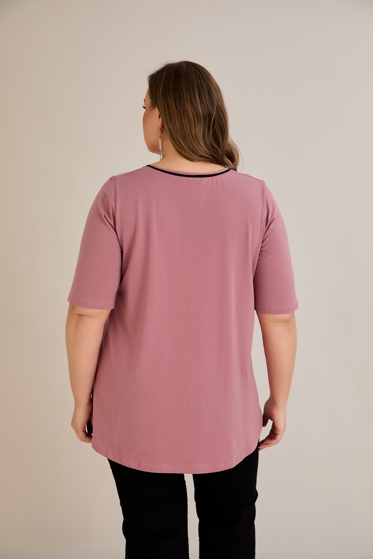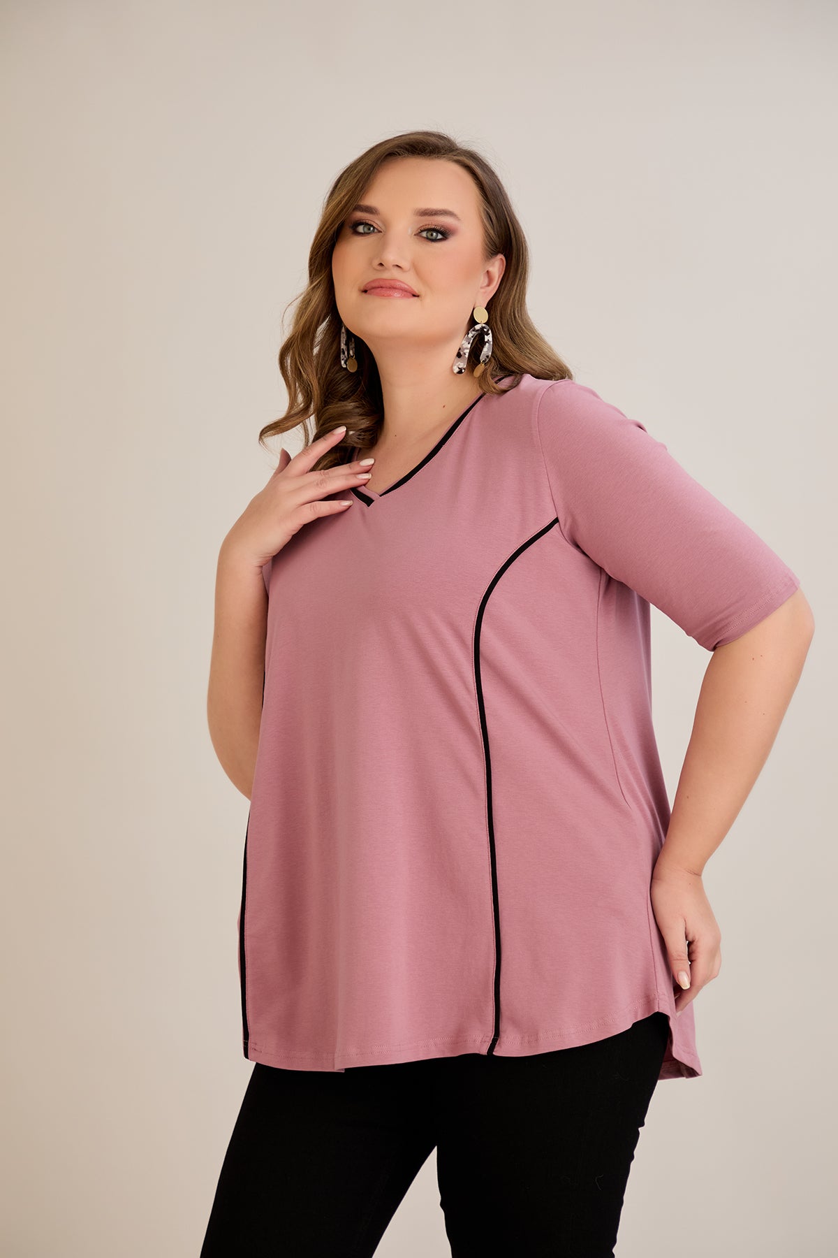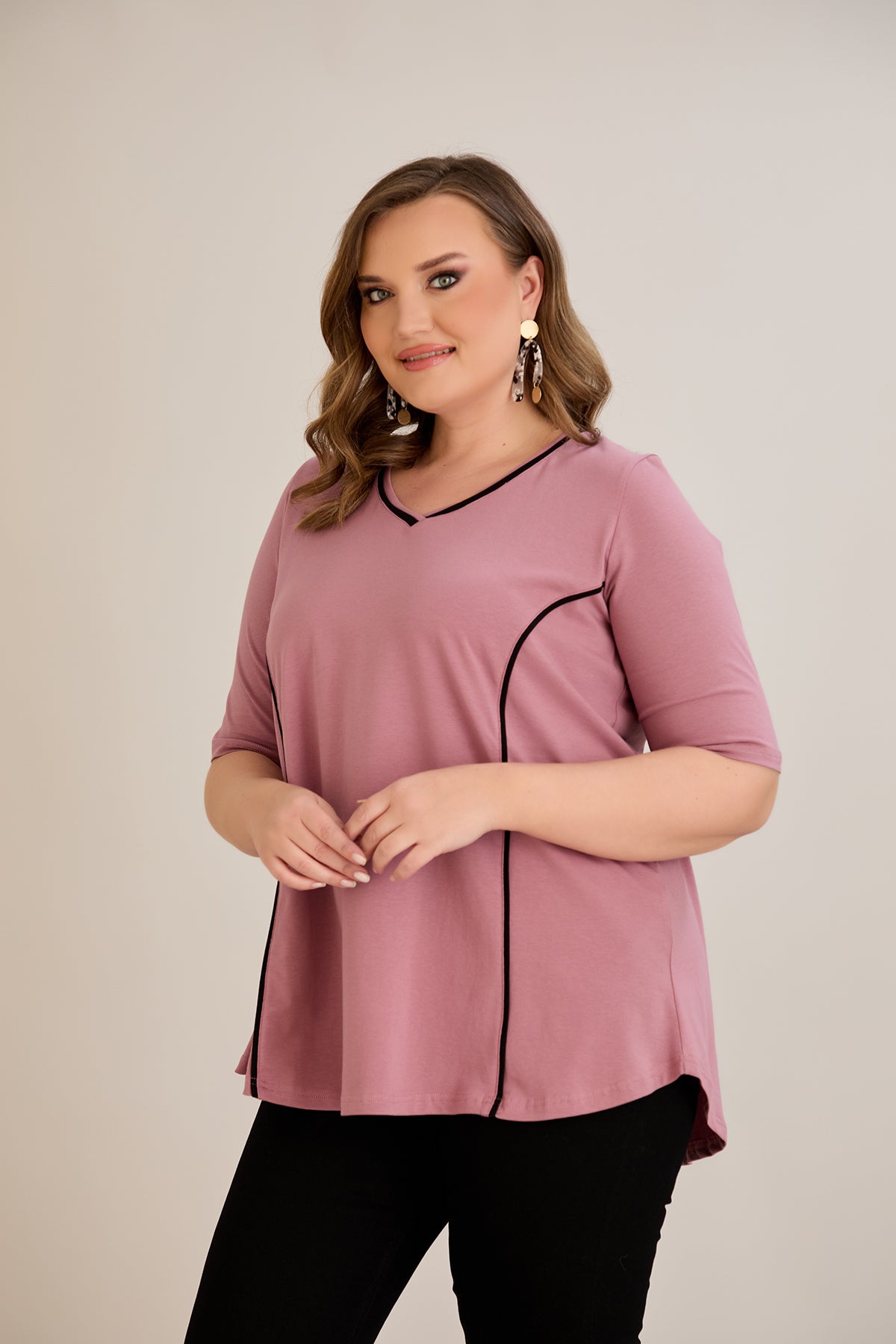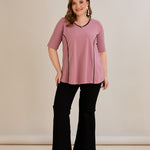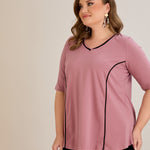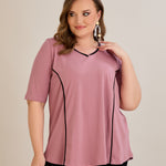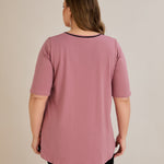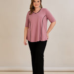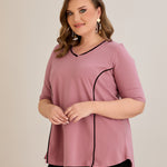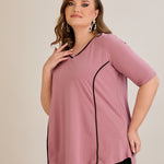 Βαμβακερή μπλούζα σε Α γραμμή σε μεγάλα μεγέθη- Ροζ τριαντάφυλλο