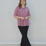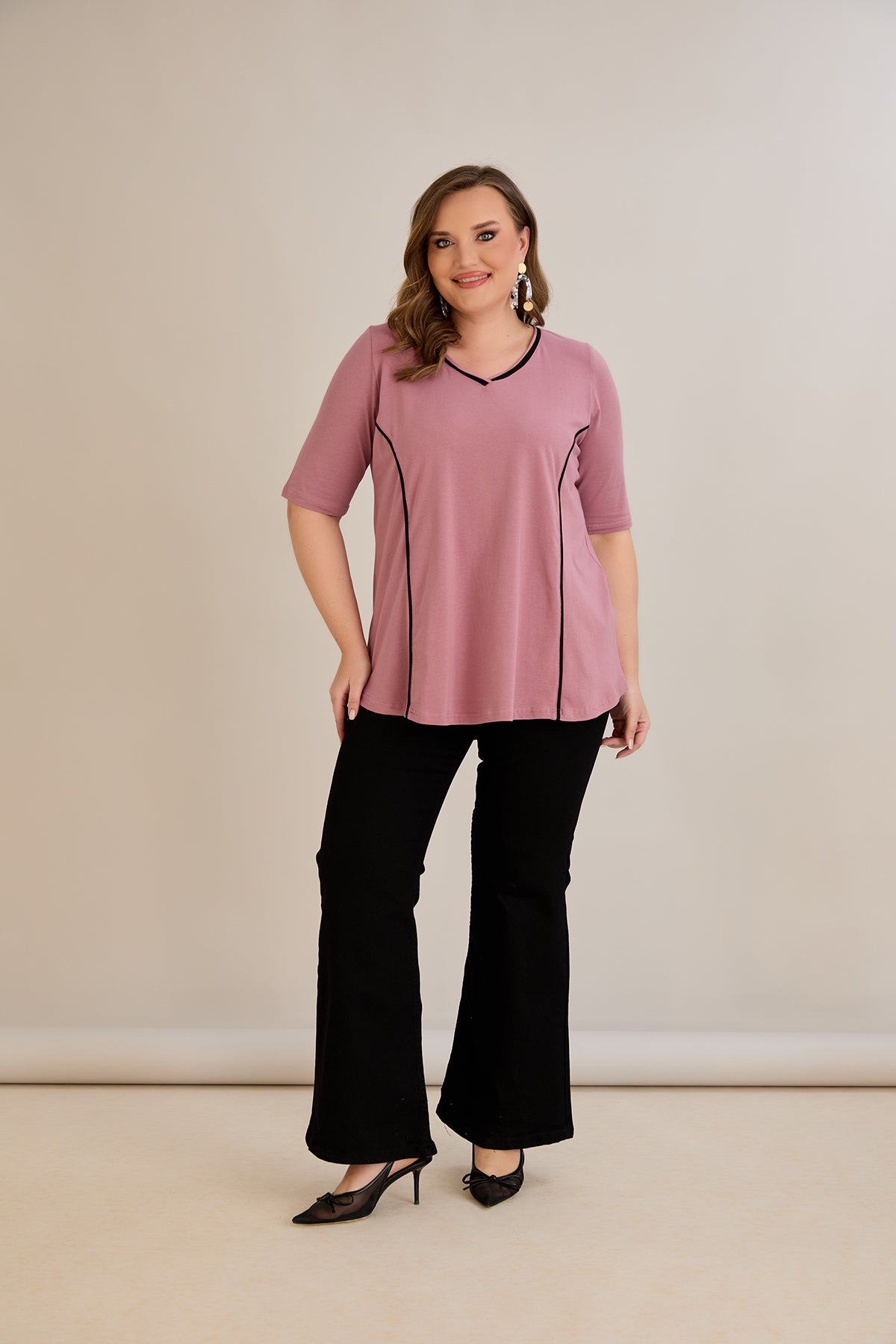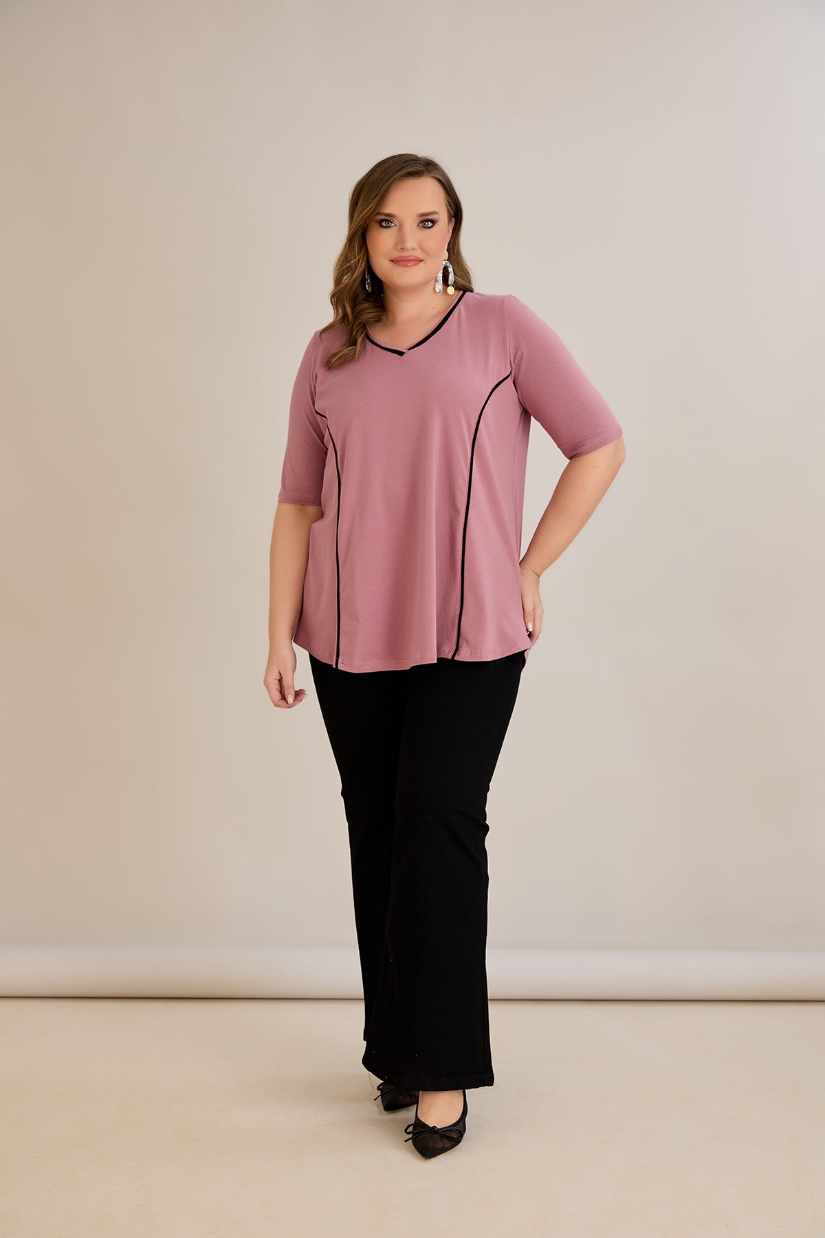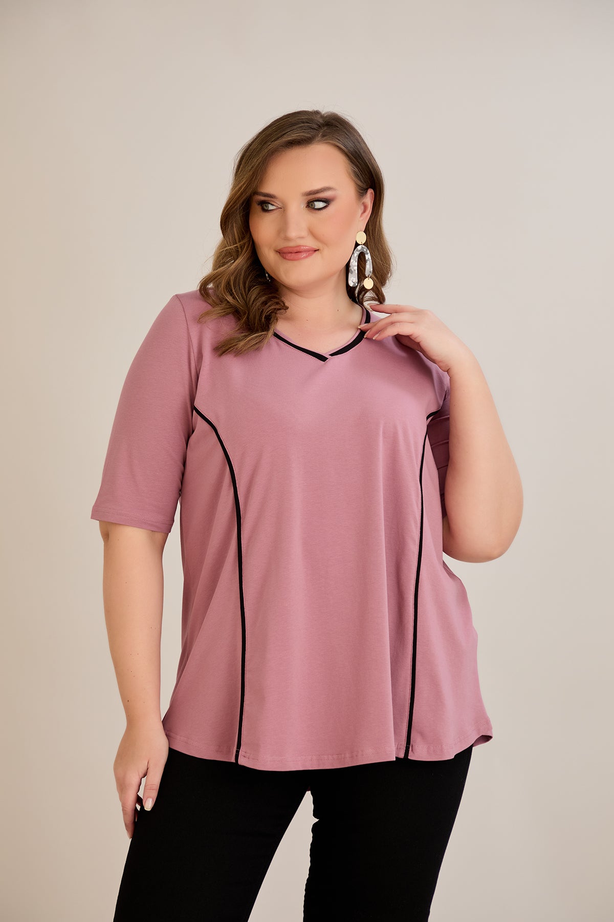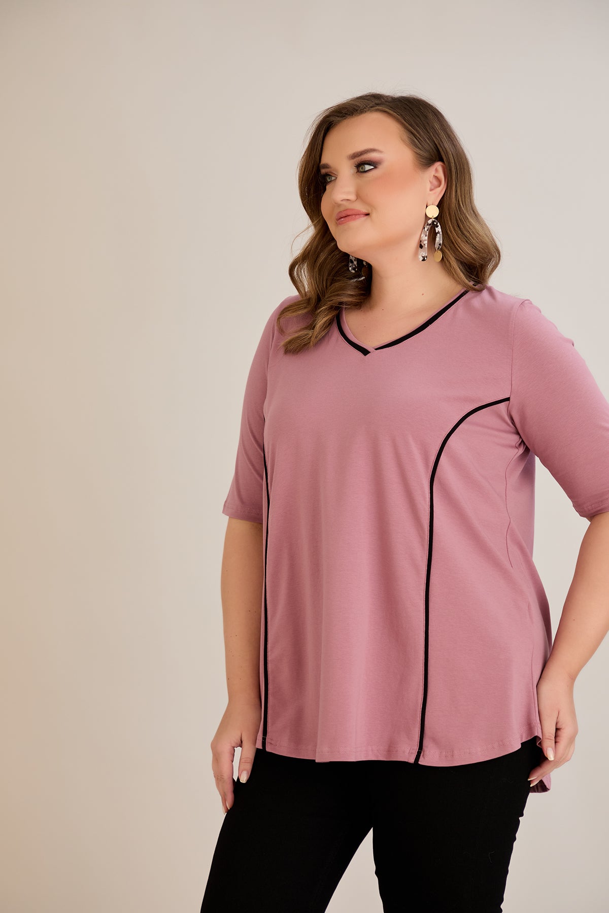 Βαμβακερή μπλούζα σε Α γραμμή σε μεγάλα μεγέθη- Ροζ τριαντάφυλλο