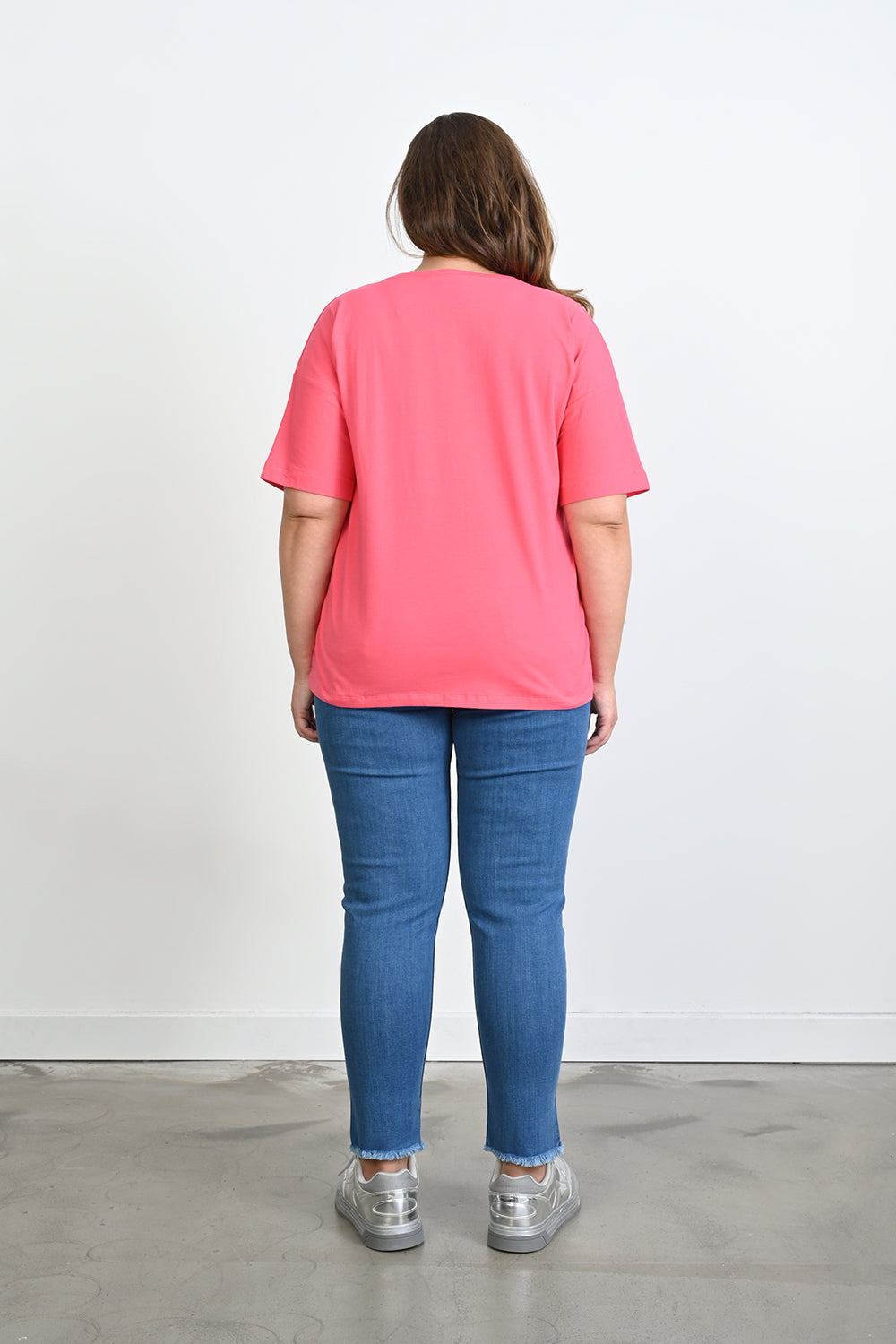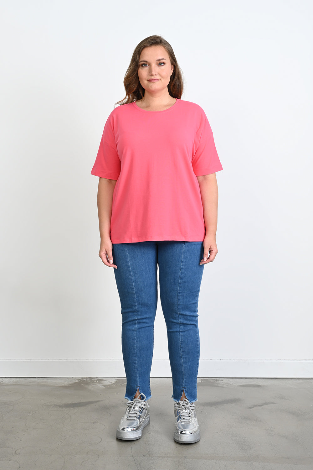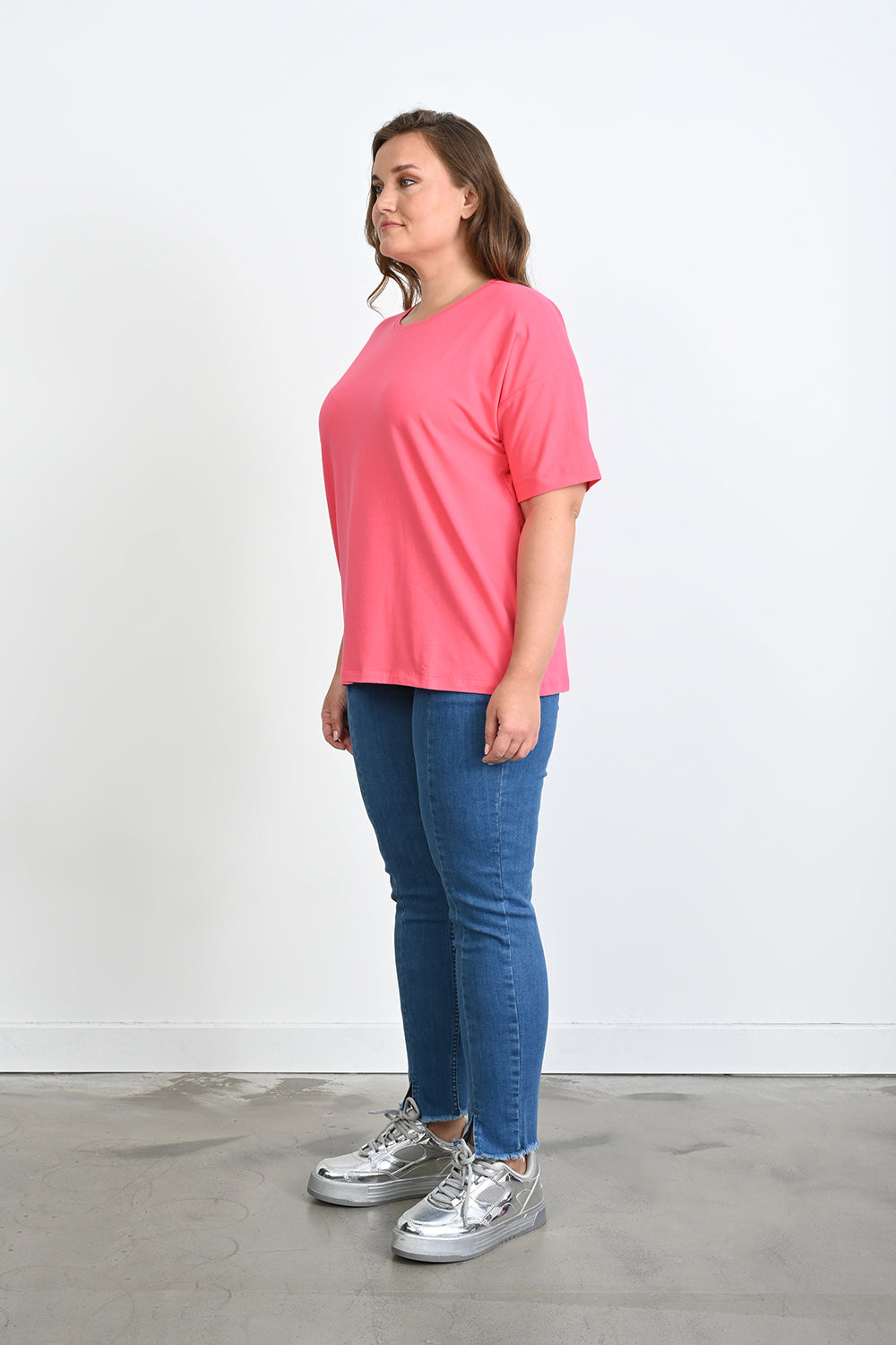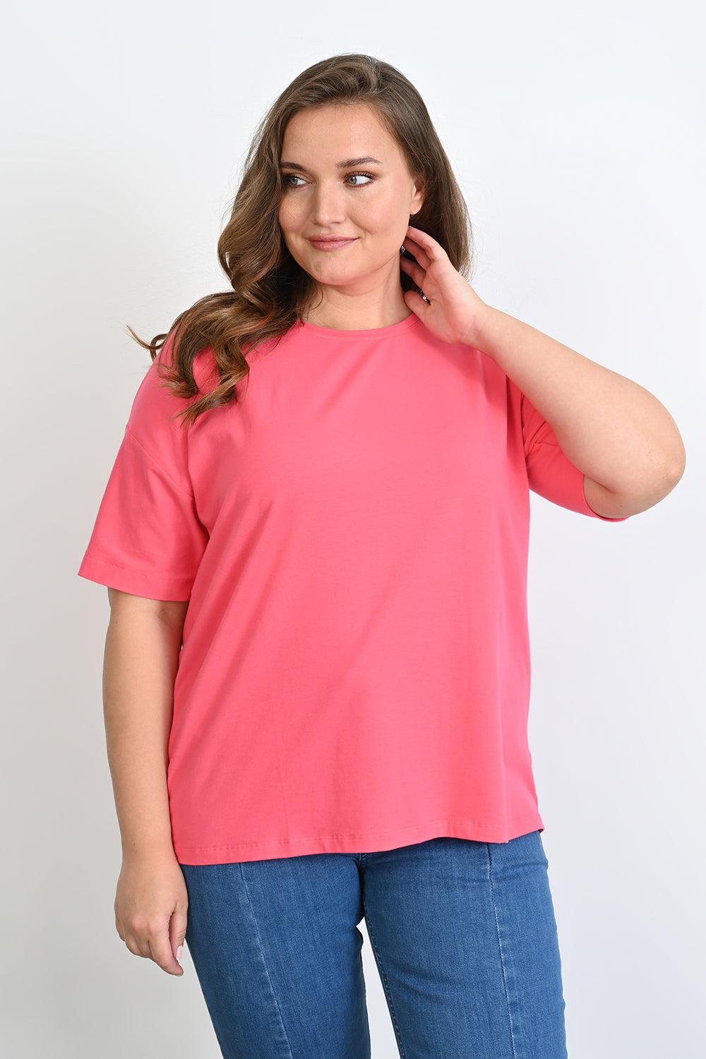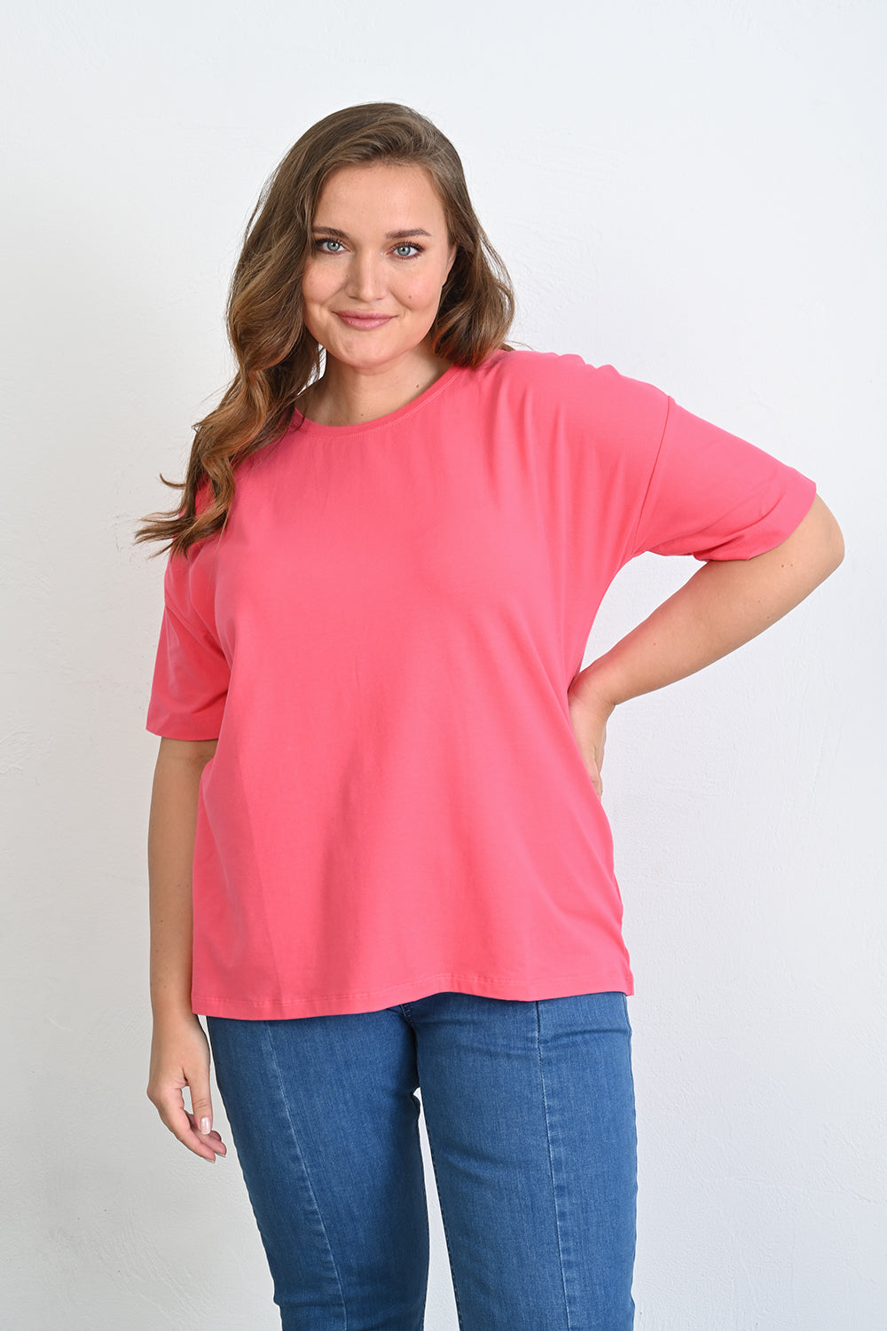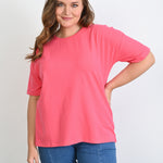 Βαμβακερό μπλουζάκι Basic σε μεγάλα μεγέθη - Κοραλί