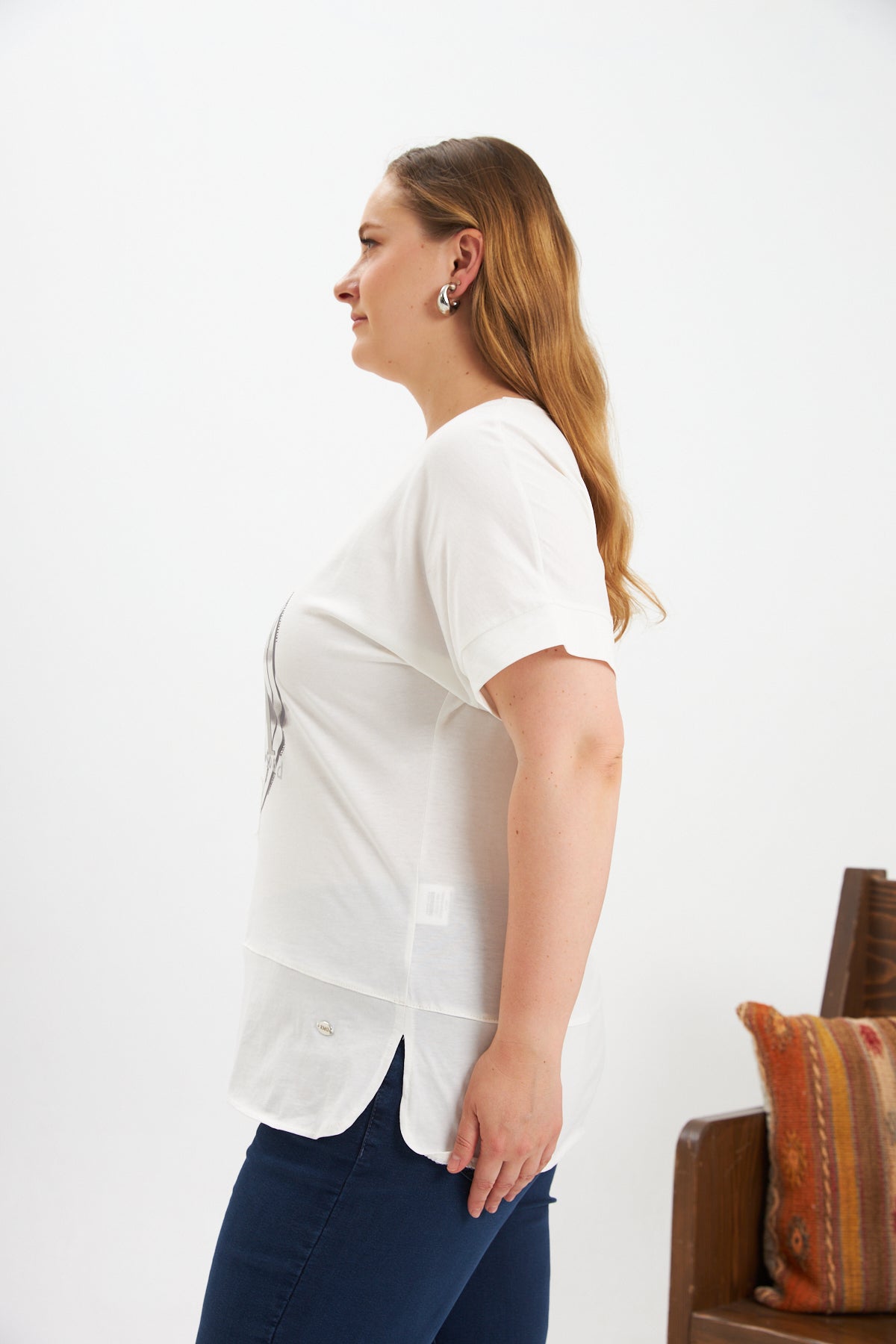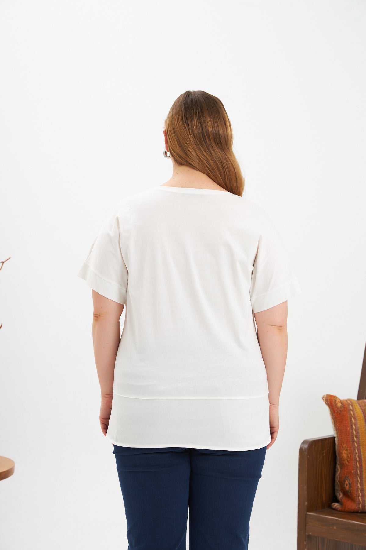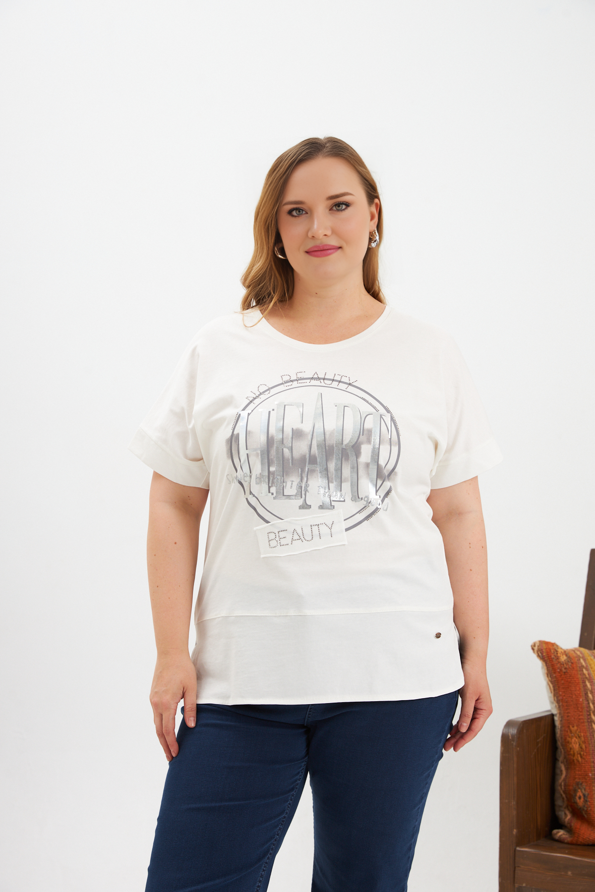 Βαμβακερό μπλουζάκι HEART με στρασάκια - Εκρού