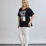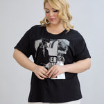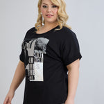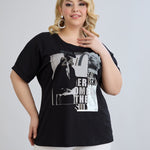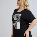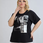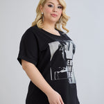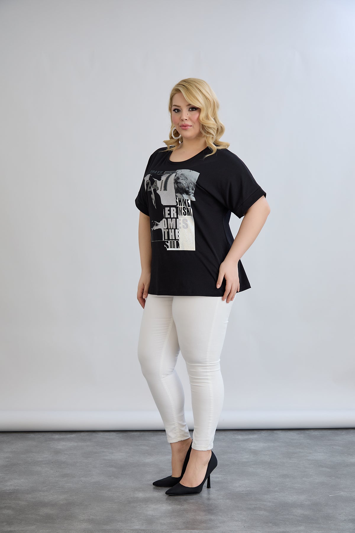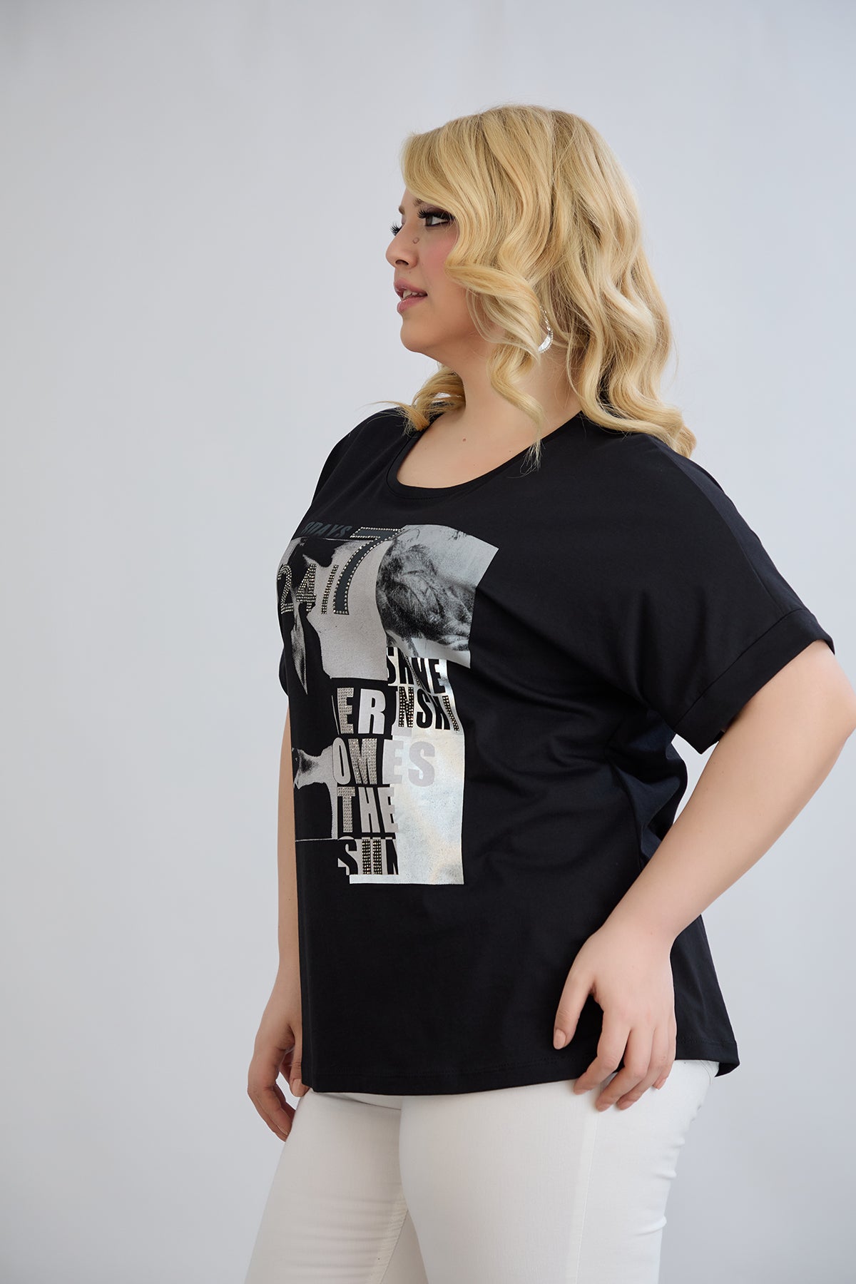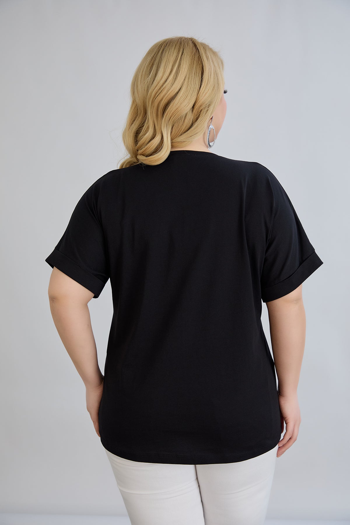 Βαμβακερό μπλουζάκι με στρασάκια και τύπωμα 24/7 σε μαύρο χρώμα σε μεγάλα μεγέθη