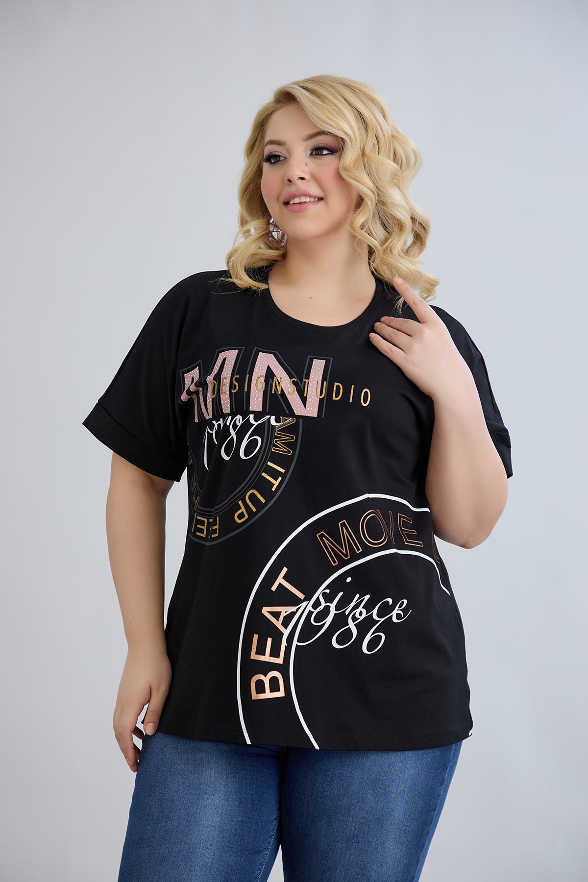 Βαμβακερό μπλουζάκι με στρασάκια και Στάμπα 1986- Μαύρο