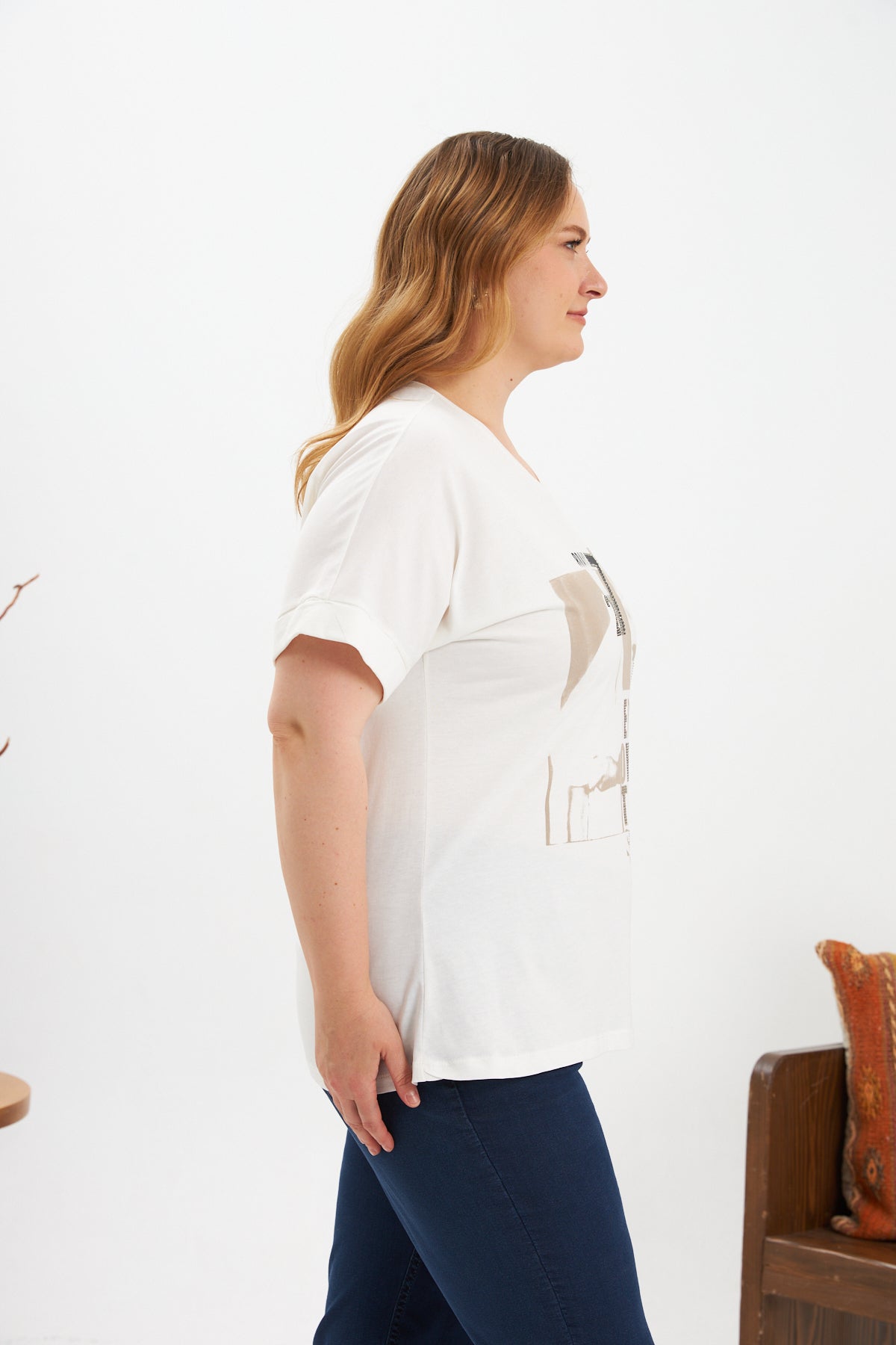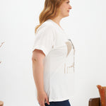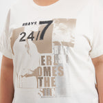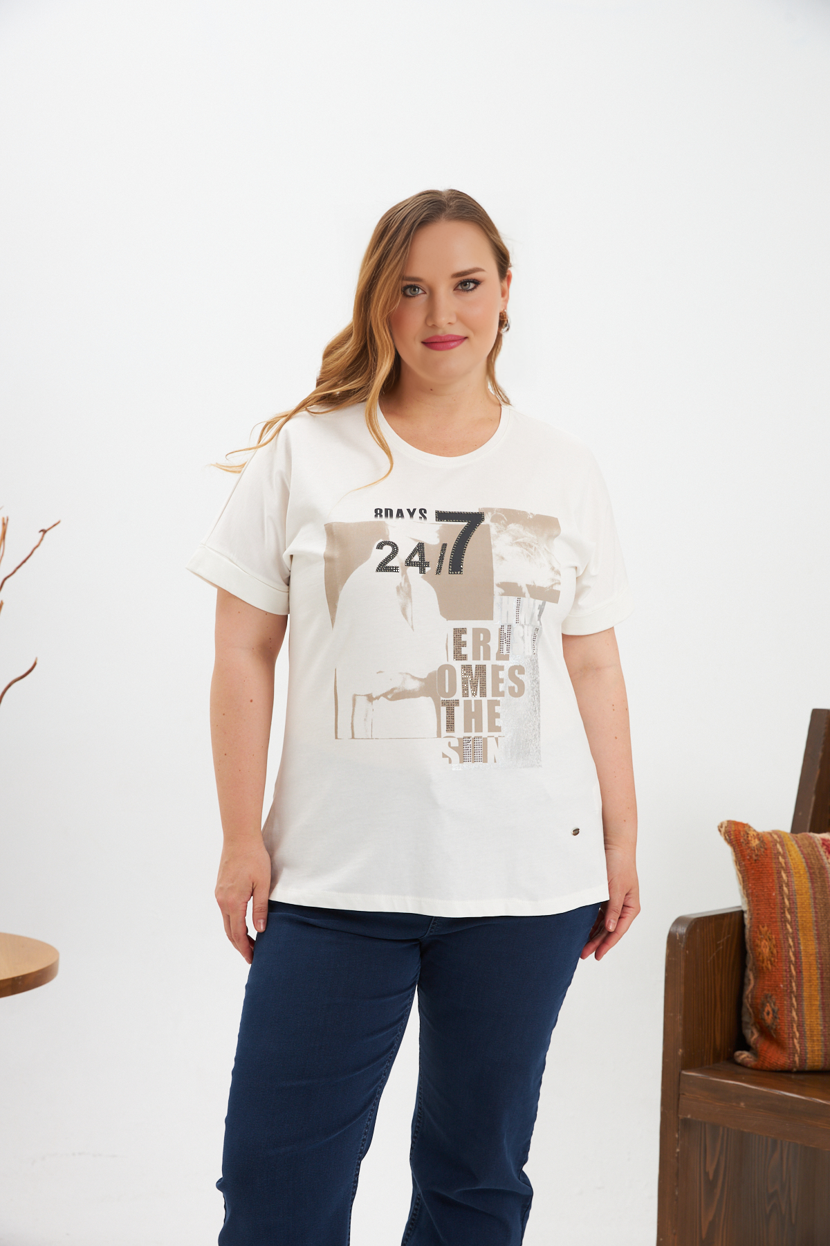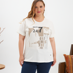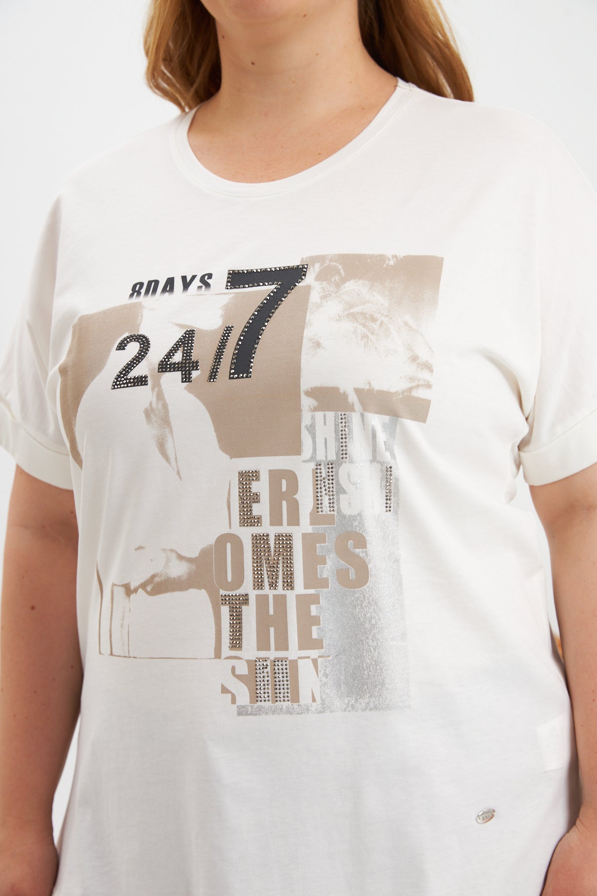 Βαμβακερό μπλουζάκι με στρασάκια και Στάμπα 24/7- Εκρού