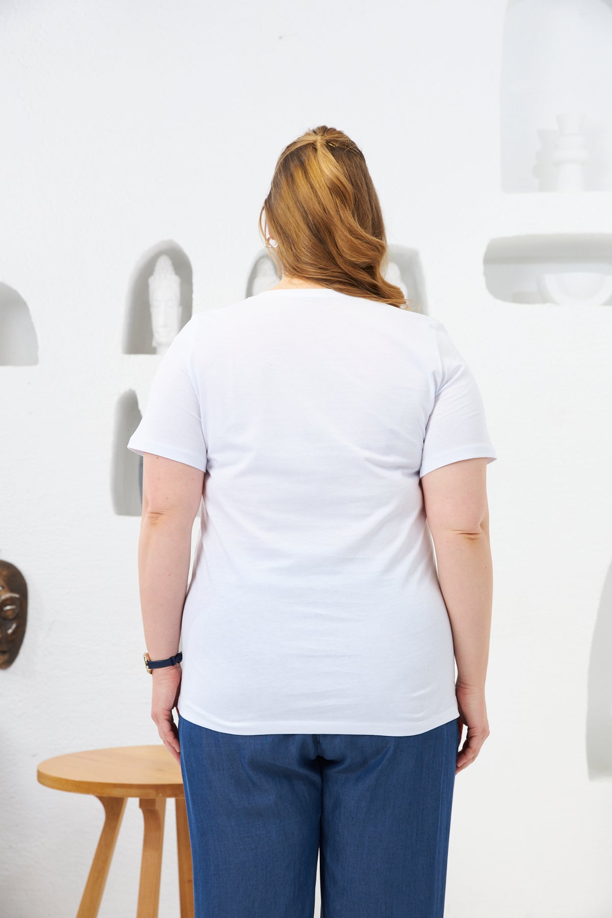 Βαμβακερό μπλουζάκι Cherry με στρασάκια σε Άσπρο χρώμα σε μεγάλα μεγέθη