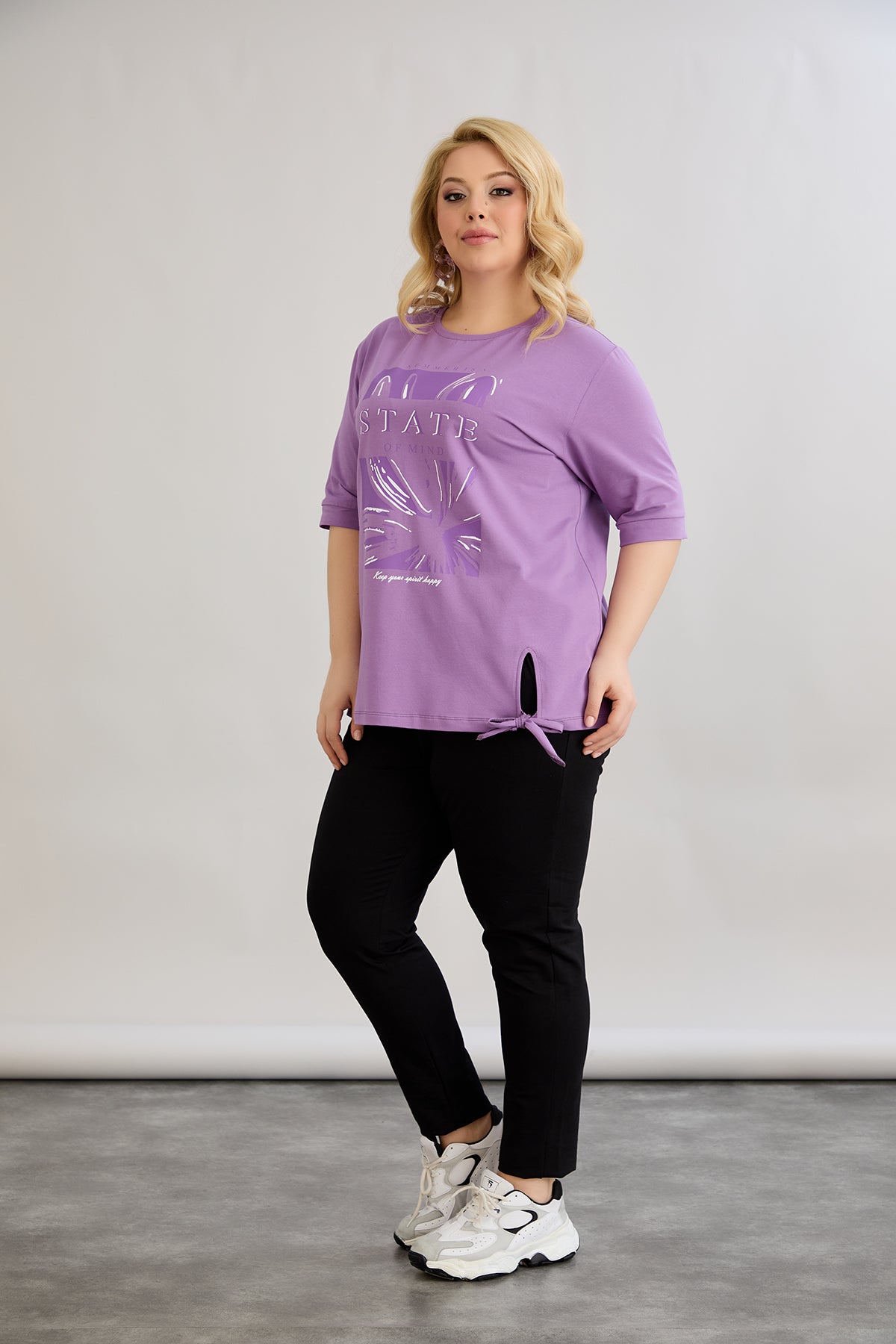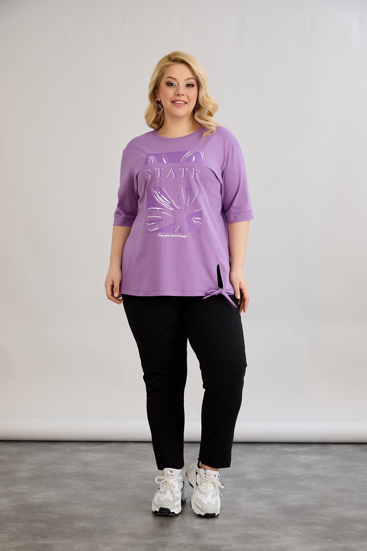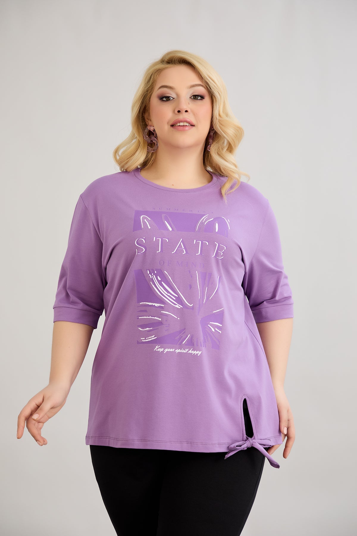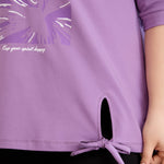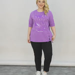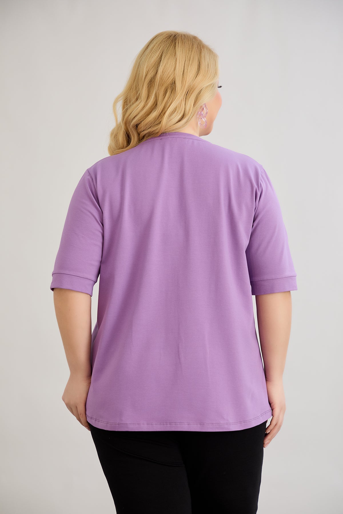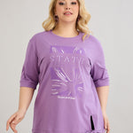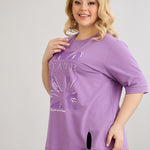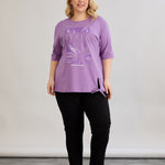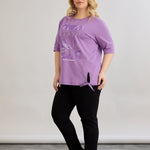 Βαμβακερό μωβ μπλουζάκι με 3/4 μανίκια σε μεγάλα μεγέθη