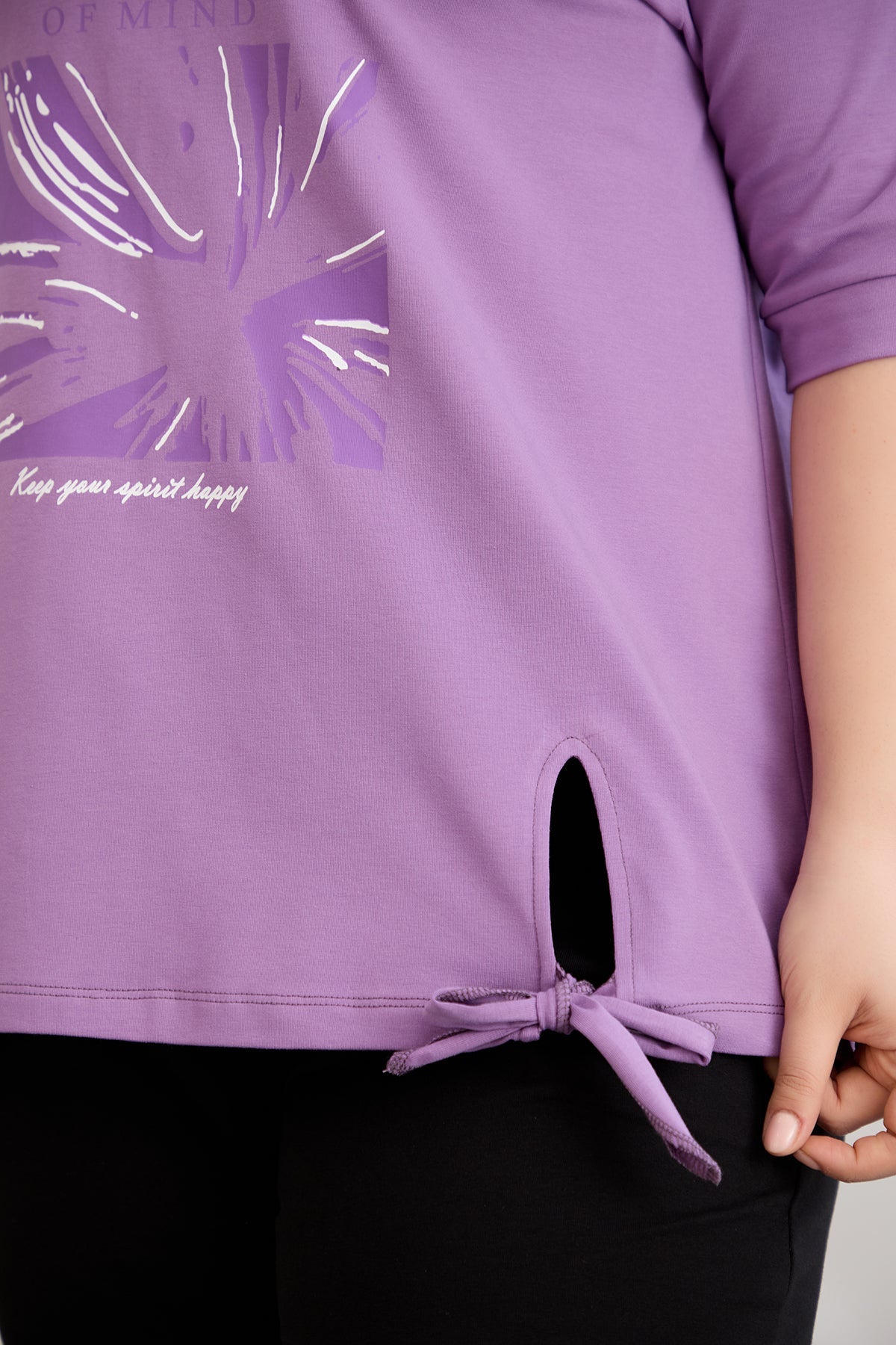 Βαμβακερό μωβ μπλουζάκι με 3/4 μανίκια