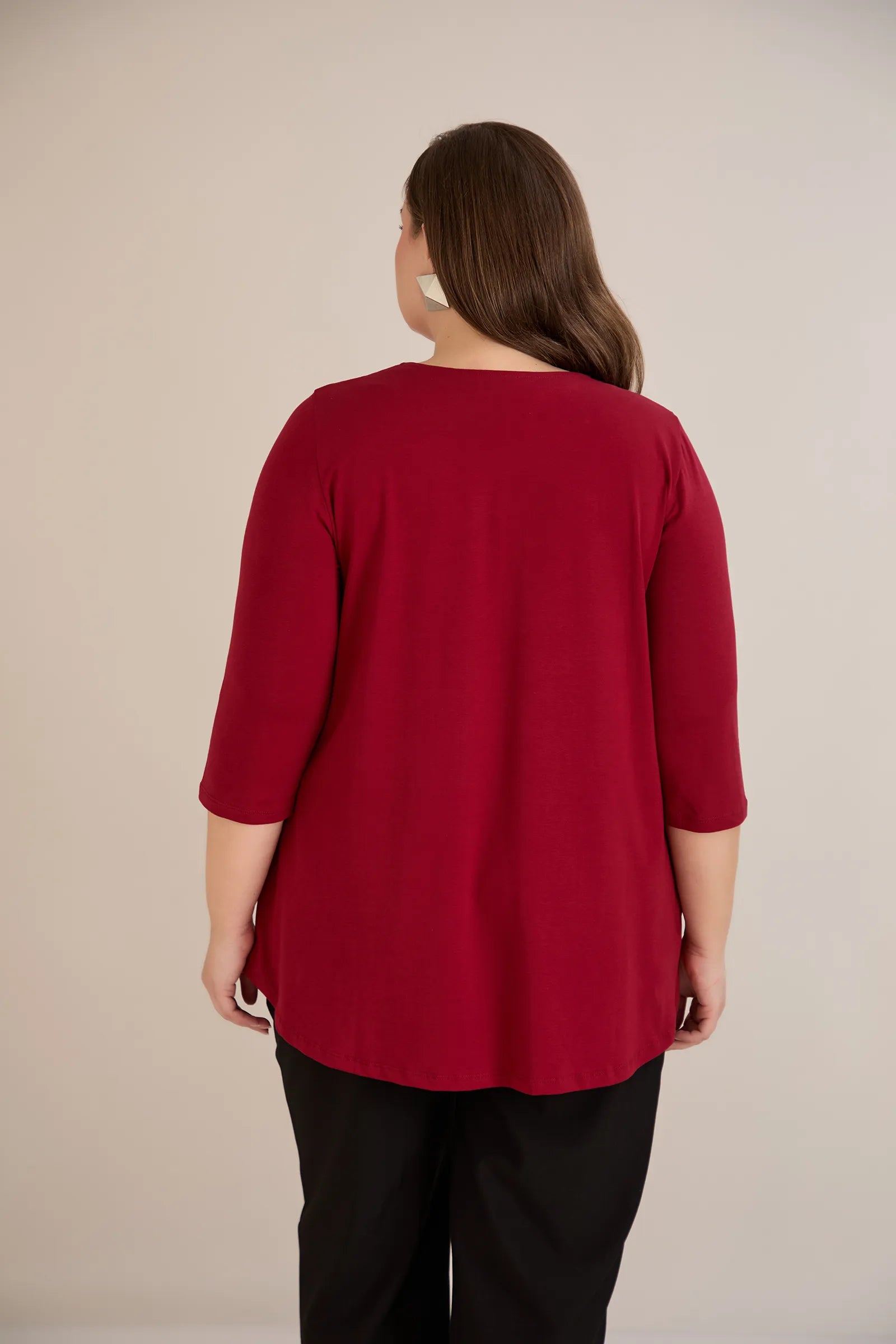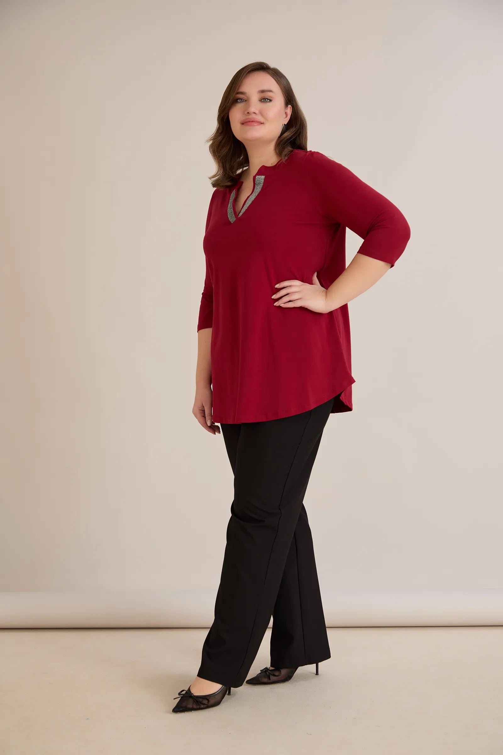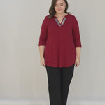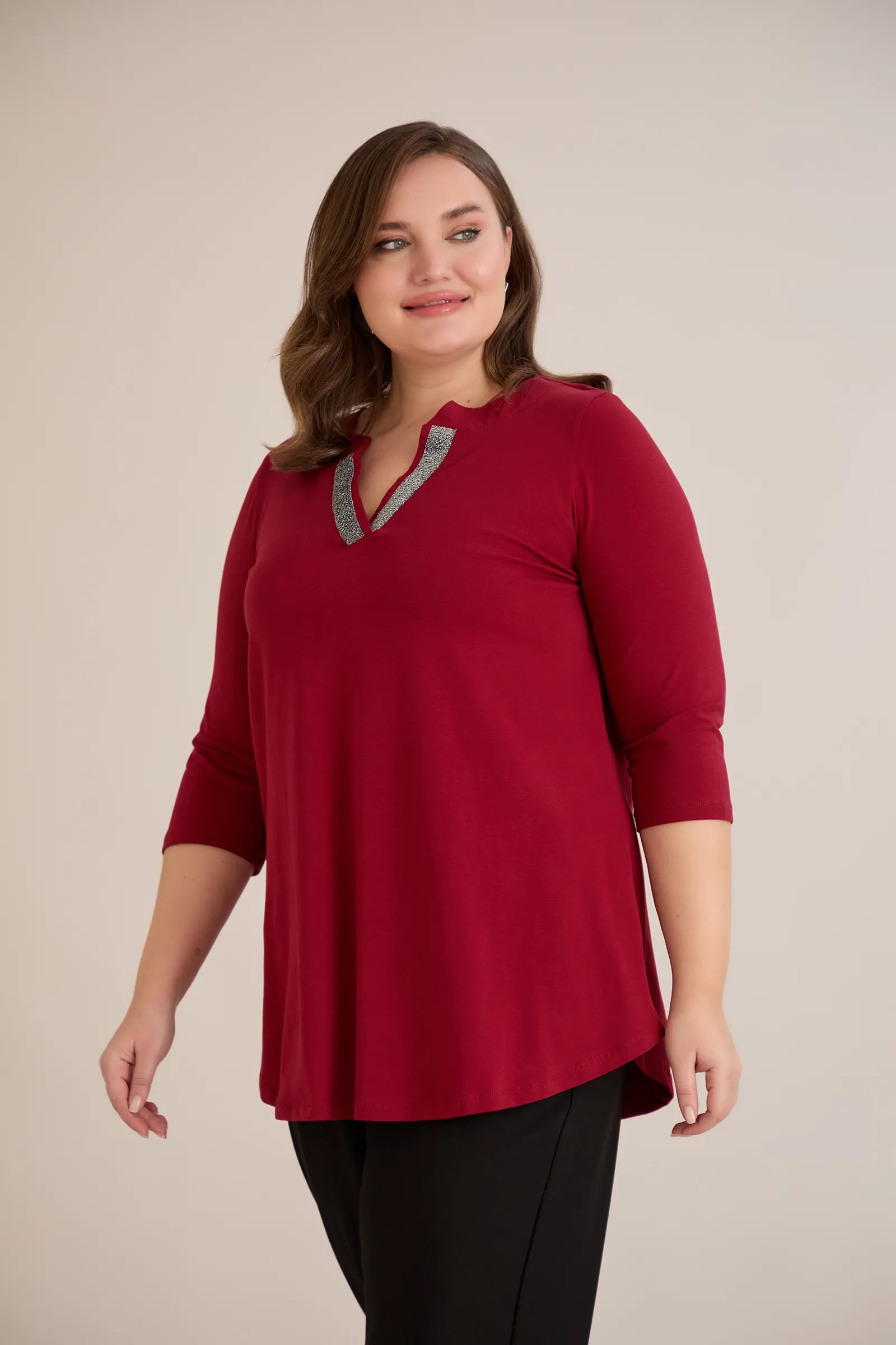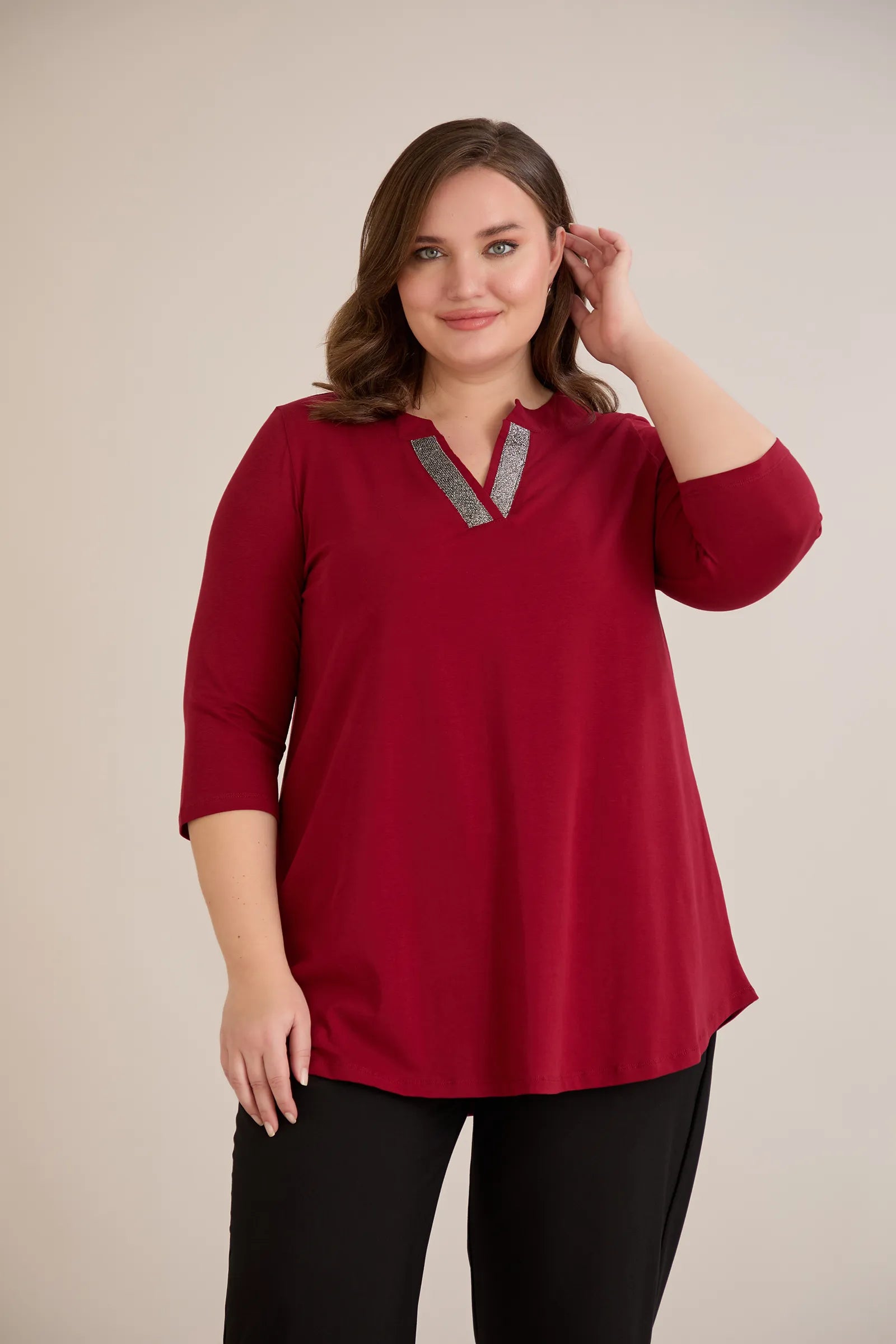 Βαμβακερό τουνίκ με λαμπερό ντεκολτέ σε Μπορντό χρώμα σε μεγάλα μεγέθη.