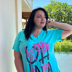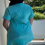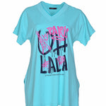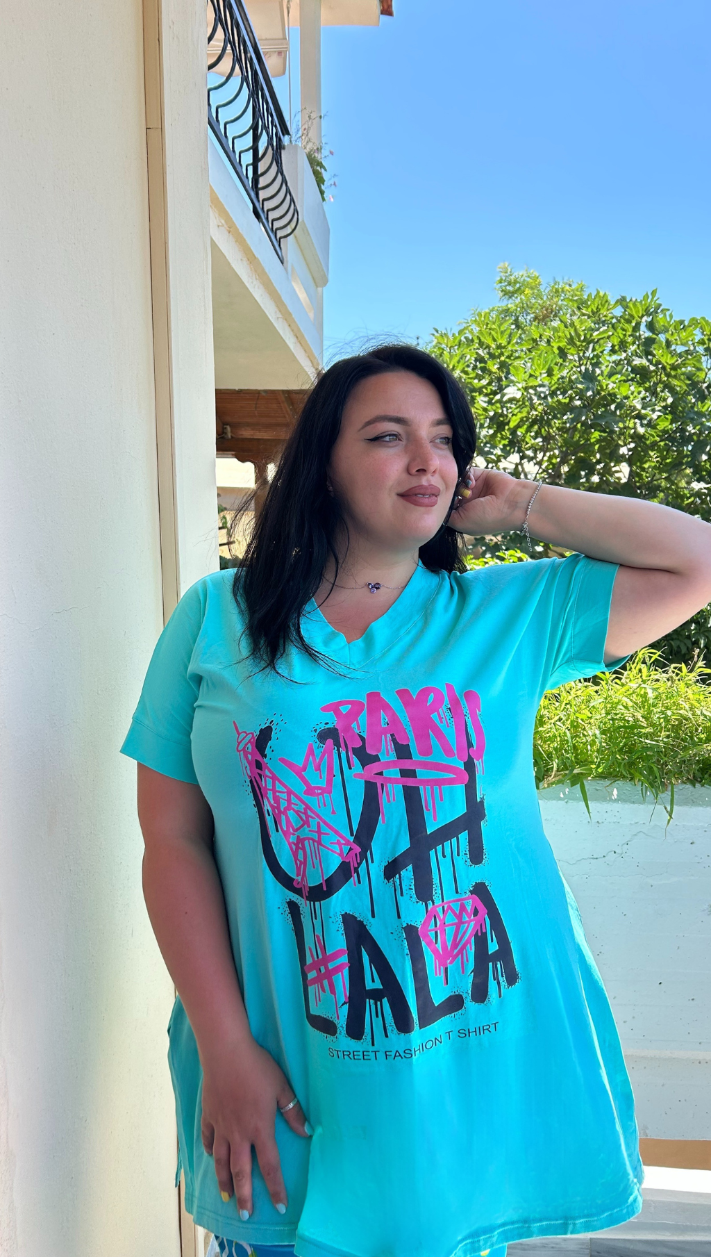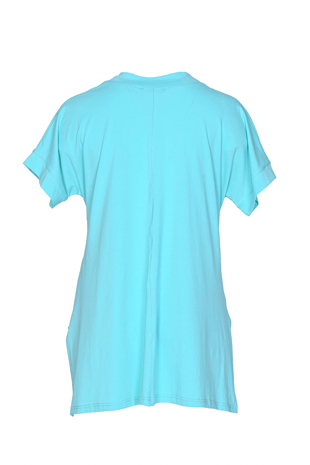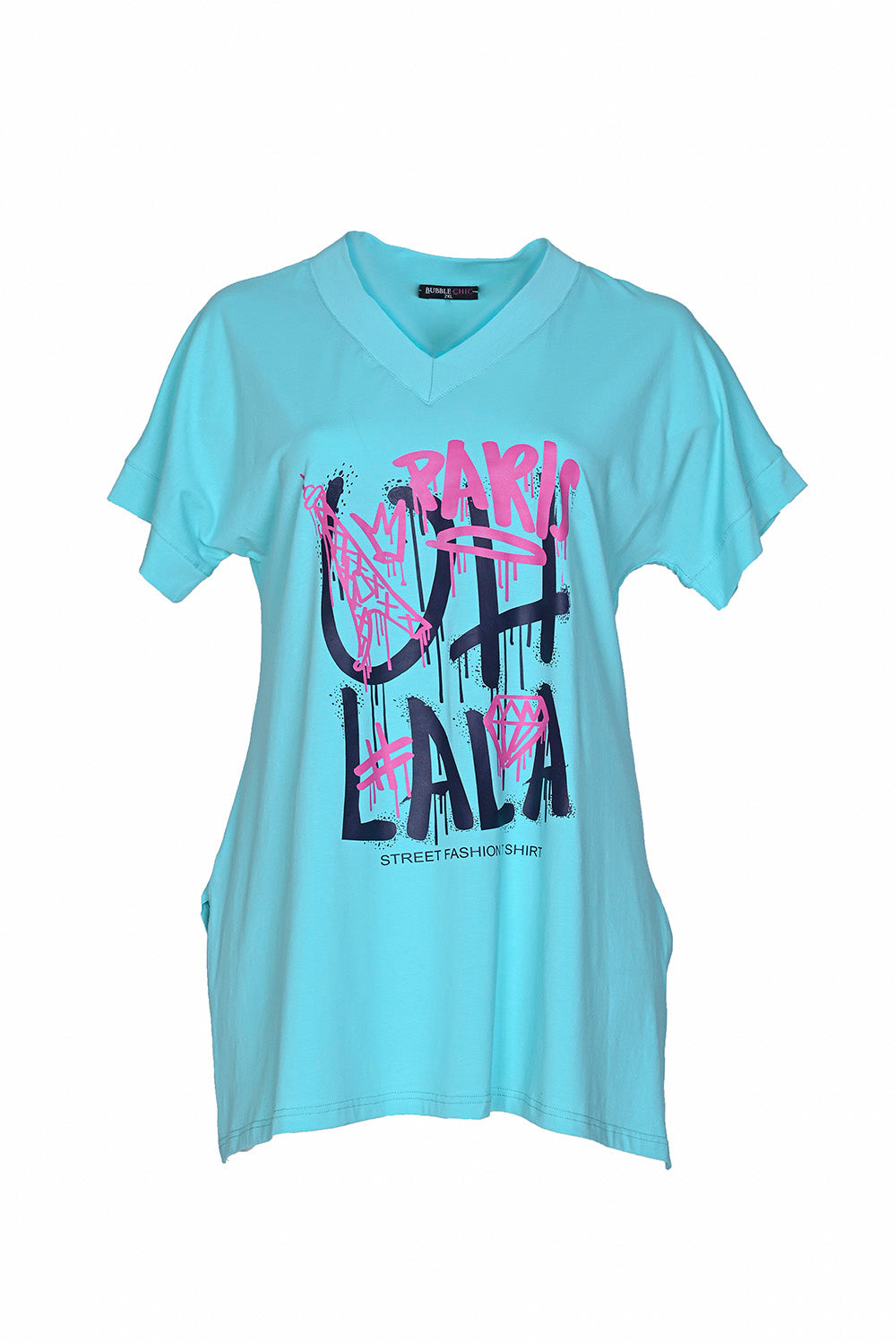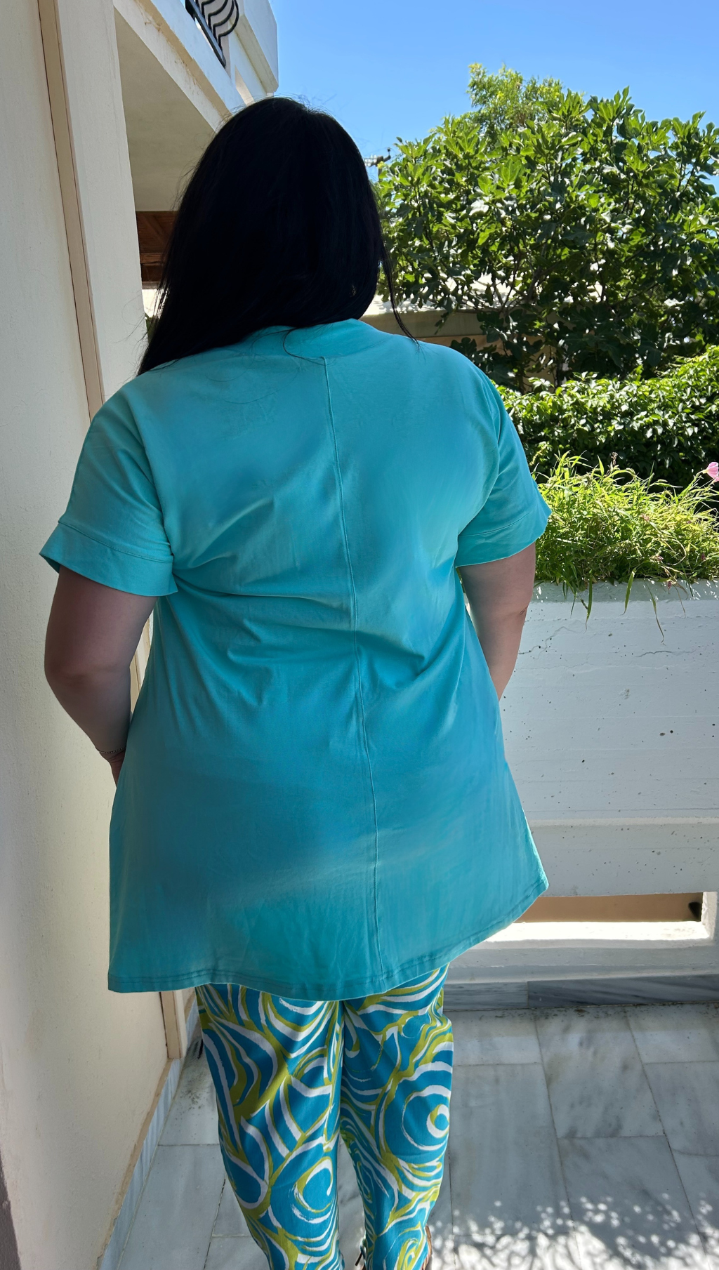 Βαμβακερό τουνίκ με V λαιμόκοψη και τύπωμα- Τιρκουάζ