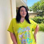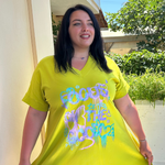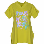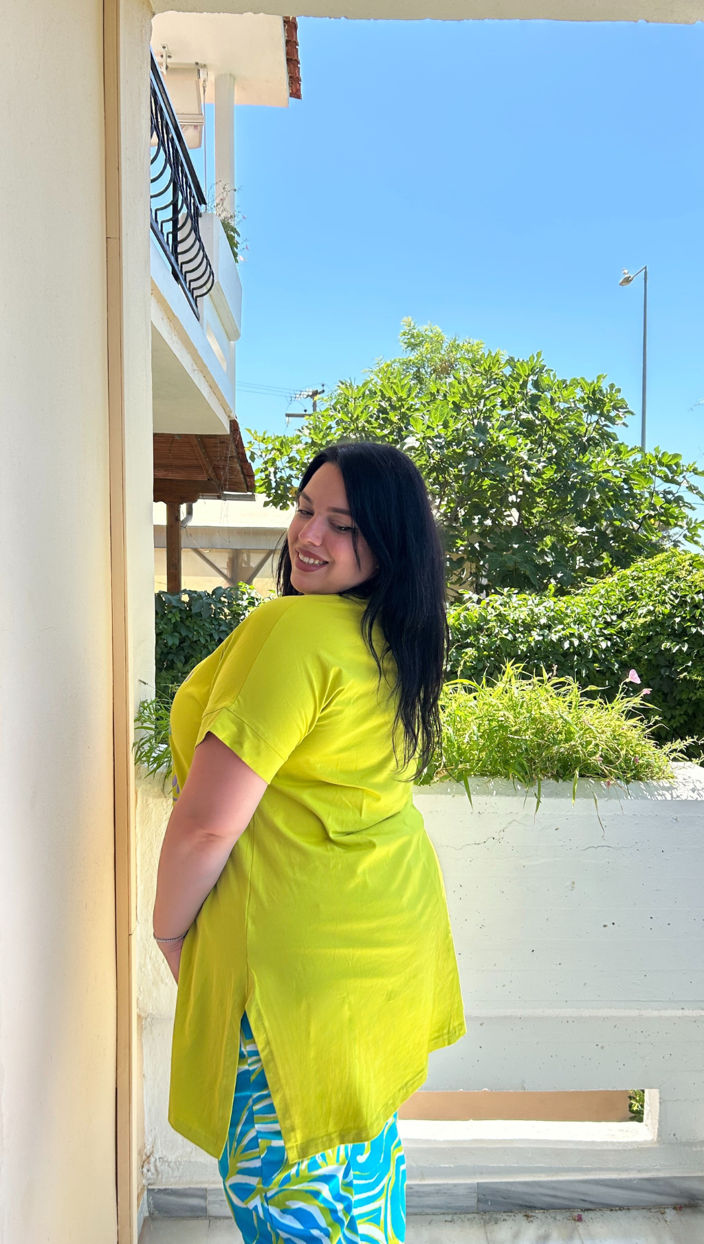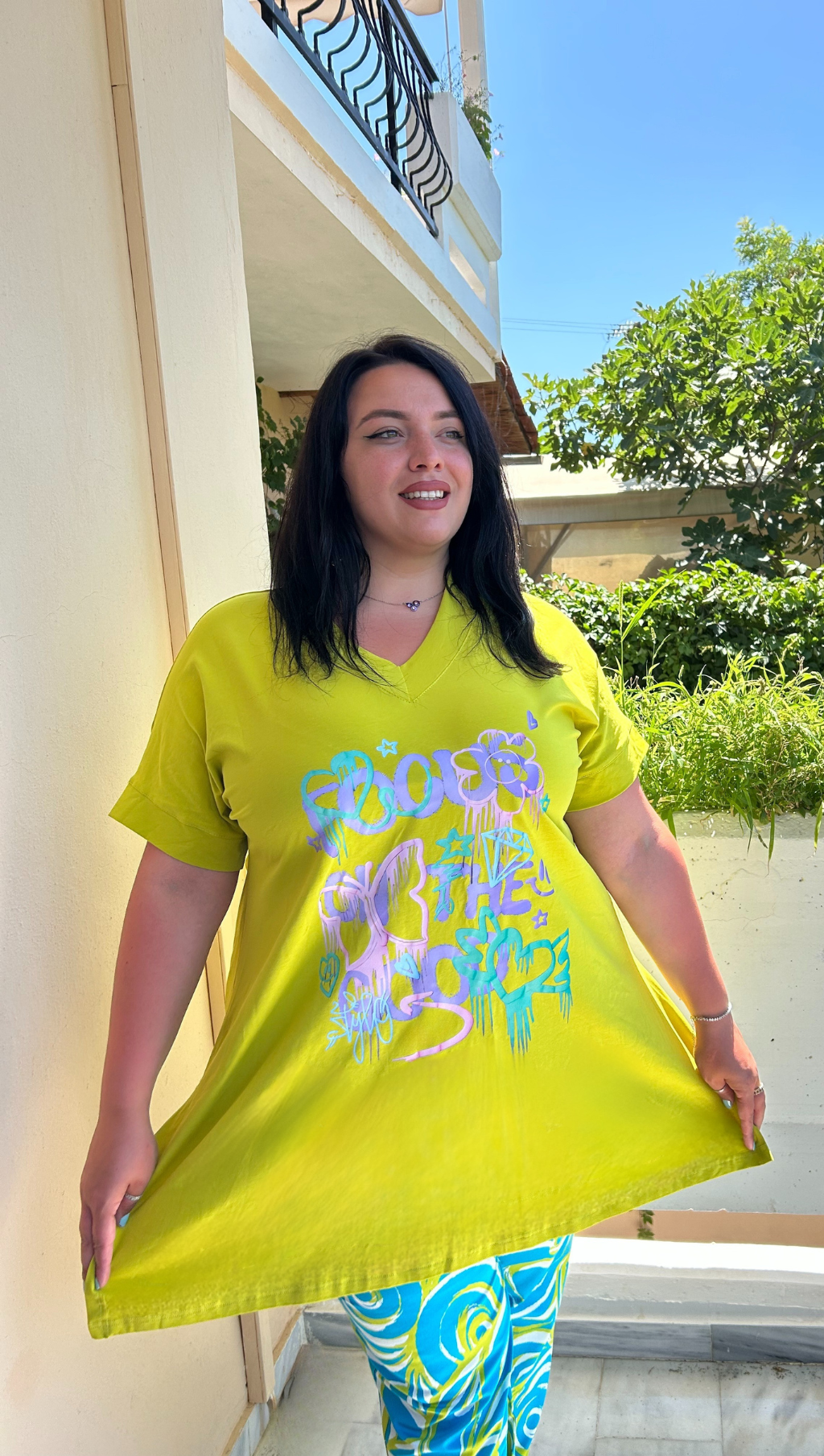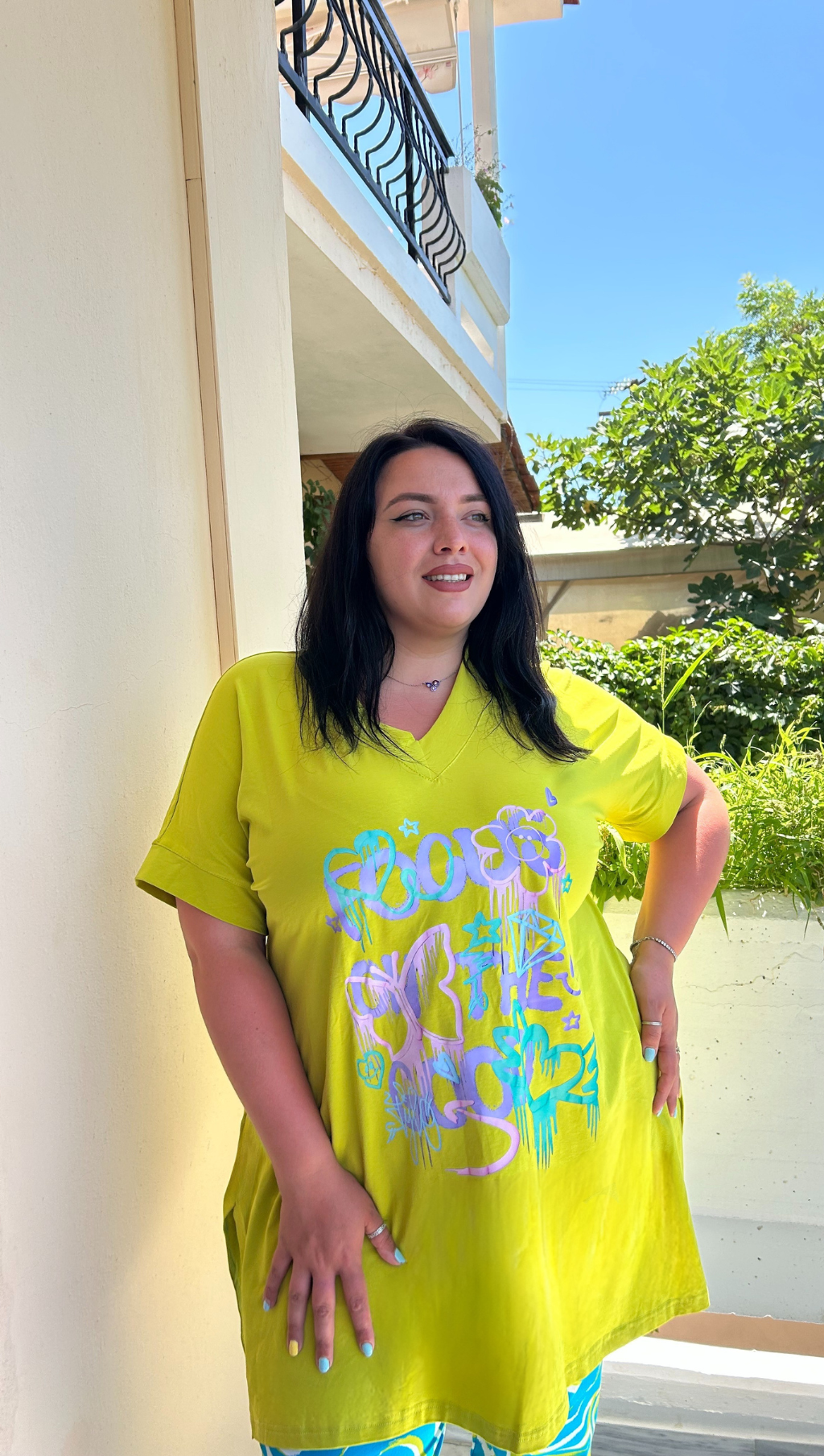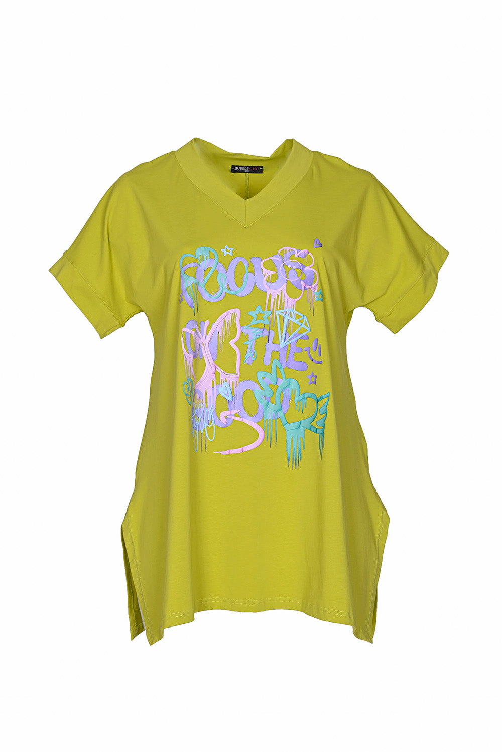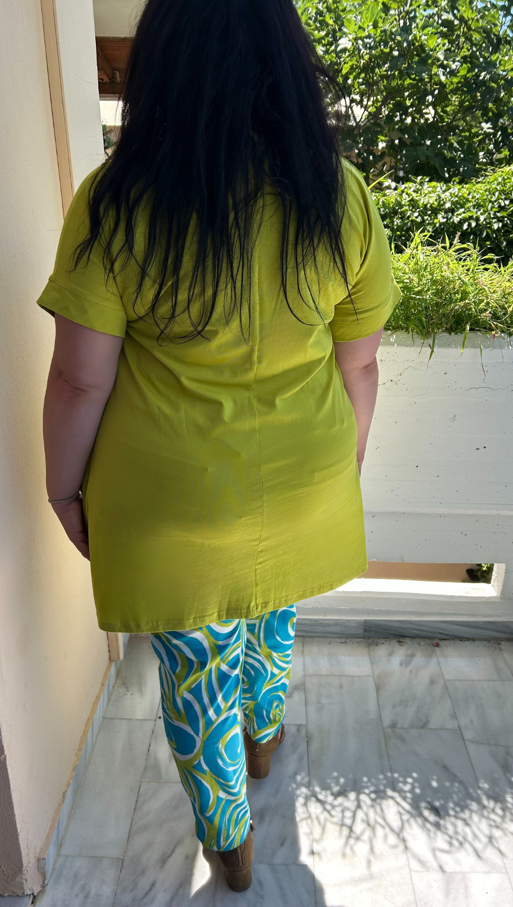 Βαμβακερό τουνίκ με V λαιμόκοψη και τύπωμα- Πράσινο μήλο