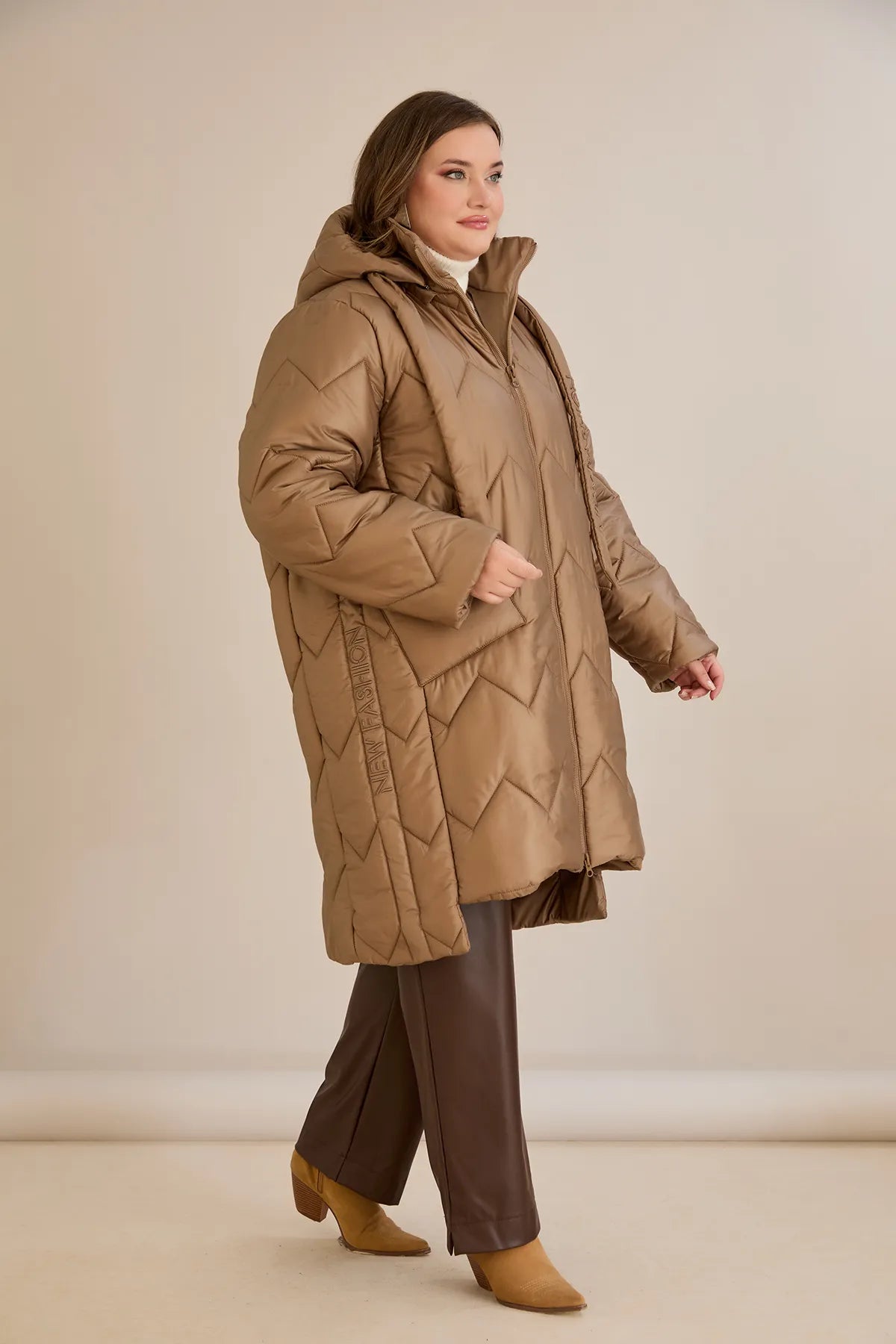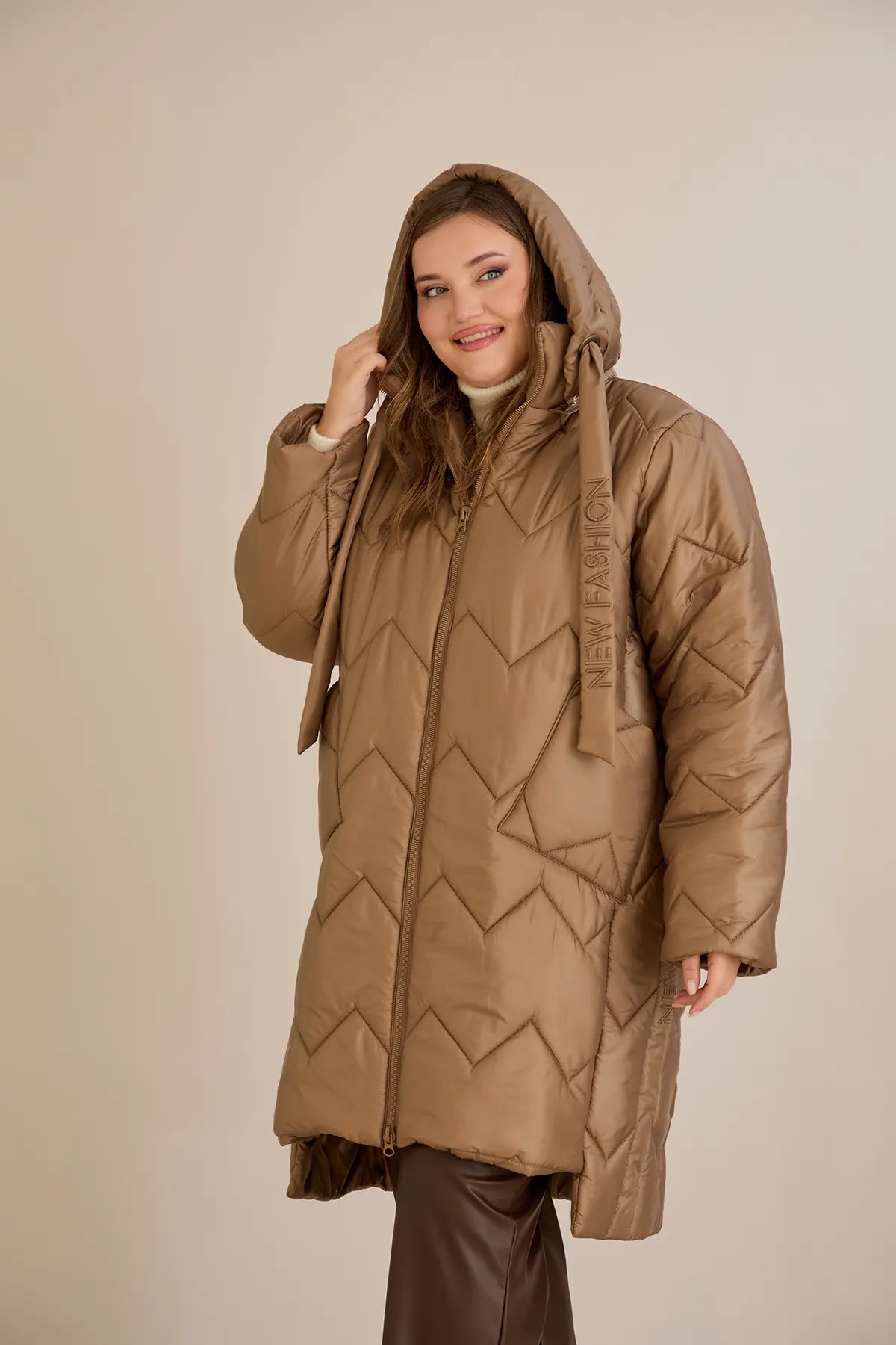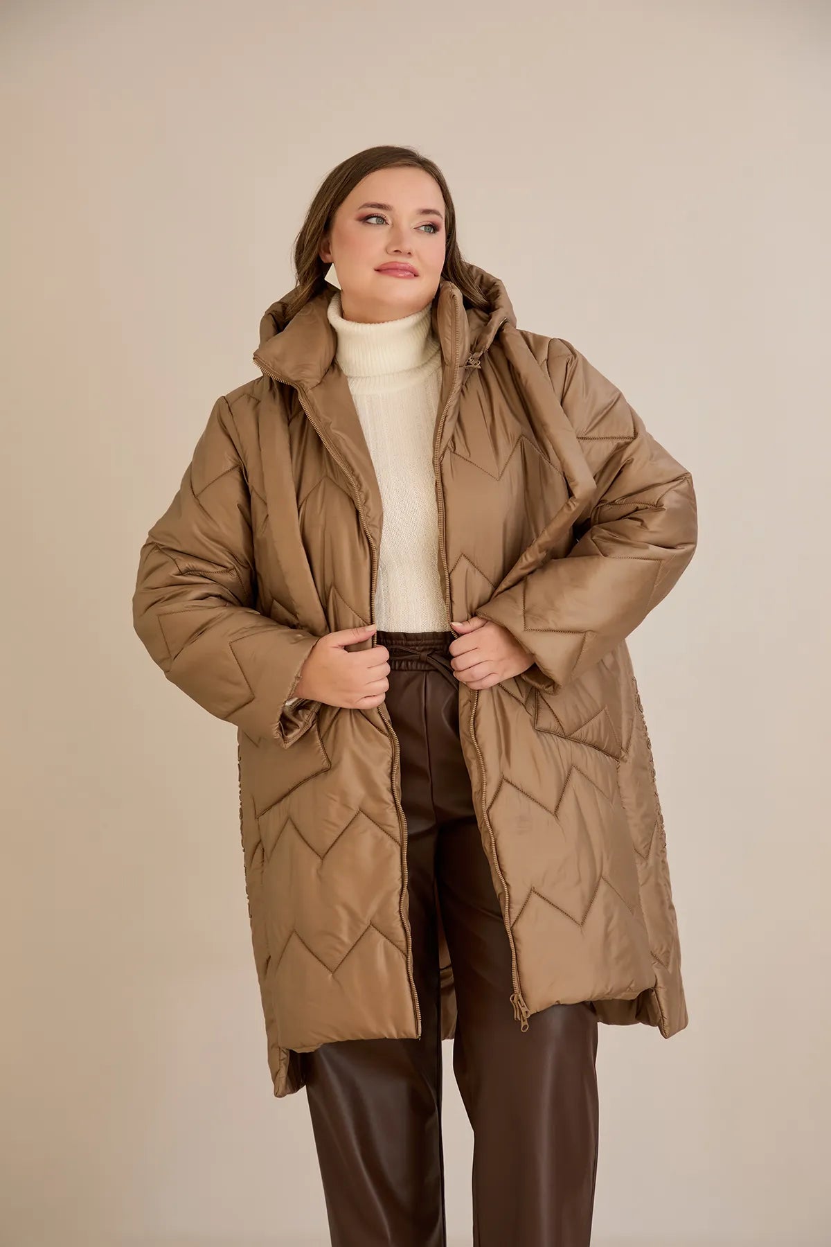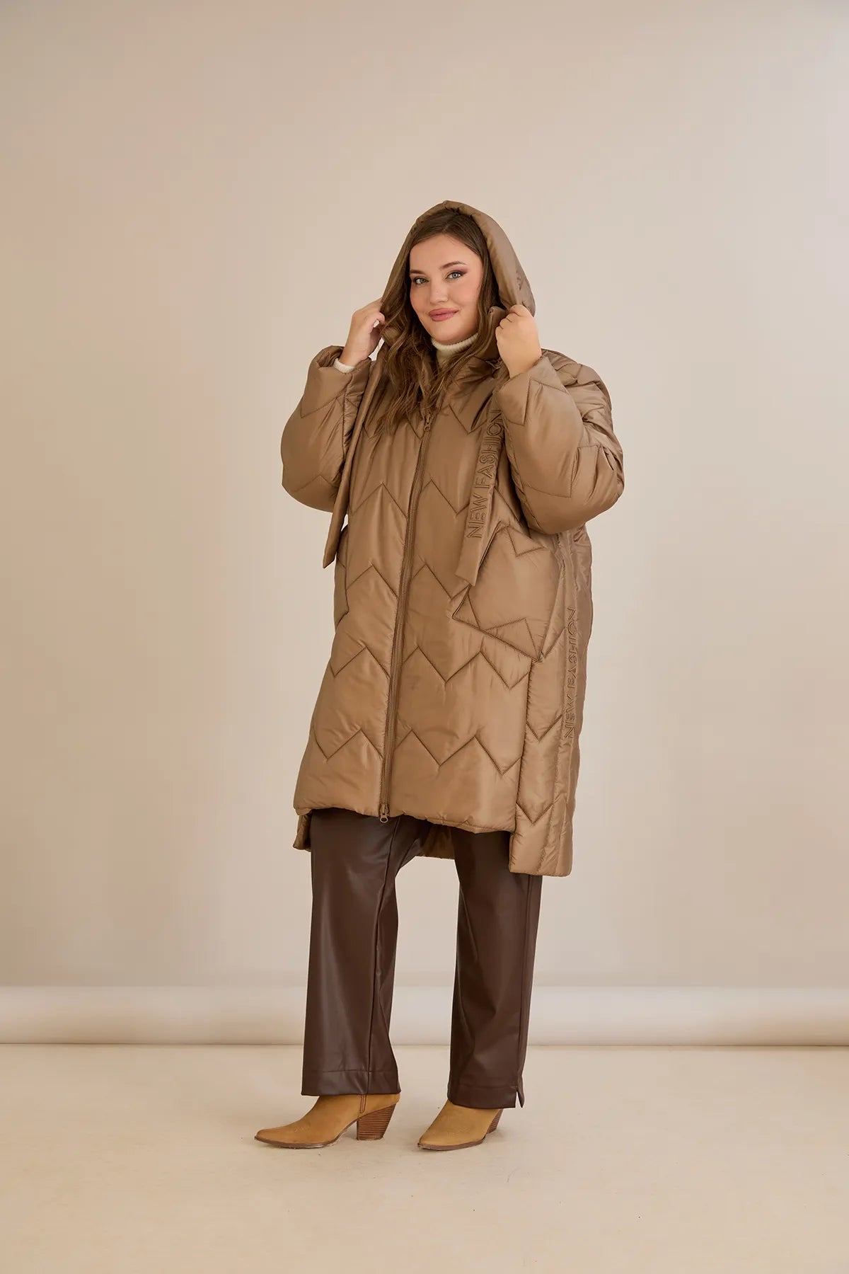 Γυναικείο μπουφάν με διπλό φερμουάρ και αποσπώμενη κουκούλα σε Καραμελέ χρώμα σε Μεγάλα Μεγέθη