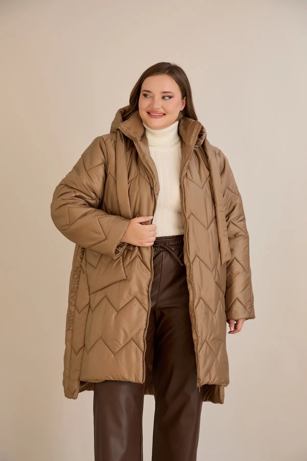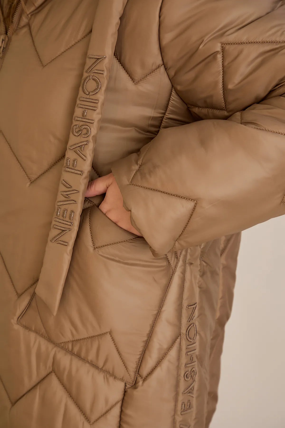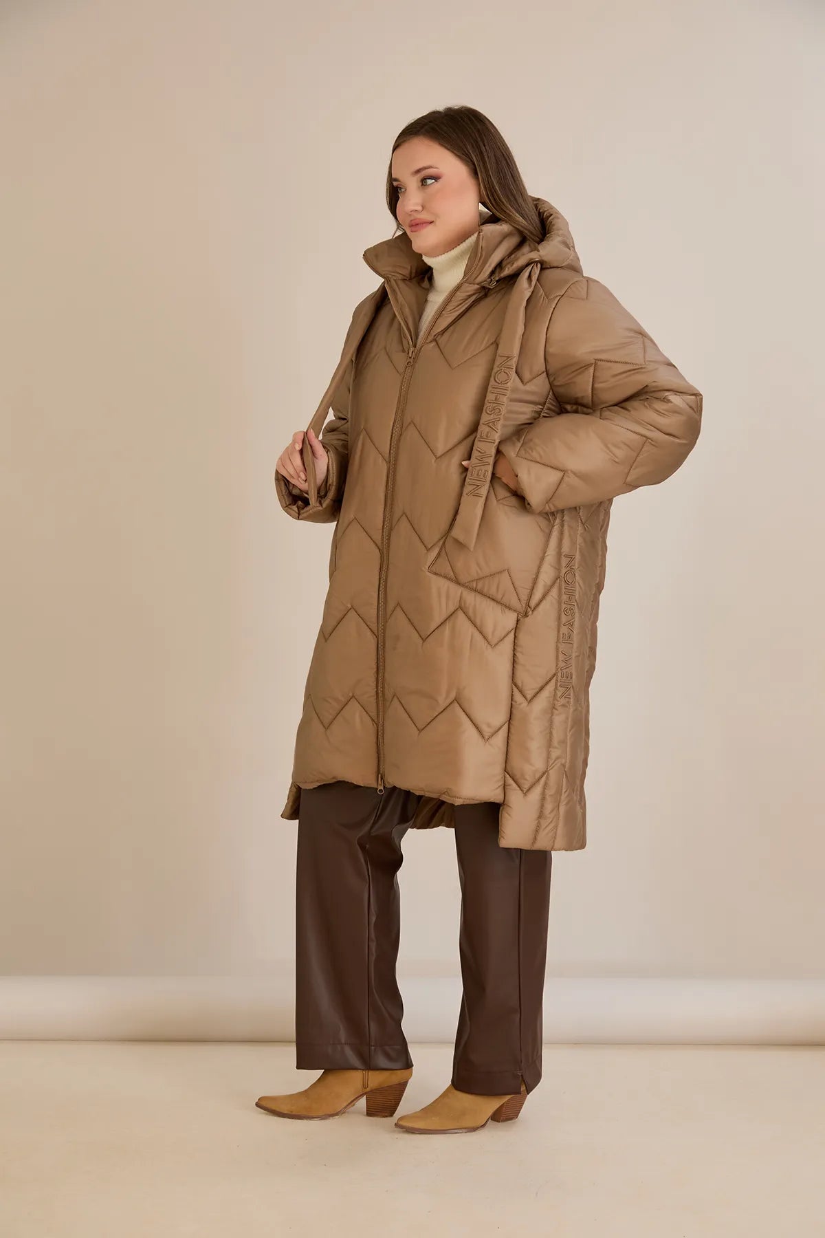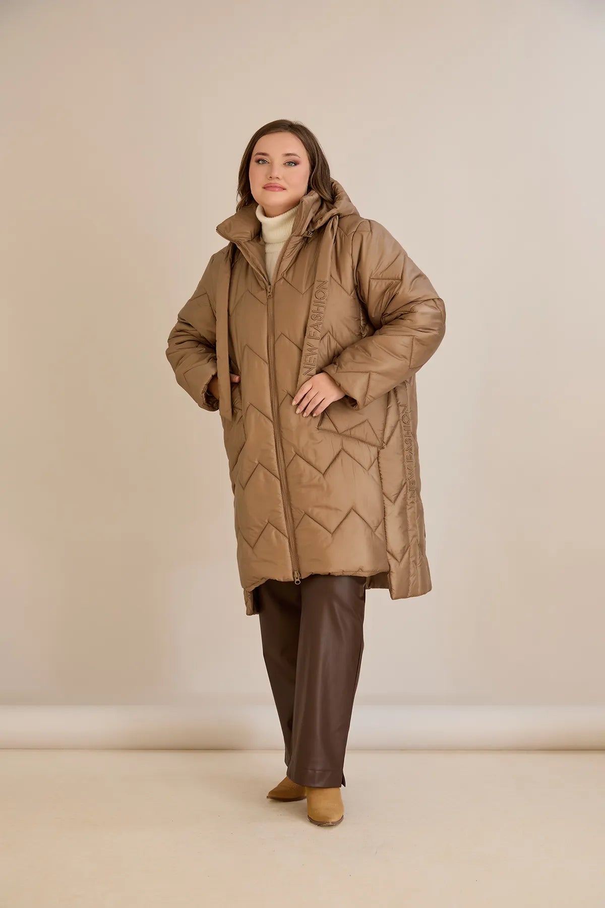 Γυναικείο μπουφάν με διπλό φερμουάρ και αποσπώμενη κουκούλα σε Καραμελέ χρώμα σε Μεγάλα Μεγέθη