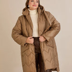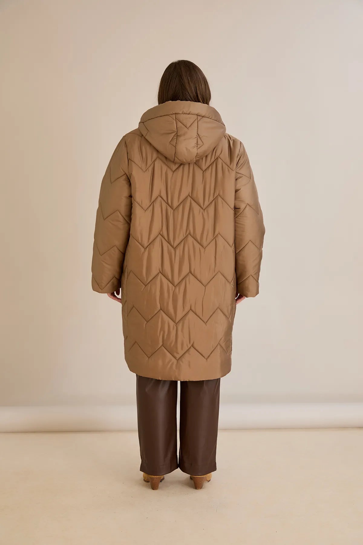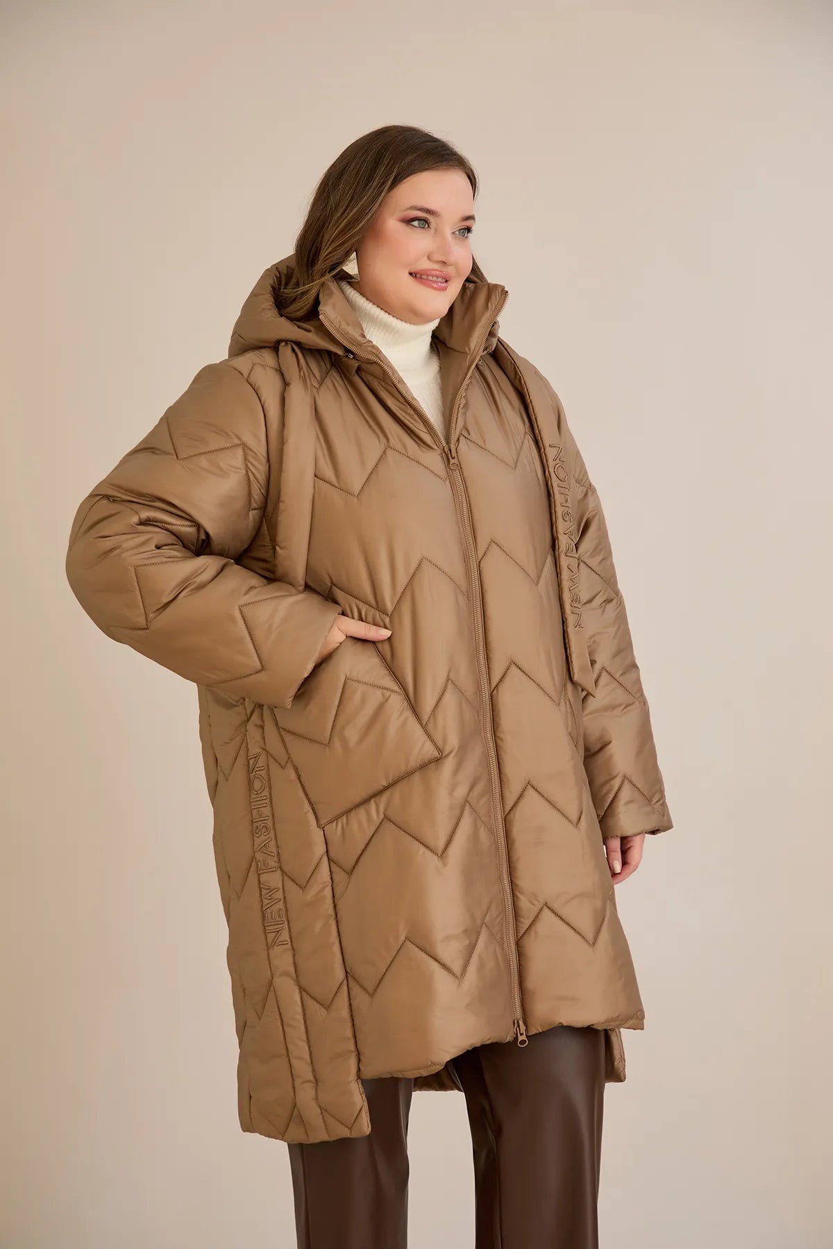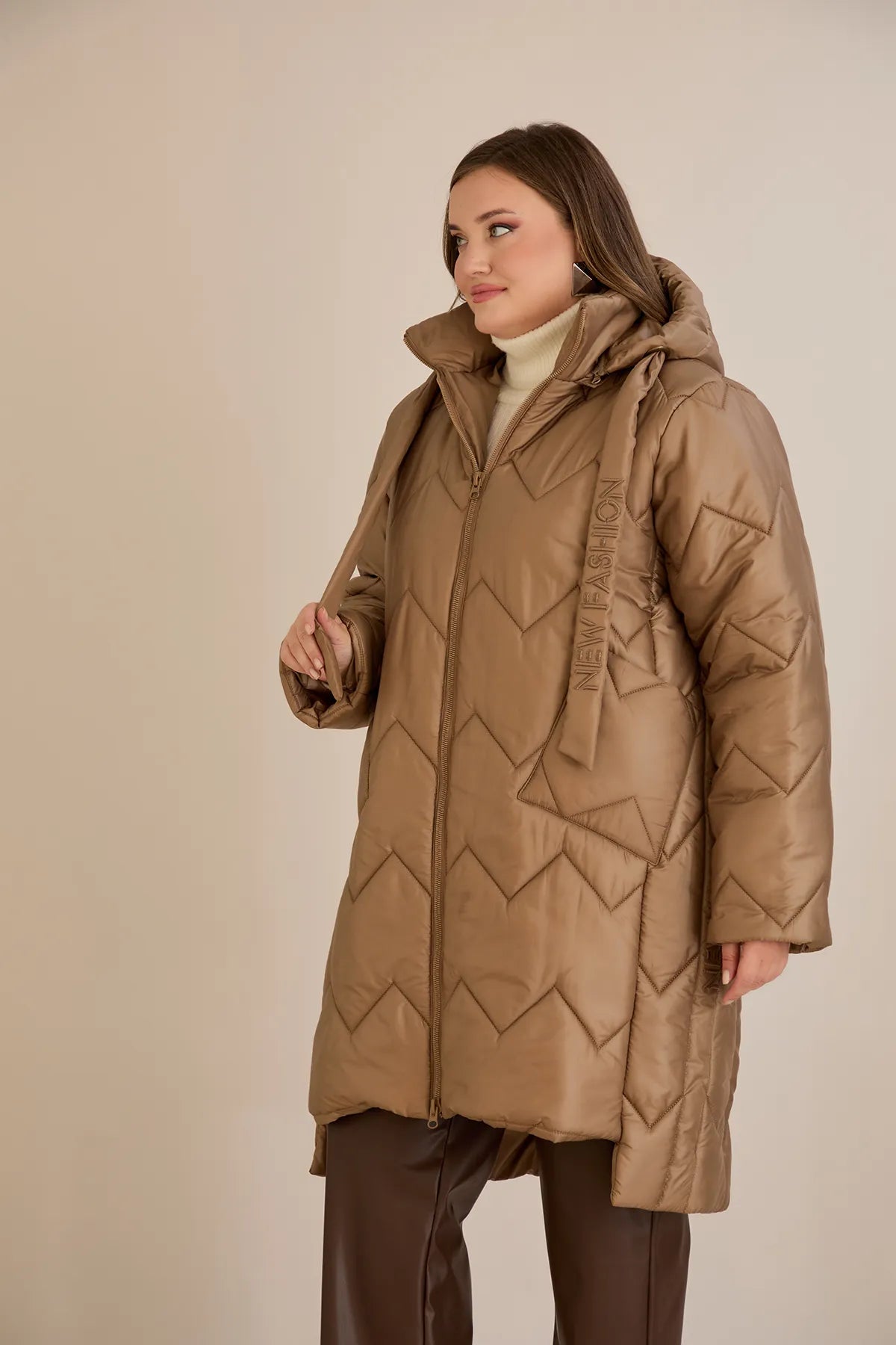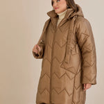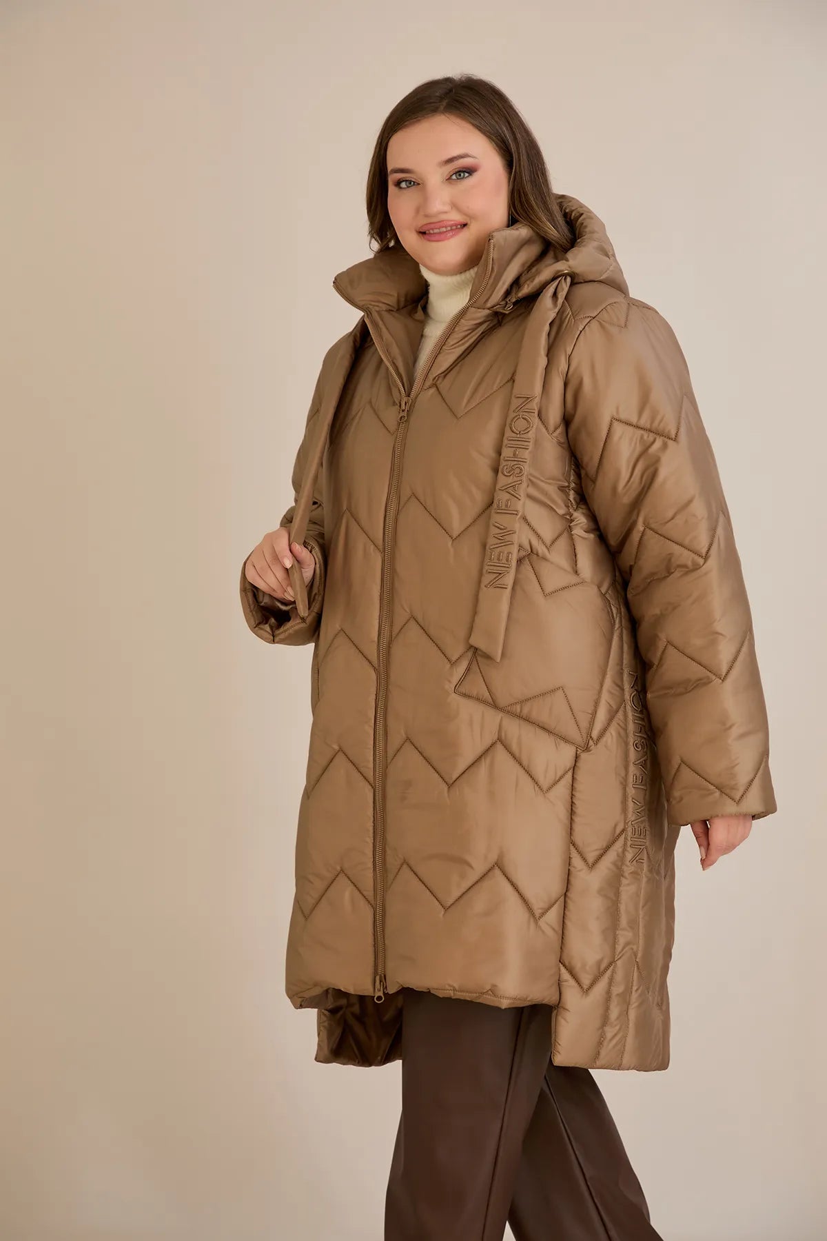 Γυναικείο μπουφάν με διπλό φερμουάρ και αποσπώμενη κουκούλα σε Καραμελέ χρώμα σε Μεγάλα Μεγέθη