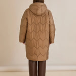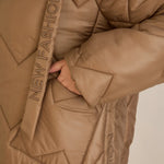 Γυναικείο μπουφάν με διπλό φερμουάρ και αποσπώμενη κουκούλα - Καραμελέ