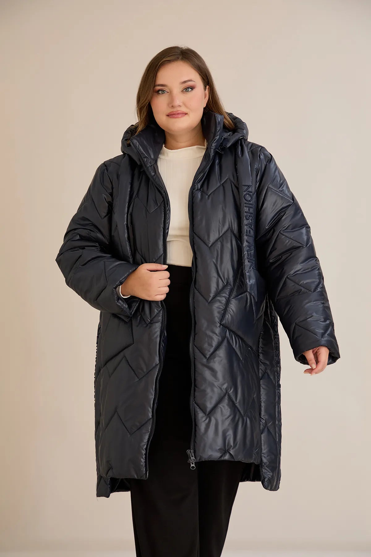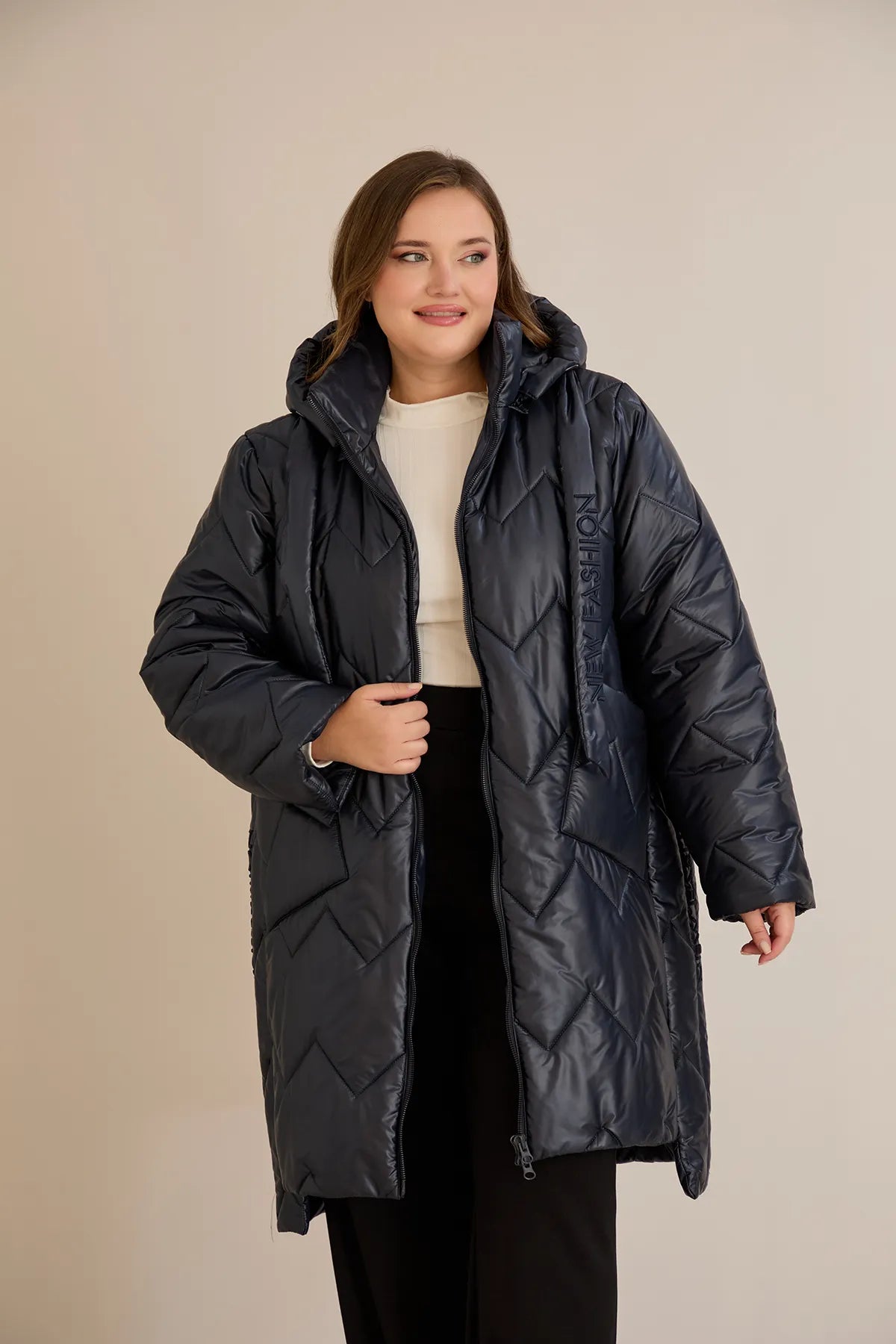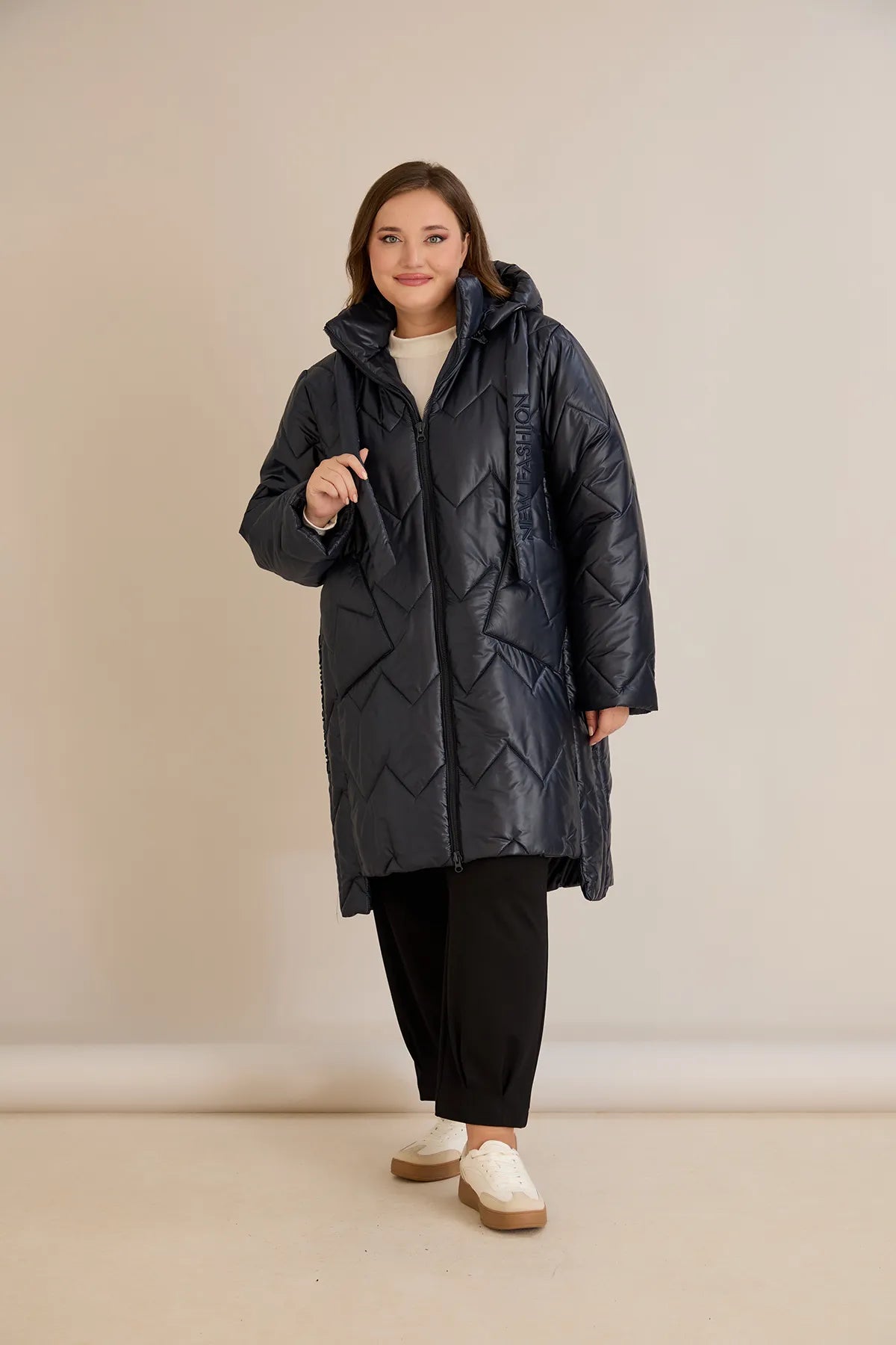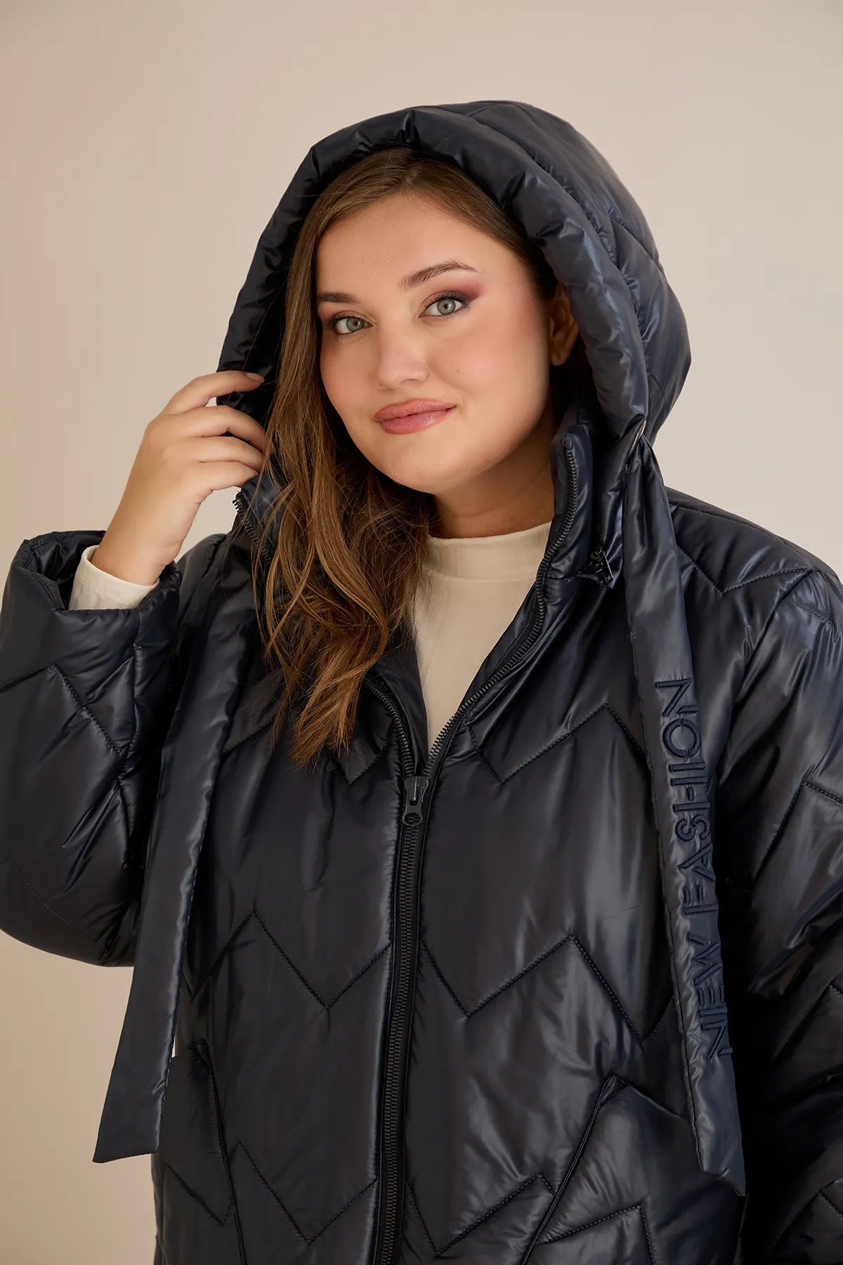 Γυναικείο μπουφάν με διπλό φερμουάρ και αποσπώμενη κουκούλα σε Σκούρο μπλε χρώμα σε Μεγάλα Μεγέθη