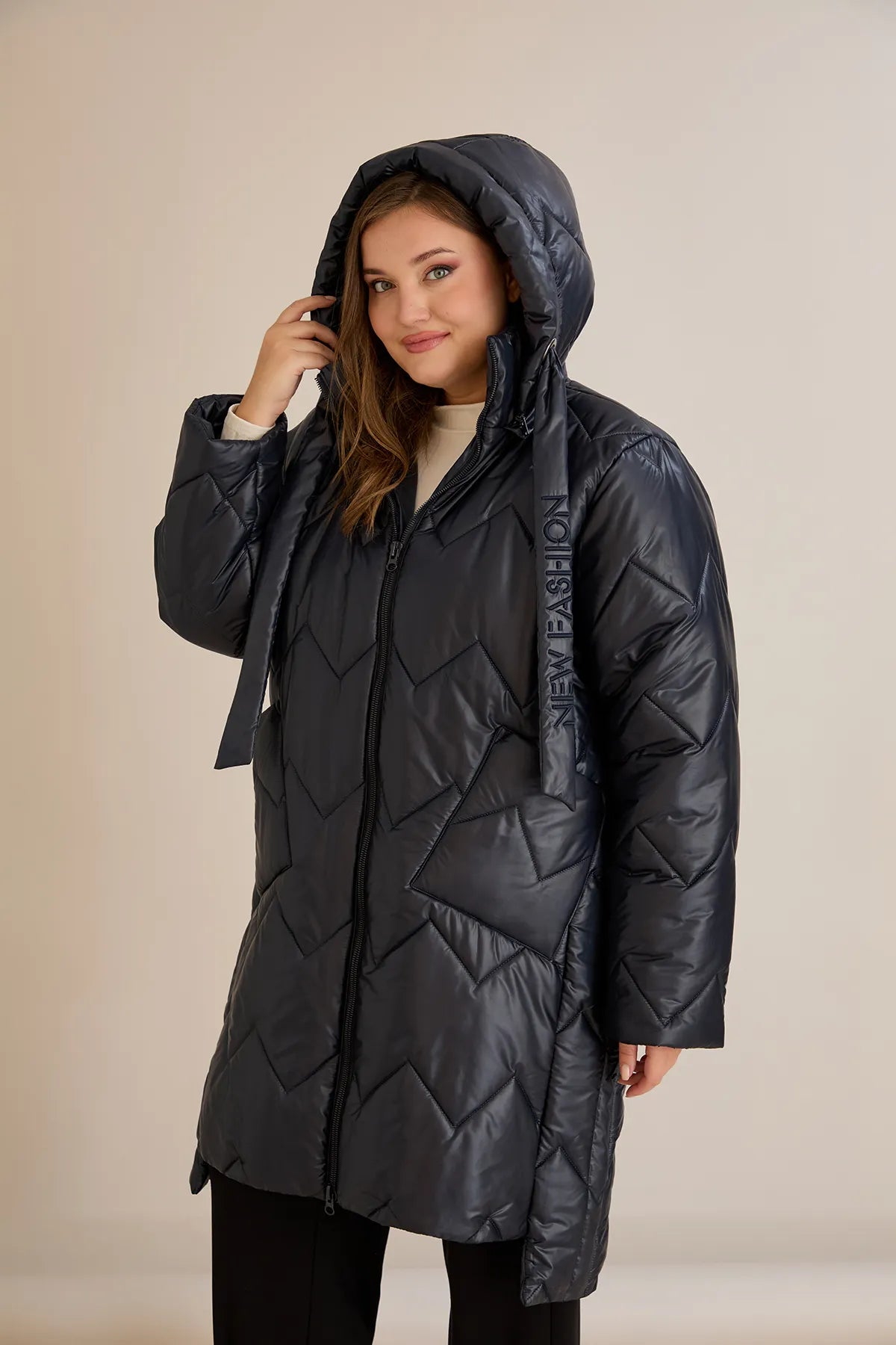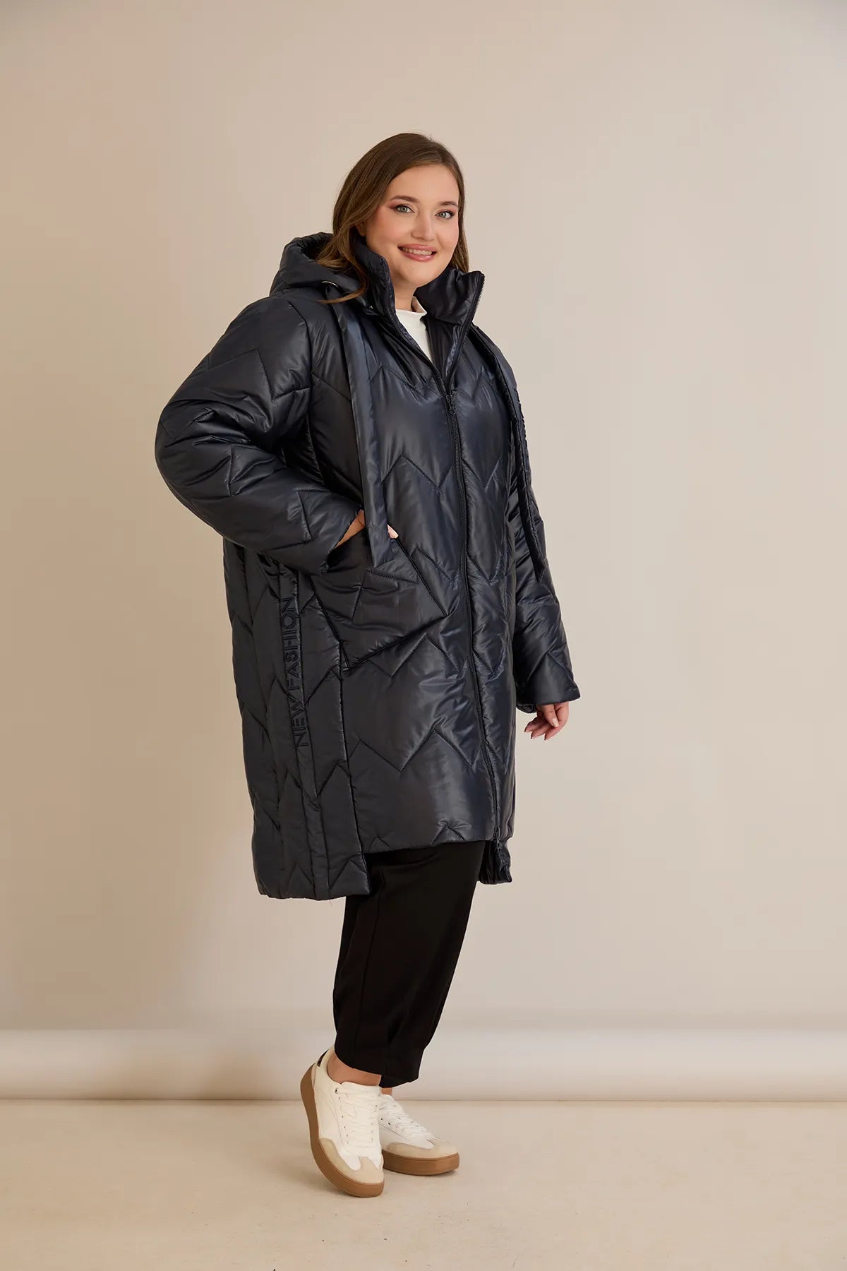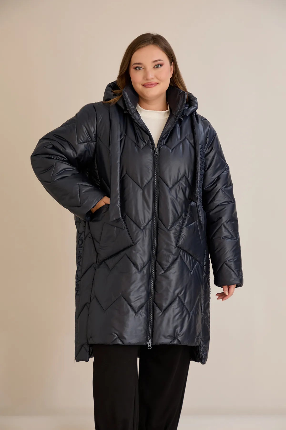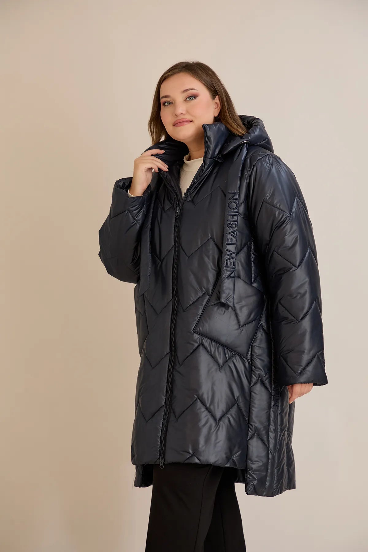 Γυναικείο μπουφάν με διπλό φερμουάρ και αποσπώμενη κουκούλα σε Σκούρο μπλε χρώμα σε Μεγάλα Μεγέθη