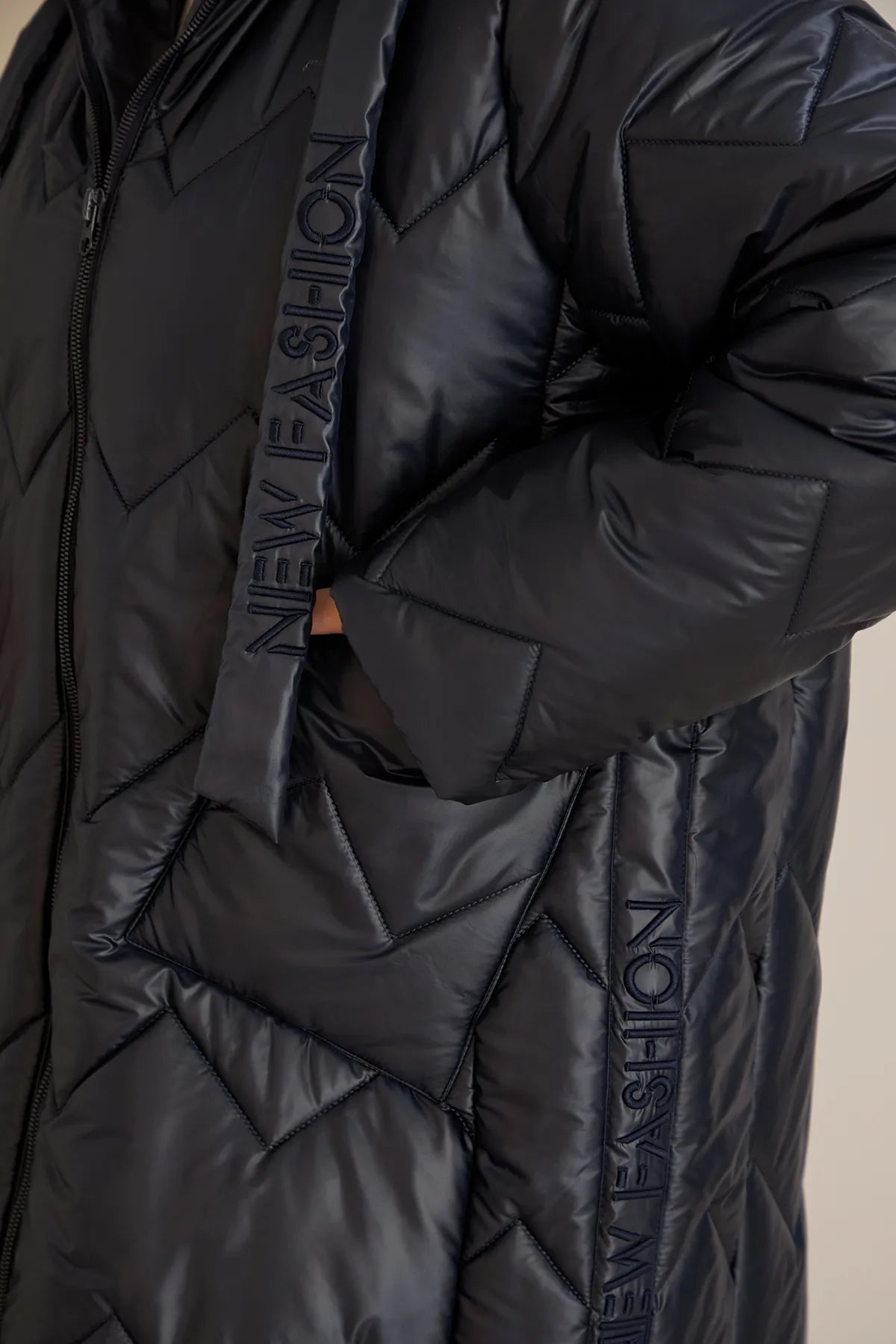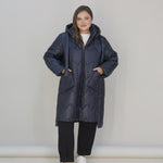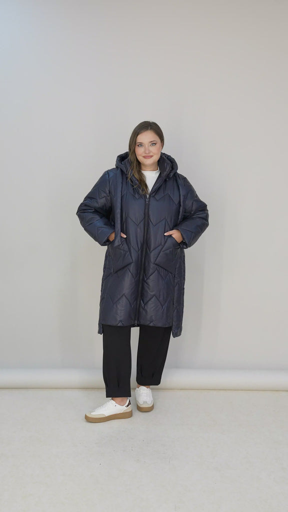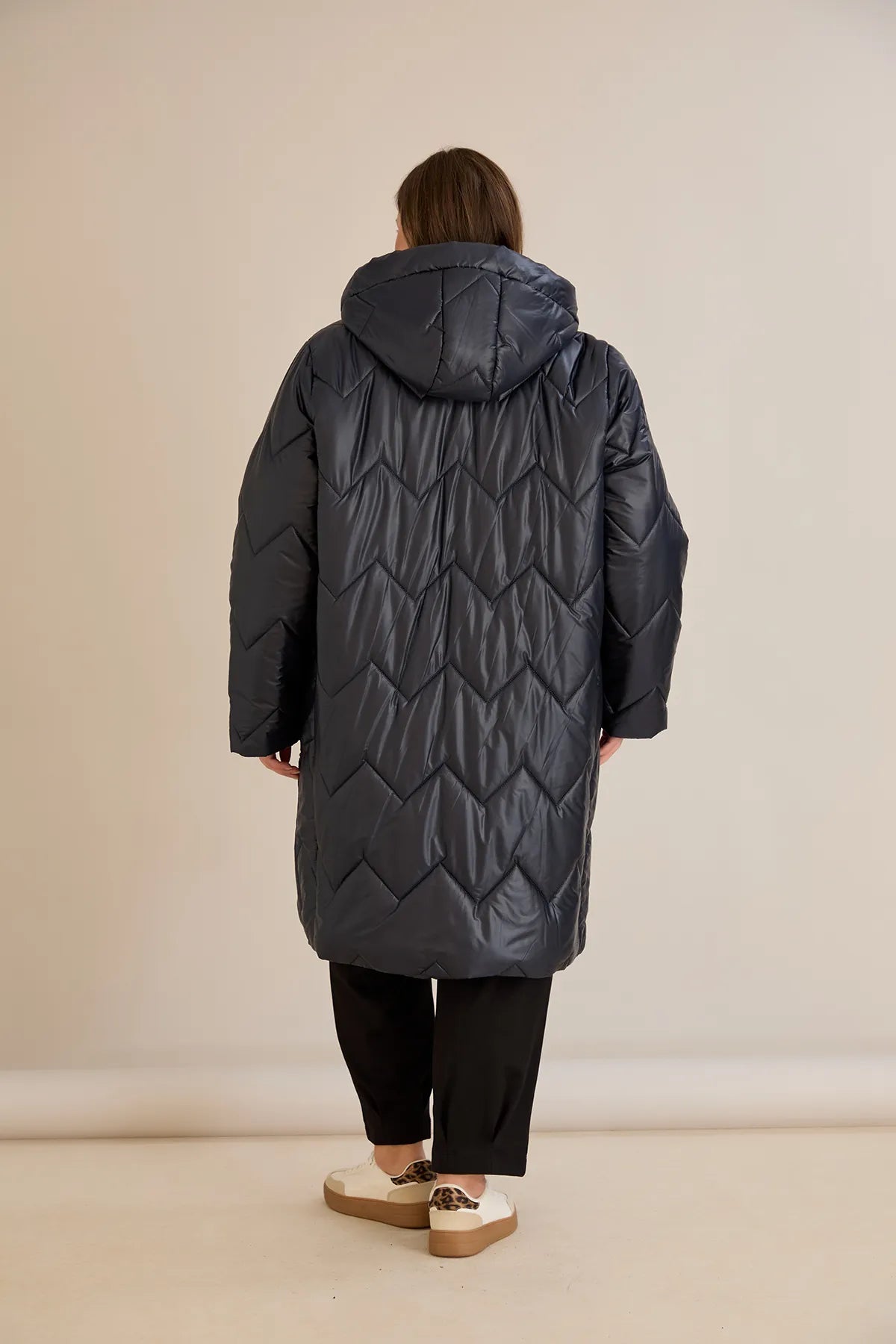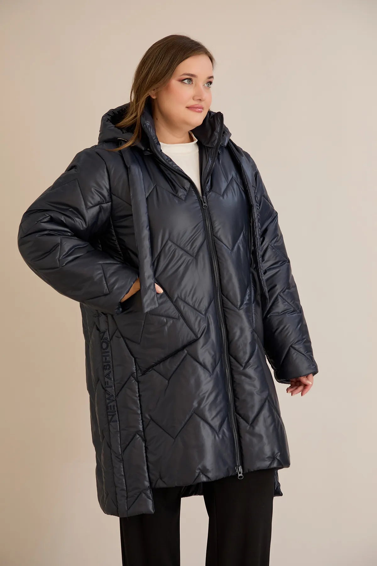 Γυναικείο μπουφάν με διπλό φερμουάρ και αποσπώμενη κουκούλα σε Σκούρο μπλε χρώμα σε Μεγάλα Μεγέθη