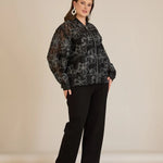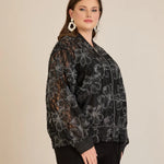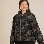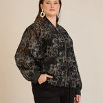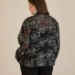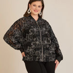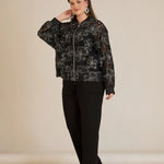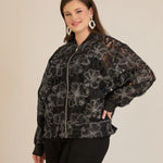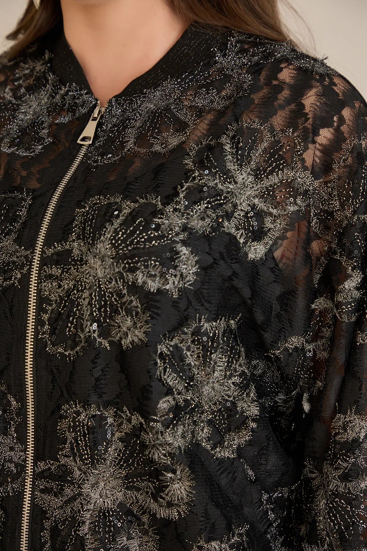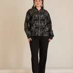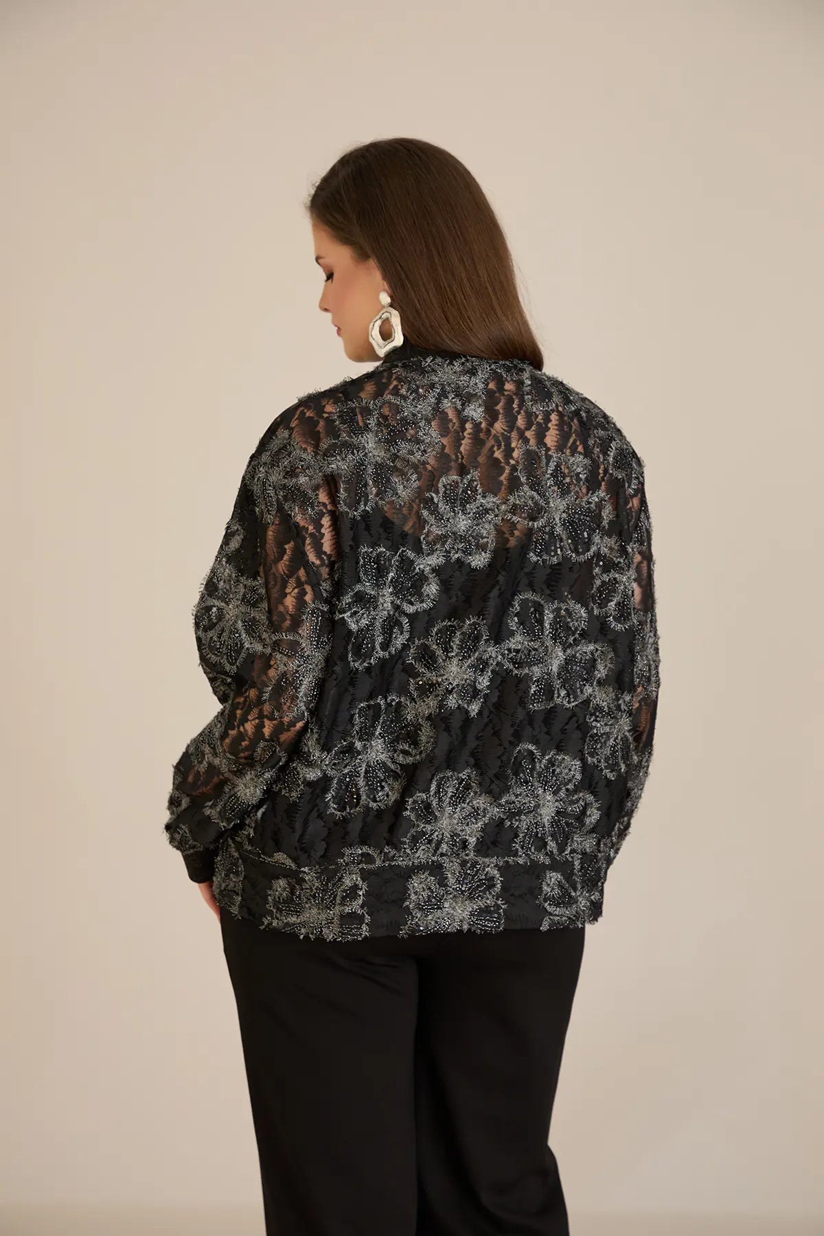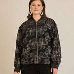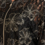 Κομψό μπουφάν με ασημένια φλοράλ μοτίβα- Μαύρο/Ασημί