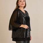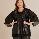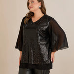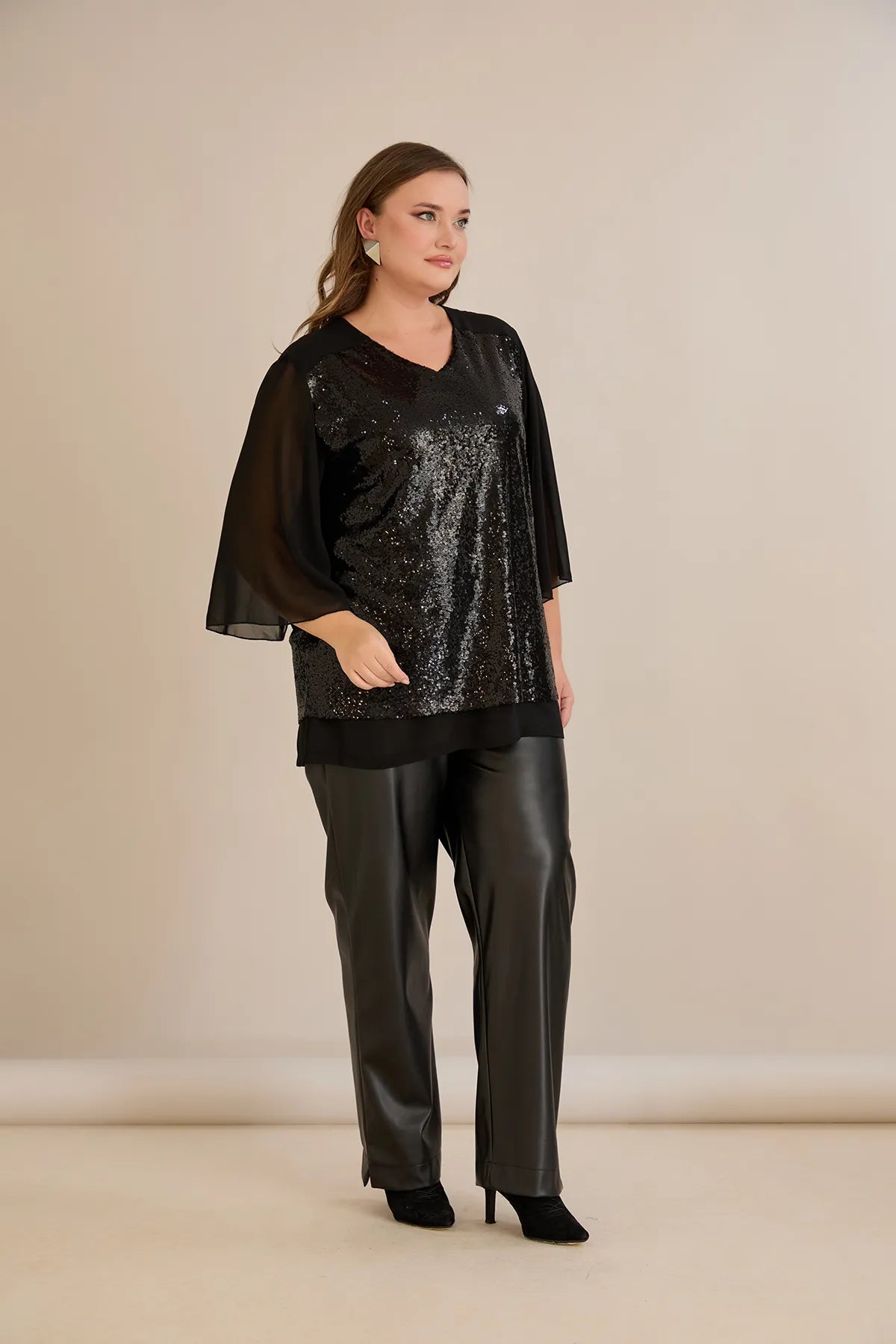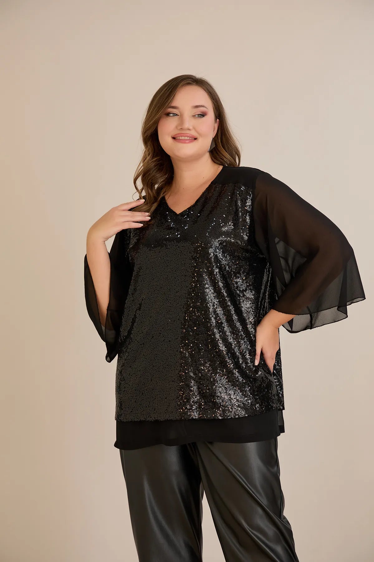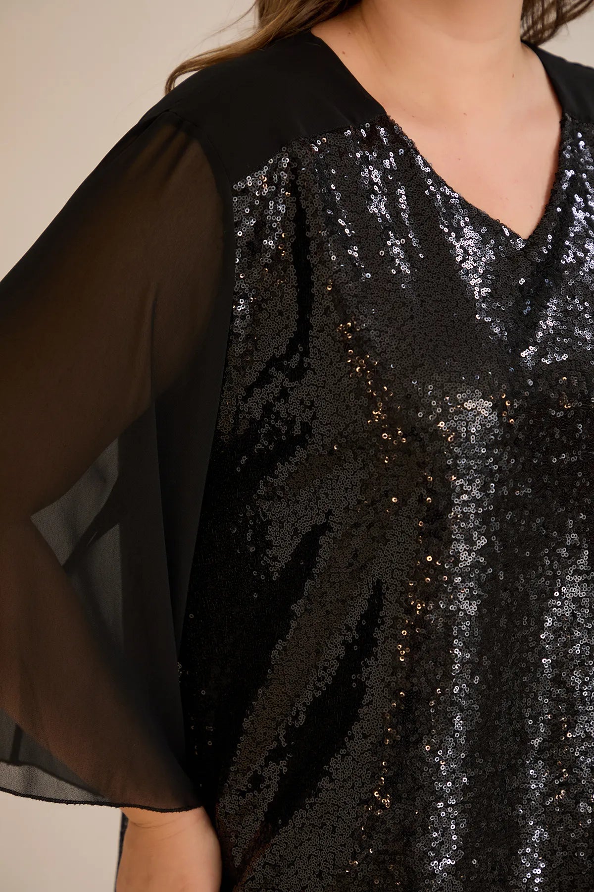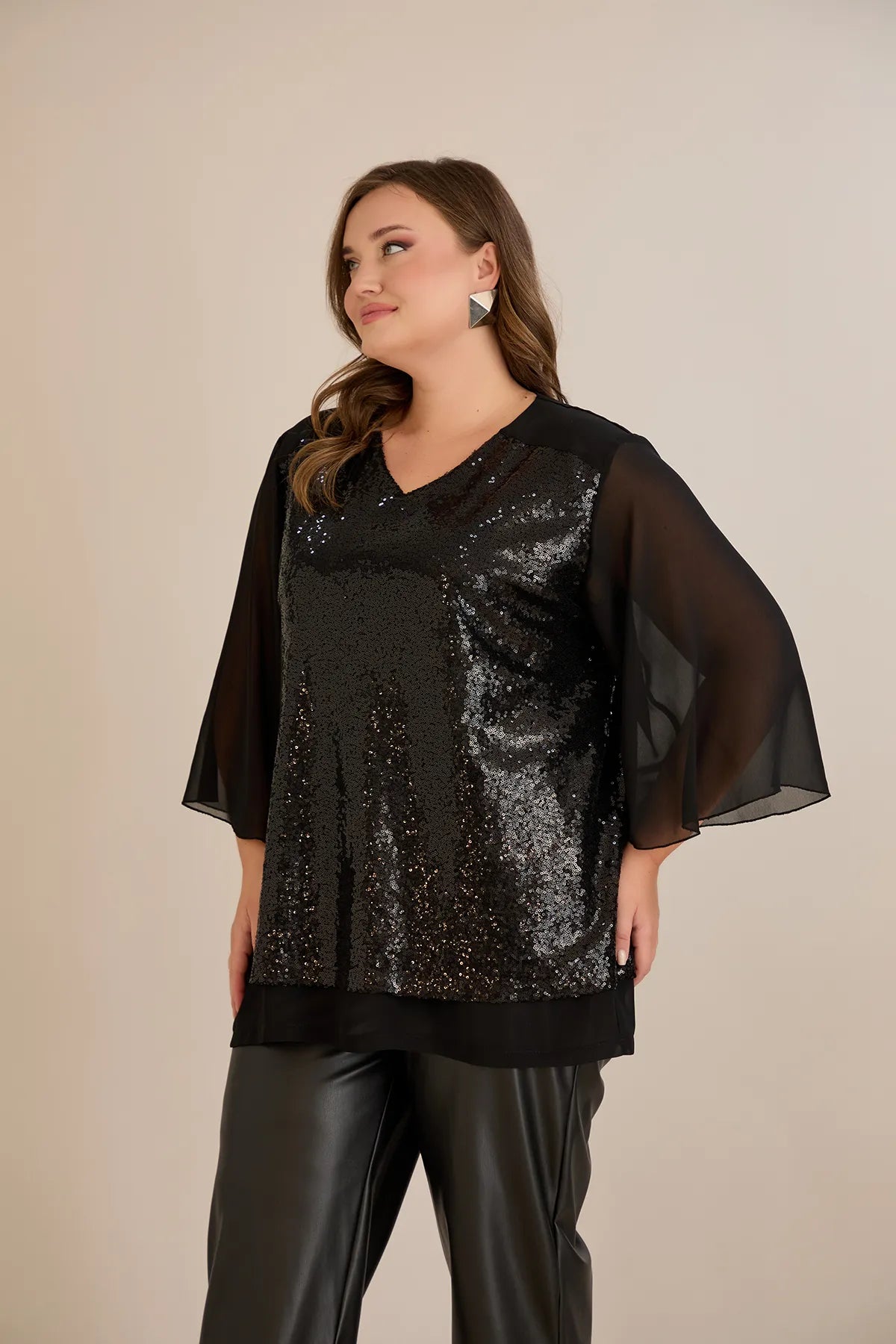 Αναδείξτε τη θηλυκότητα και την κομψότητά σας με αυτήν την εντυπωσιακή μαύρη τουνίκ με παγιέτες.