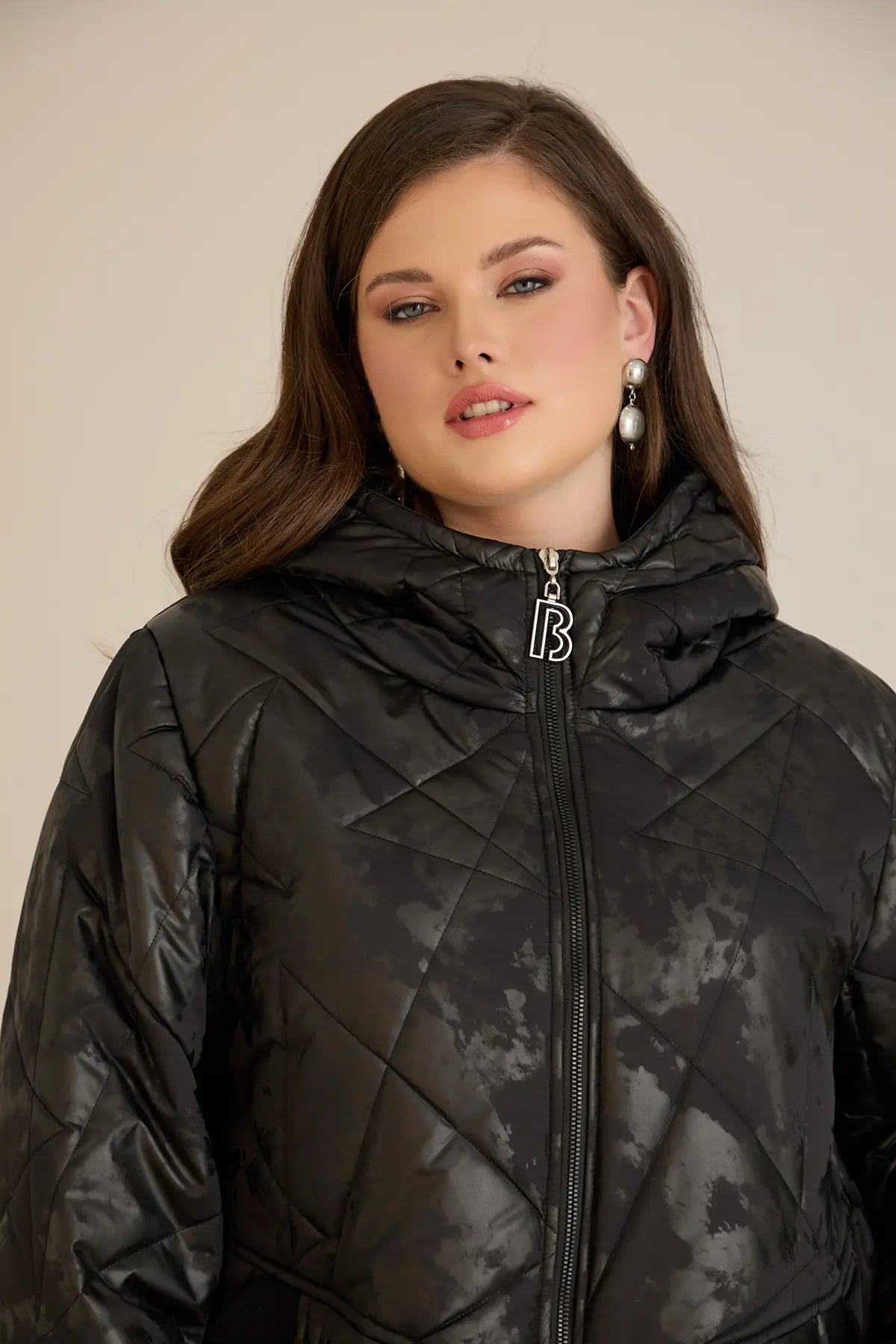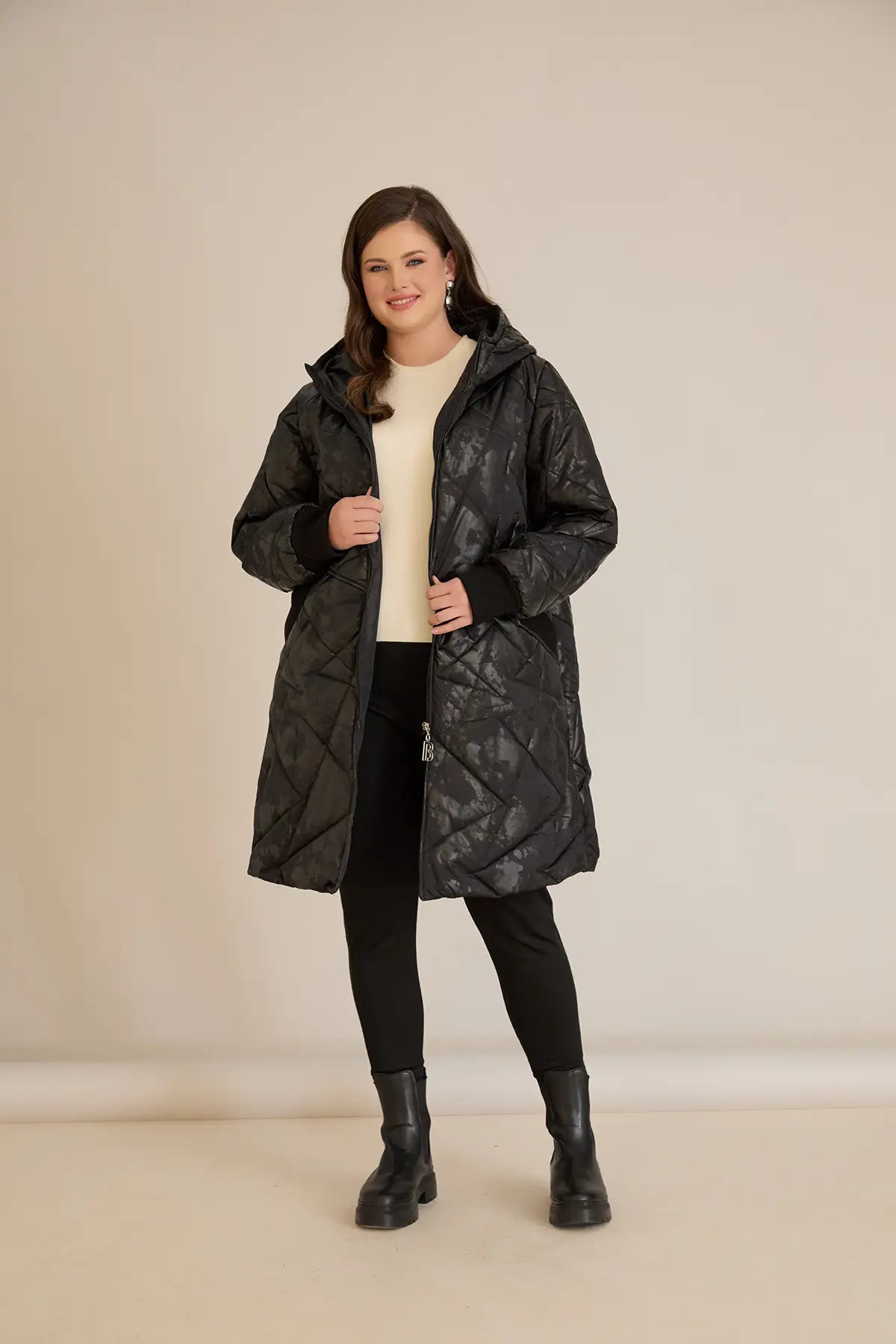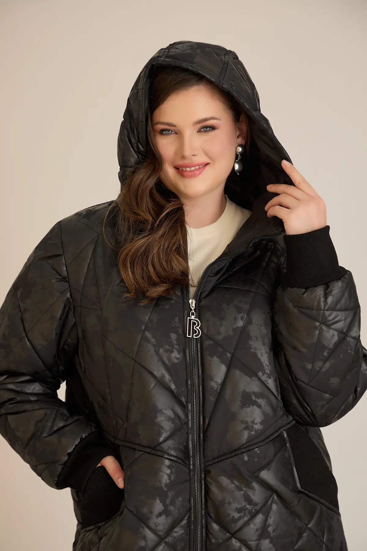 Μπουφάν καπιτονέ με κουκούλα σε Μαύρο χρώμα σε μεγάλα μεγέθη