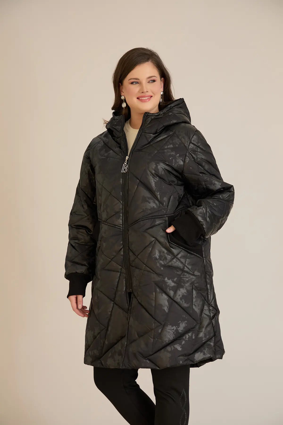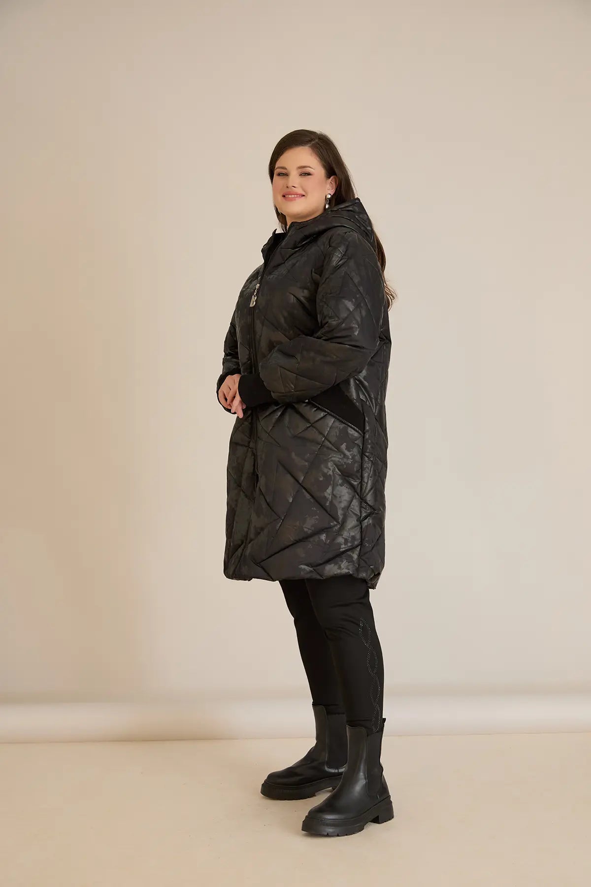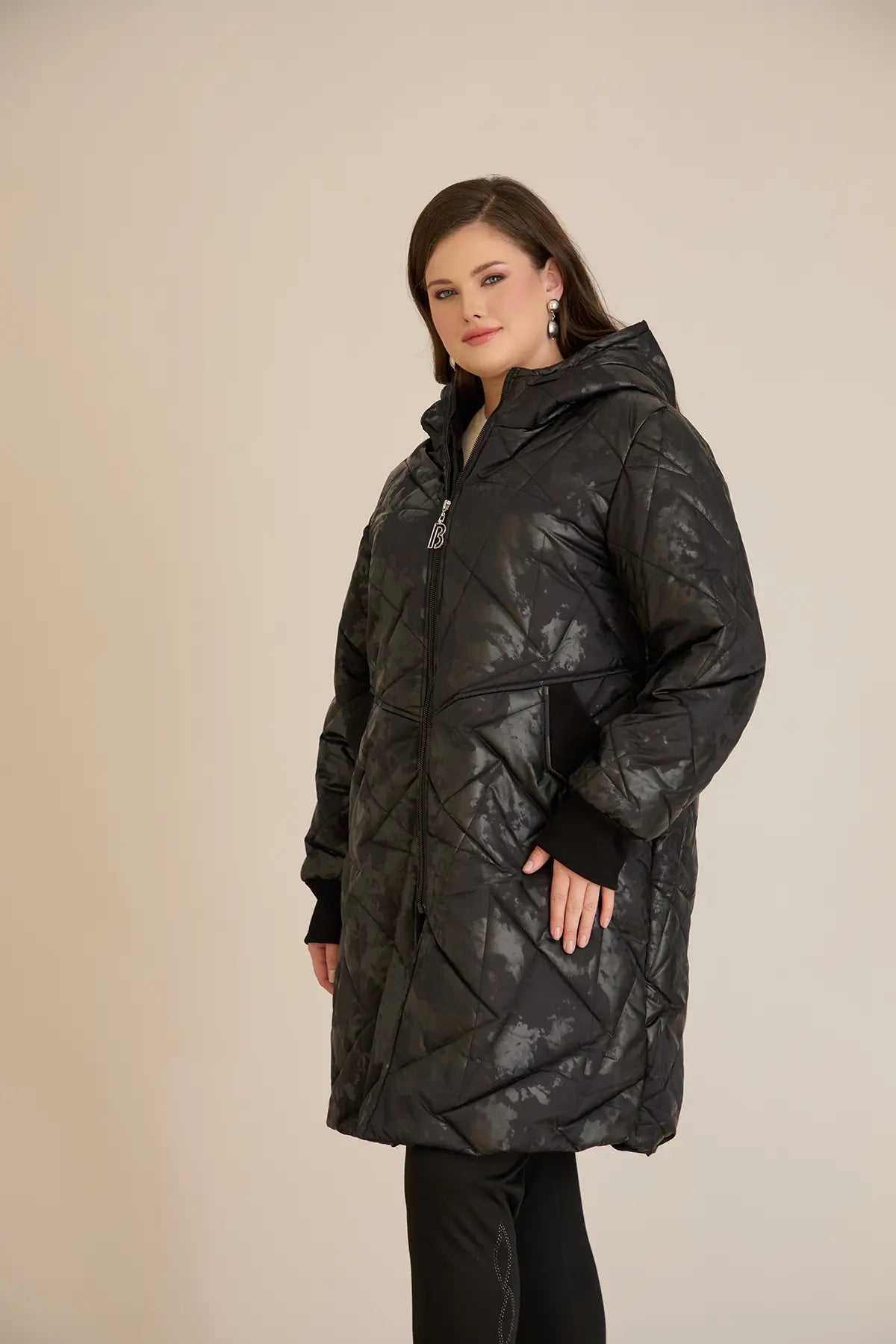 Μπουφάν καπιτονέ με κουκούλα σε Μαύρο χρώμα σε μεγάλα μεγέθη