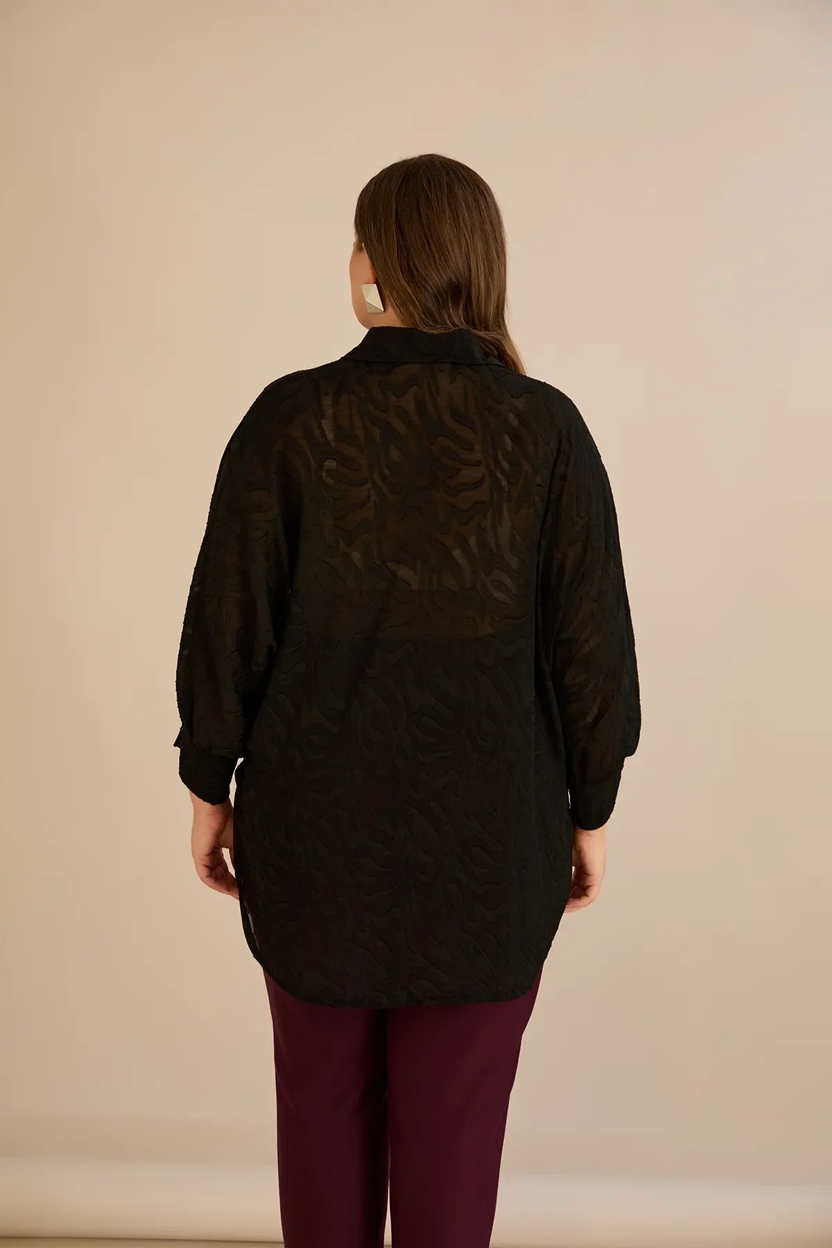 Κομψό γυναικείο πουκάμισο με παγιέτες σε μεγάλα μεγέθη - Μπορντό