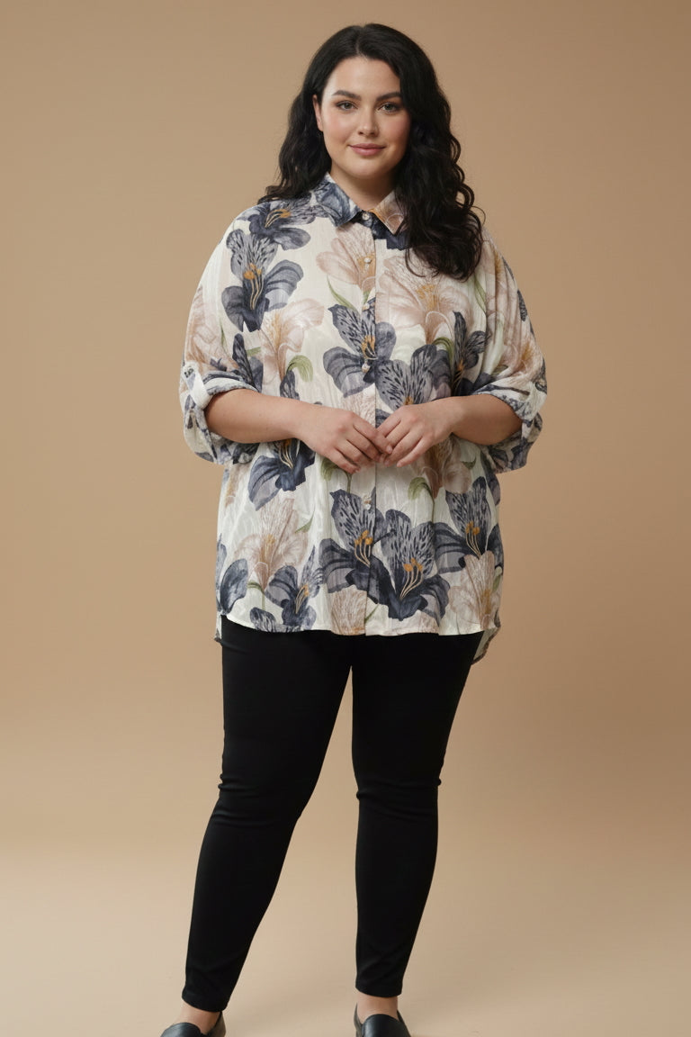 Κομψό πουκάμισο με φλοράλ σχέδιο – Γκρι