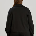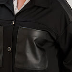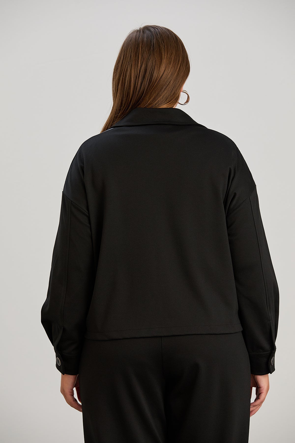 Γυναικείο κοντό μπουφάν με τσέπες δερματίνης σε μεγάλα μεγέθη- Μαύρο